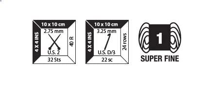 Recommended Knitting Needle: 2.75 mm; Recommended Crochet Hook: 3.25 mm