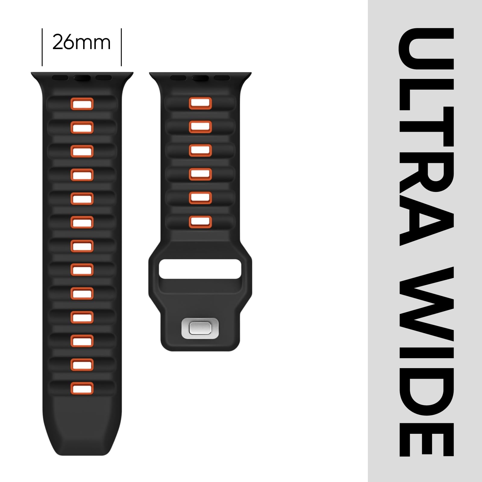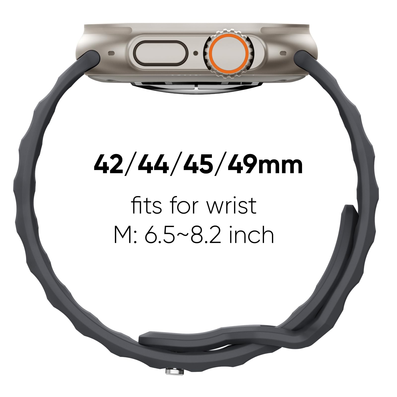 26mm Ultra Fit: Tailored for the big dials and bold souls, our apple watch ultra band is expanded to 26mm wide. Best match Apple Watch Ultra 3, Ultra 2, Ultra, Series 11 10 9 8 7 6 5 4 3 SE, for iWatch 49mm 46mm 45mm 44mm 42mm(Series 3). L fits 6.3"- 8.1" (160-205 mm) wrists; M for 5.9"- 7.7" (150-195 mm) wrists.