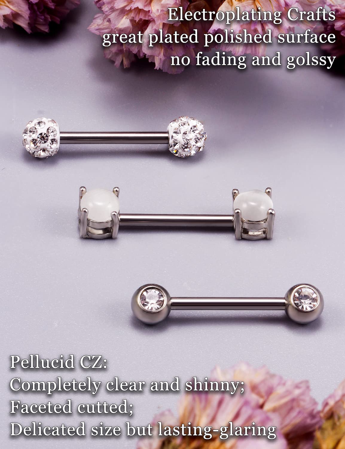 Made with 316L Surgical Stainless Steel and Shinny Cubic-Zirconia, Provides Lasting Color Retention and Extremely Easy to Clean.
