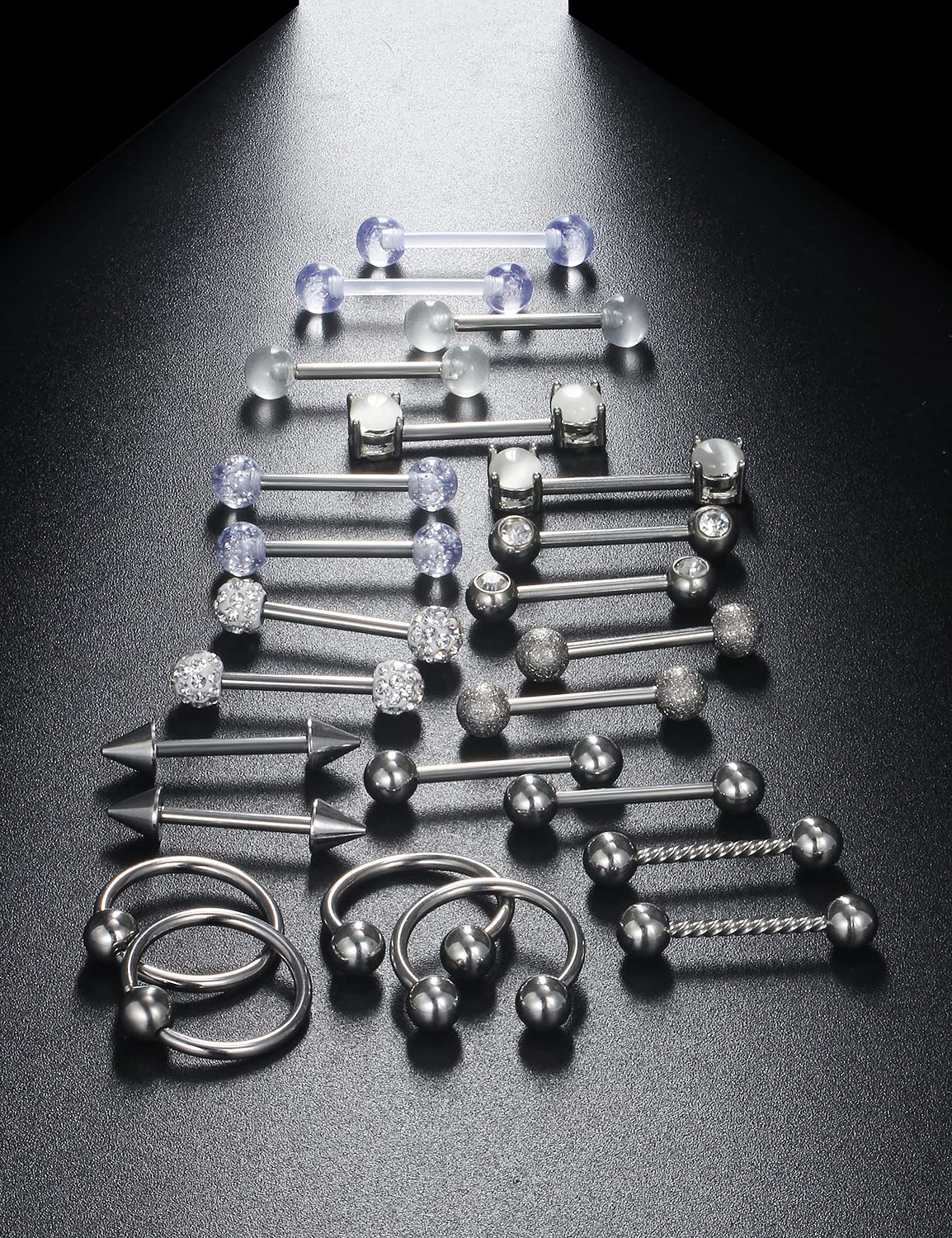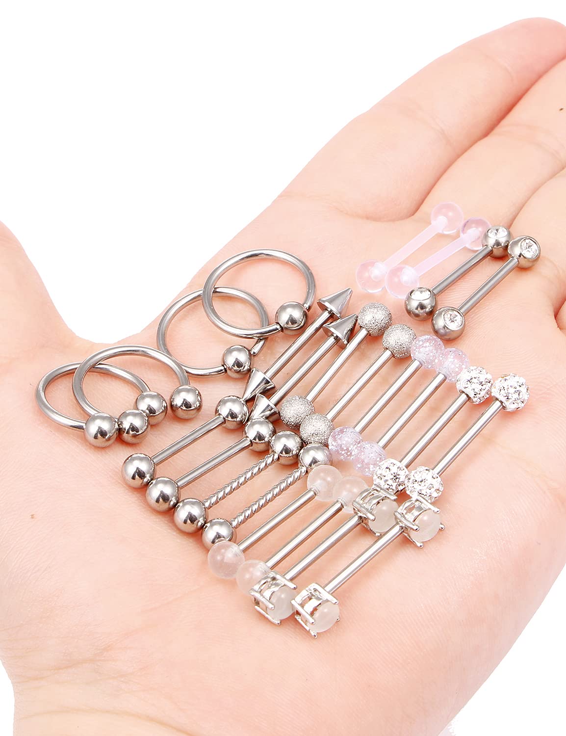 Straight Barbell Can Used as Nipple rings and Tongue rings, Also Can Work As Cartilage Rings, Earrings And Other Body Parts Piercing Jewelry. Clear Acrylic Bioflex Barbell Retainer can for Work, Surgery, MRIs and More.