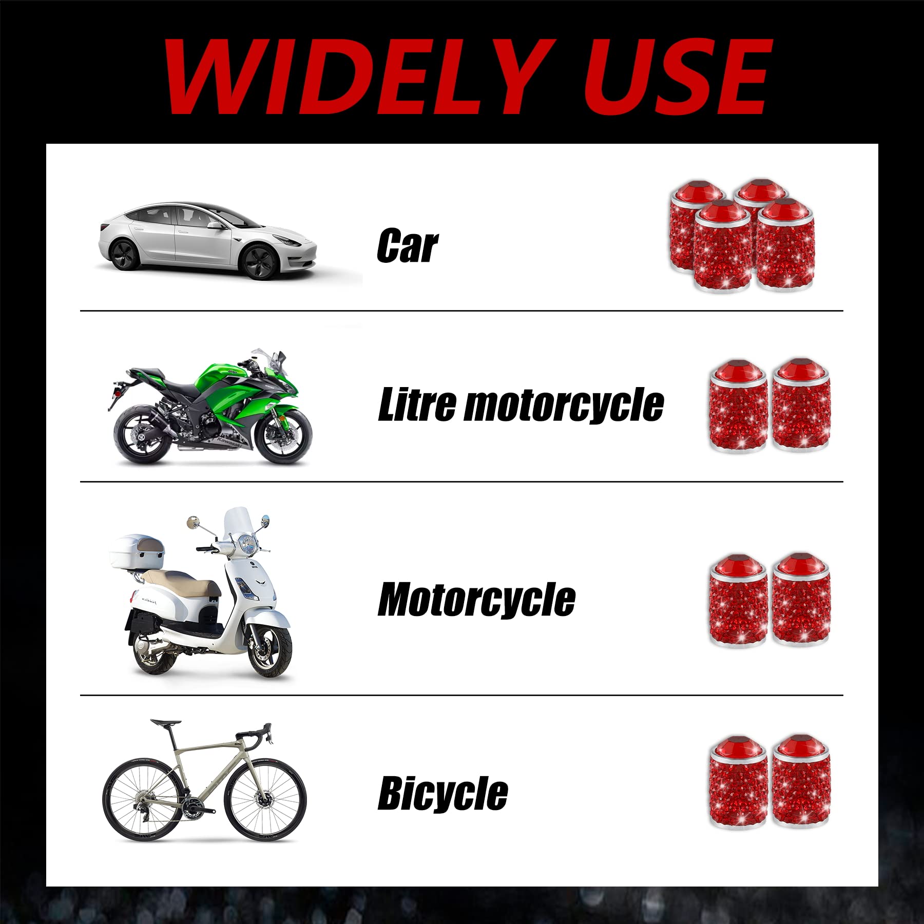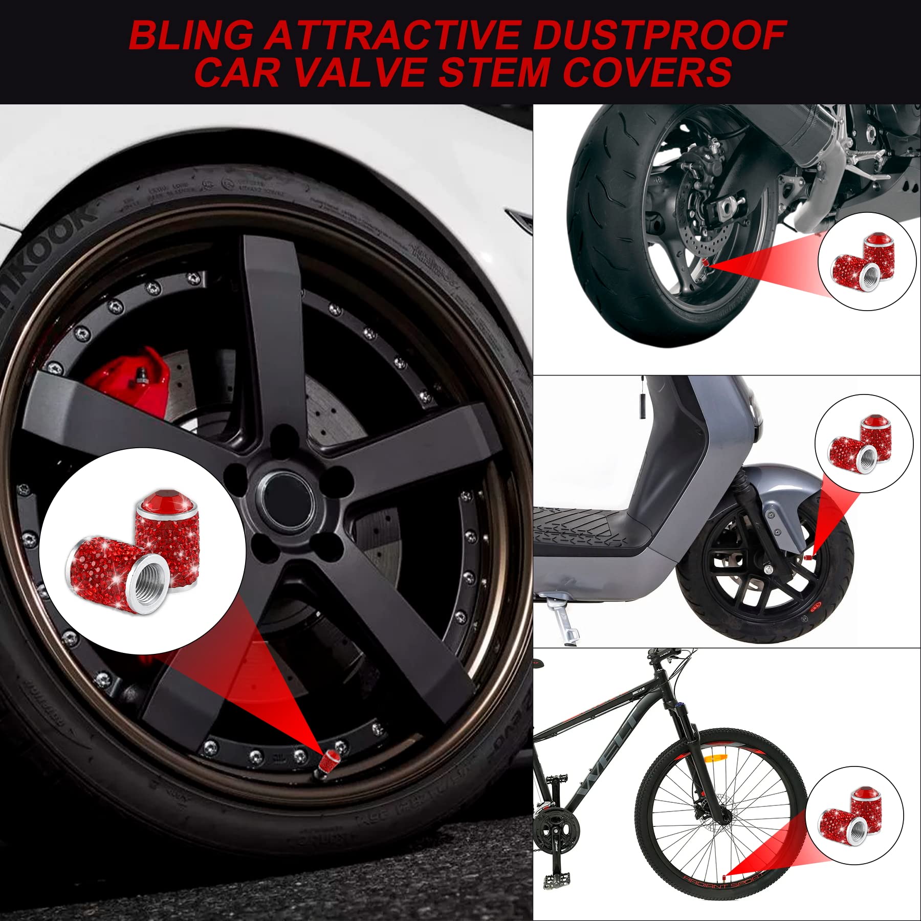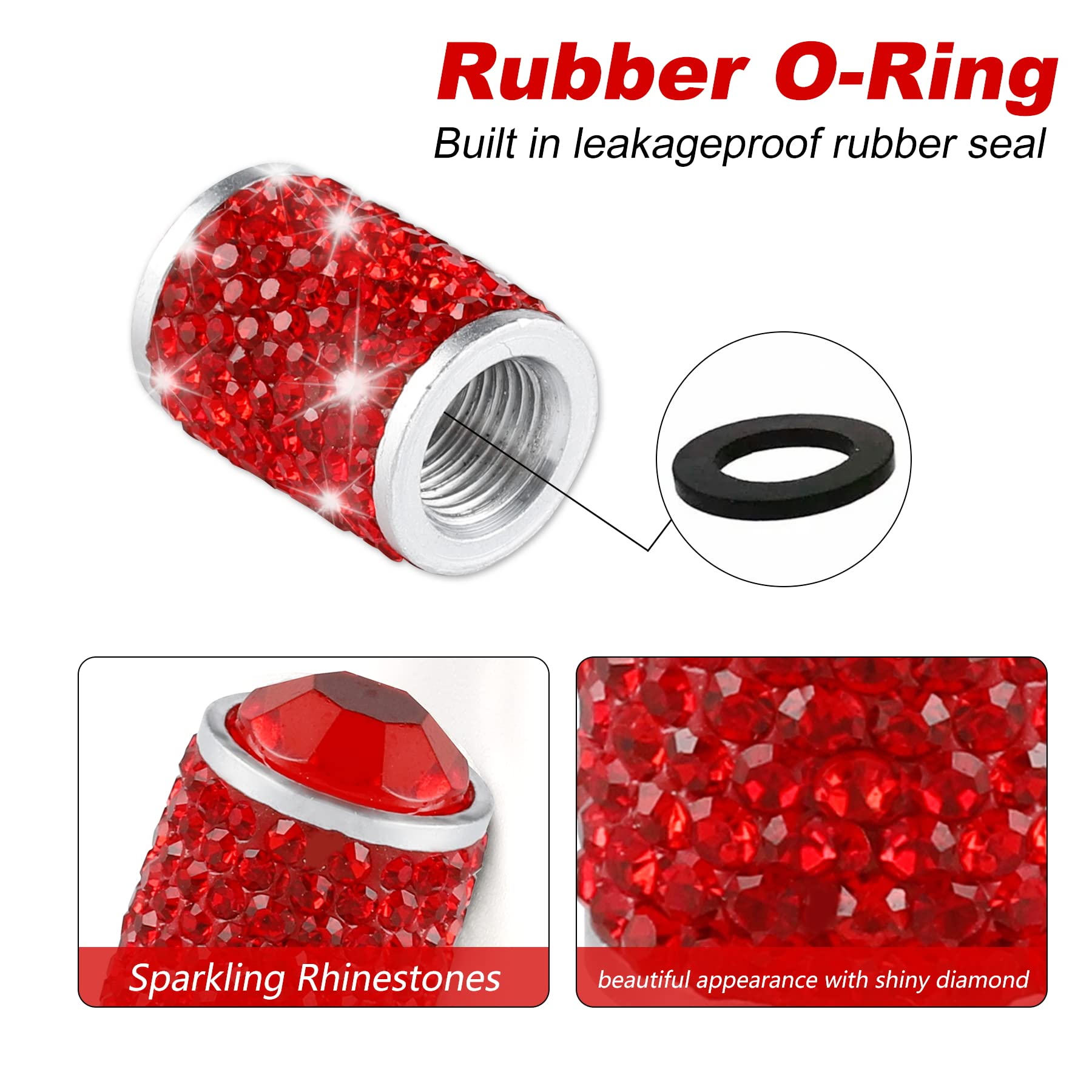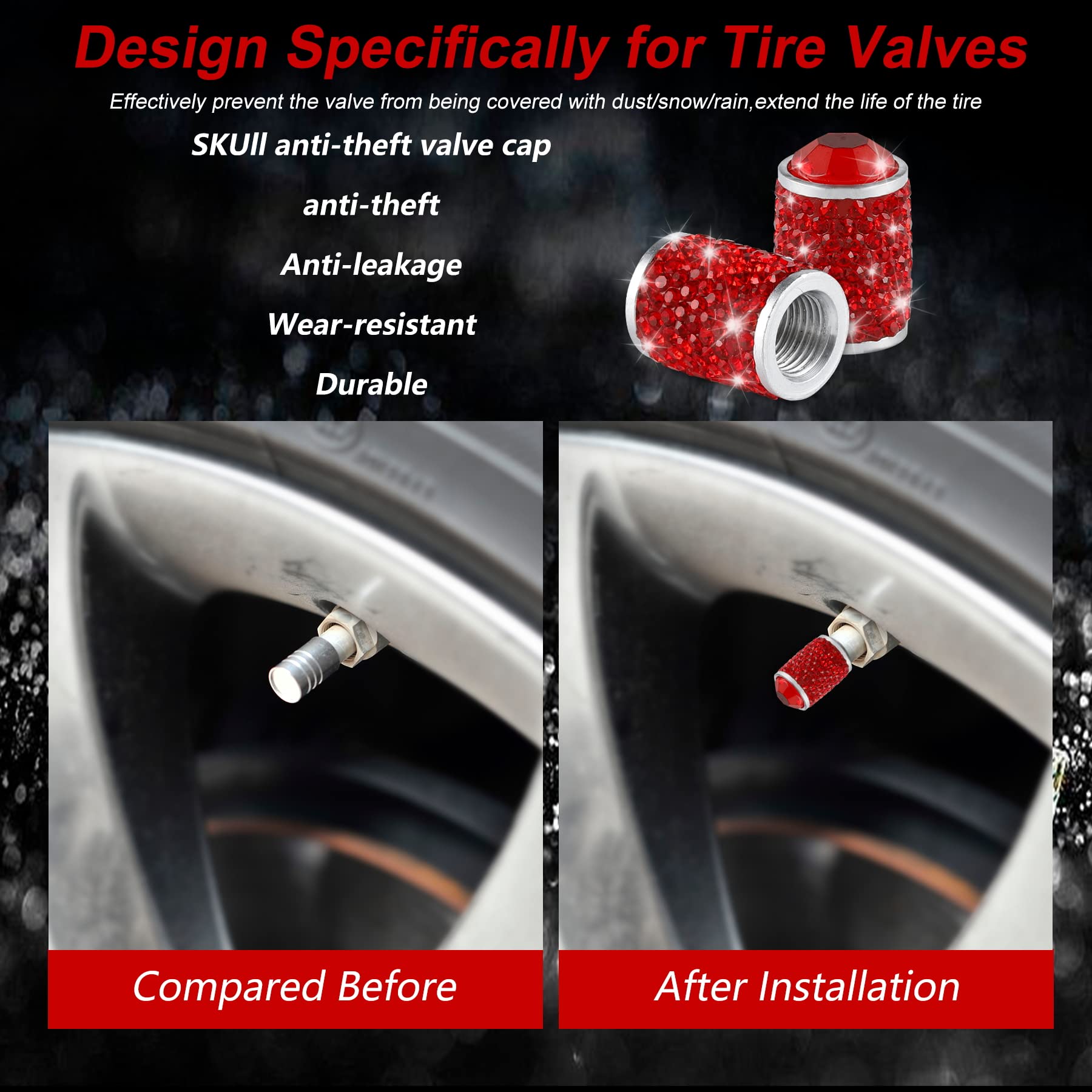 Sparkling Rhinestones Design: Our valve stem caps designed with Sparkling Rhinestones material, give your car a unique LUXURY look, also a nice gift for your families and friends.