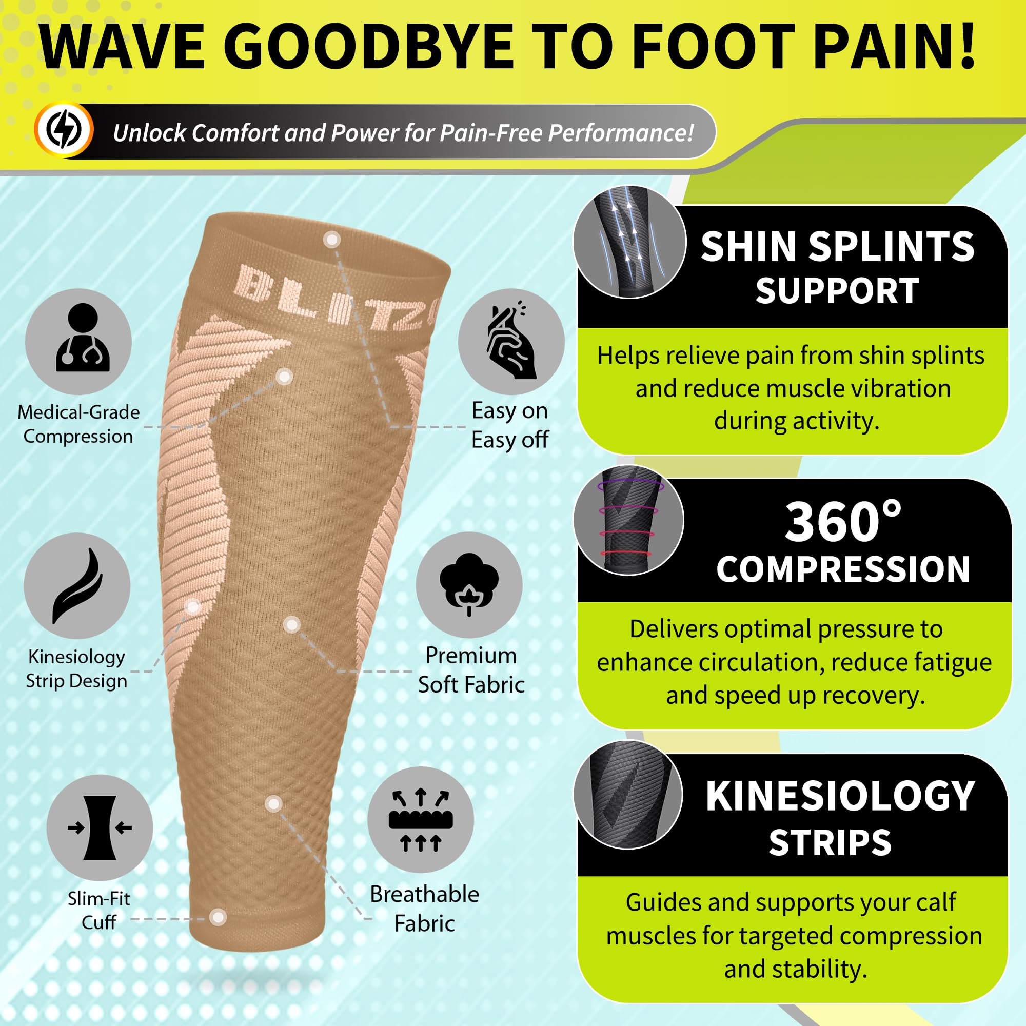Effective Compression for Swelling & Varicose Veins Relief: The BLITZU Calf Compression Sleeves feature graduated compression to improve blood circulation, reduce swelling, and alleviate discomfort caused by varicose veins and pregnancy-related leg swelling, making them perfect for nursing mothers and individuals with circulation issues.