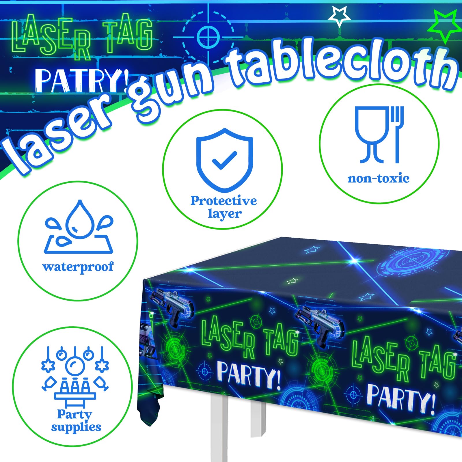 【PREMIUM QUALITY】This Laser Tag theme tablecloth is made of PE plastic material, which is light, waterproof, portable and safe.The tablecloth is designed with neon glow laser light , which is attractive for the one interested in laser tag games