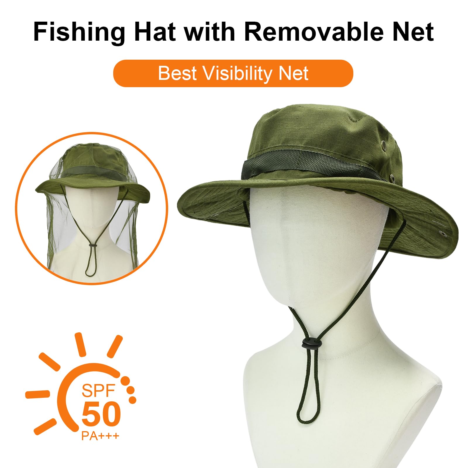 SUN PROTECTION: UPF 50+ excellent sun protection. Provide you better protection from sunshine and damaging rays for face and neck. Around mesh can promote airflow to keep your head cooler, built-in anti-sweat band can eliminate sweat from the head, which can protect your face.