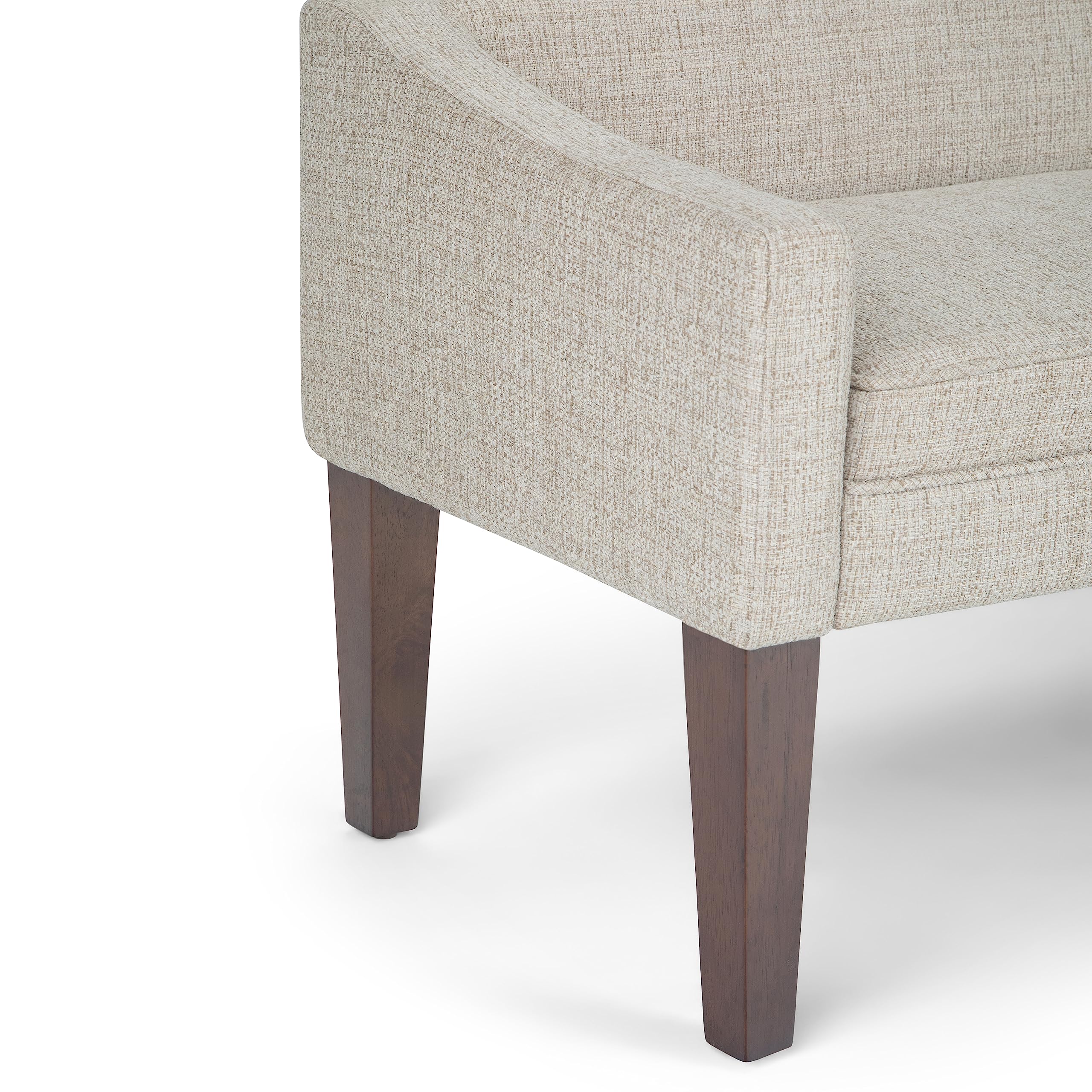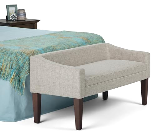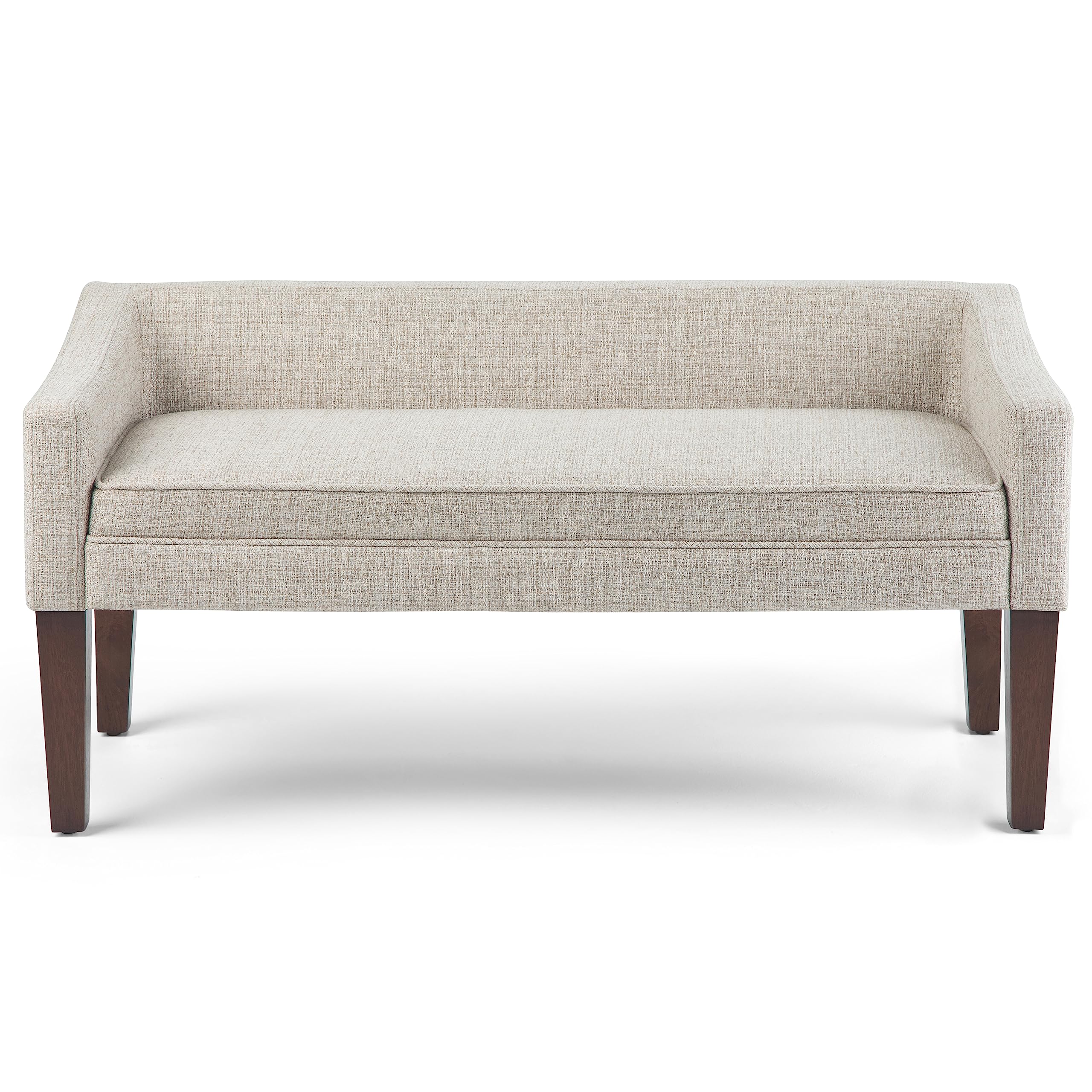 Make a statement with the Parris Upholstered Bench. This stylish bench features a low-profile back design with swooped arms. At Simpli Home, we always insist on using the best materials and construction. The high-density foam seat, solid wood construction and premium fabrics delivers superior and long-lasting comfort and support in a package of exceptional beauty. Whether adorning the end of your bed in the master suite or simply sitting by the entryway this bench offers both seating space and style. Available in six different color and pattern options.
