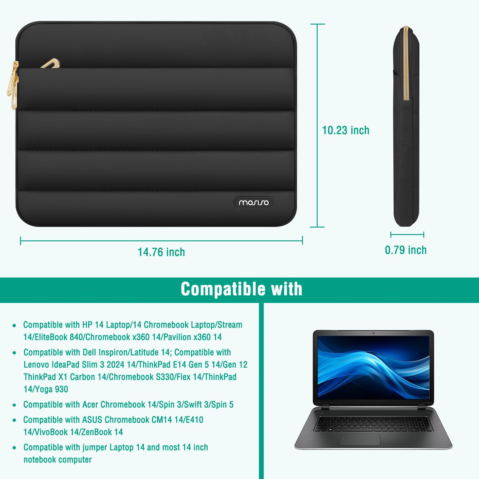 Compatible with HP 14 Laptop/14 Chromebook Laptop/Stream 14/EliteBook 840/Chromebook x360 14/Pavilion x360 14; Compatible with Dell Inspiron/Latitude 14; Compatible with Lenovo IdeaPad Slim 3 2024 14/ThinkPad E14 Gen 5 14/Gen 12 ThinkPad X1 Carbon 14/Chromebook S330/Flex 14/ThinkPad 14/Yoga 930; Compatible with Acer Chromebook 14/Spin 3/Swift 3/Spin 5; Compatible with ASUS Chromebook CM14 14/E410 14/VivoBook 14/ZenBook 14; Compatible with jumper Laptop 14 and most 14 inch notebook computer.