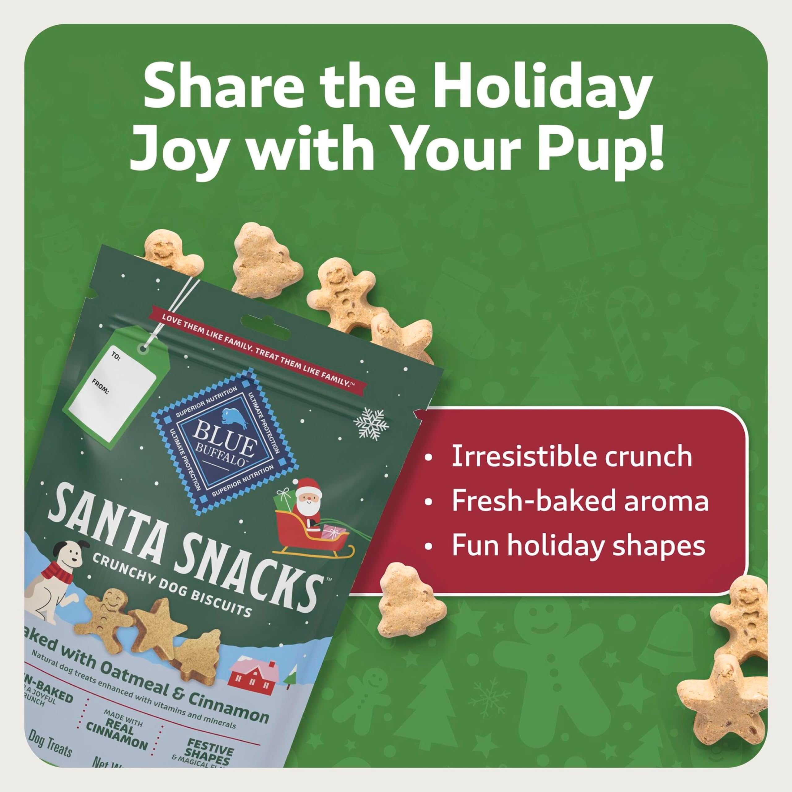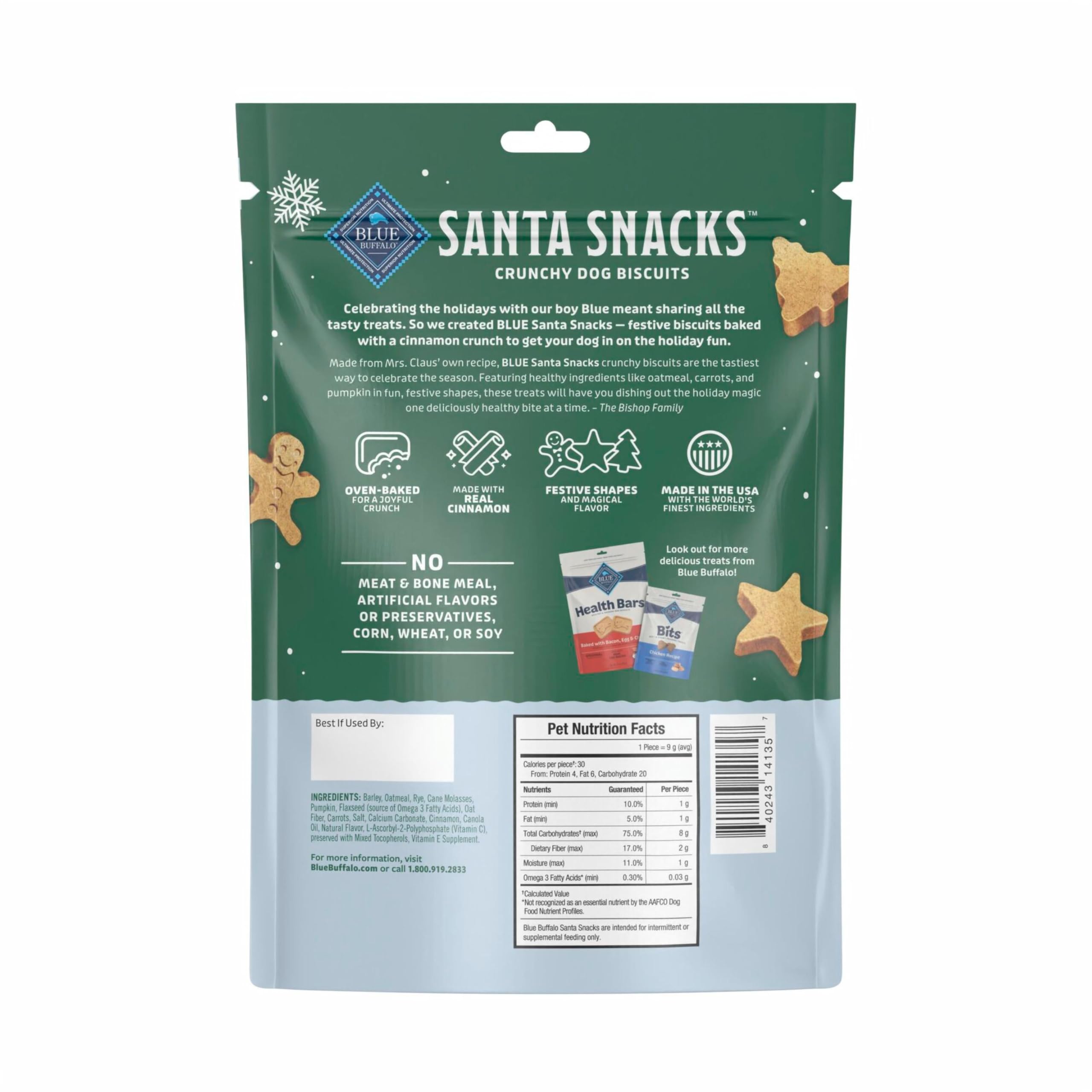 Make your dog's holiday jolly with BLUE Santa Snacks, the tasty dog treats with a satisfying, oven-baked crunch. Made from the finest ingredients, including wholesome oatmeal, plus real cinnamon, Santa Snacks are the ideal stocking stuffers for all dogs, naughty or nice! Stock up soon before these popular, seasonal dog biscuits dash away.