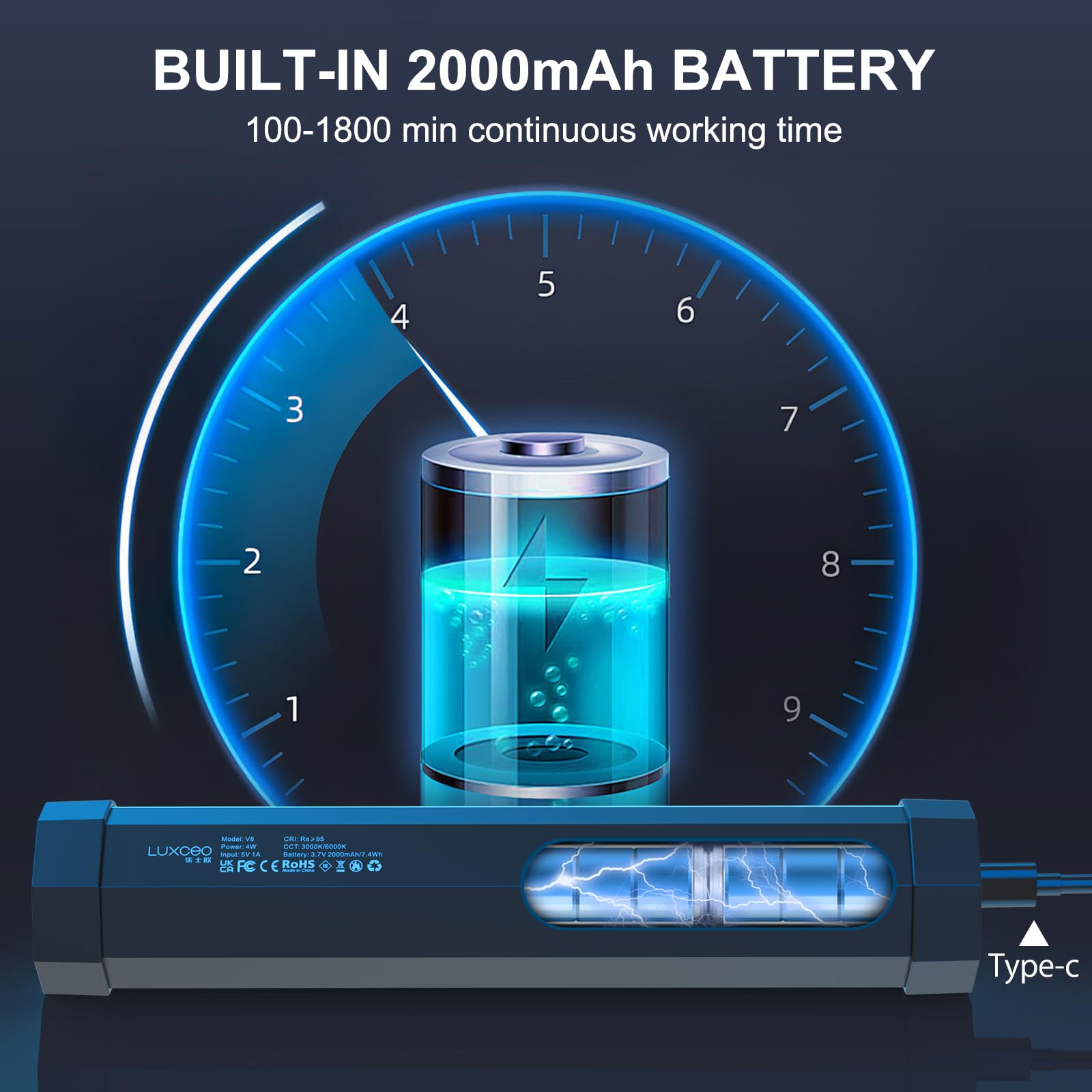 👍【Large Capacity Battery】Built-in 2000mAh rechargeable battery, the RGB light wand can be used continuously for nearly 1.8 hours at max power and 40 hours at min power. Equipped with Type C charing port on top of light tube, simply charge with the USB cable (Package Included) and about 3 hours for a full charge. Also you can use it while charging, there is no need to worry about insufficient power