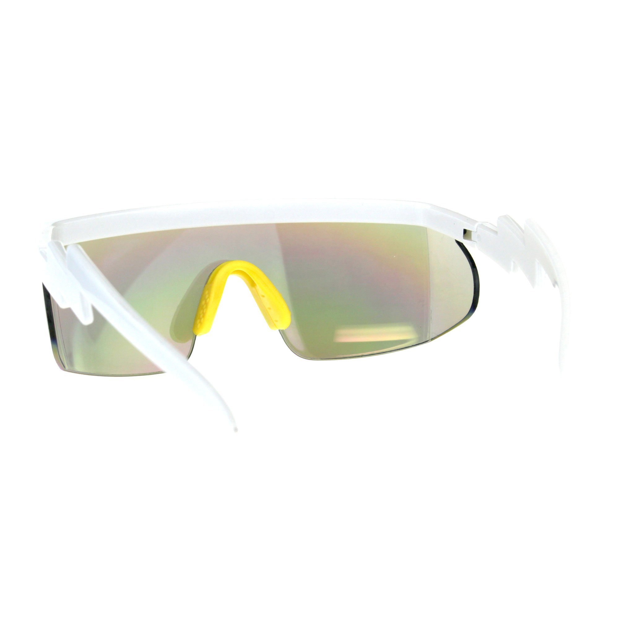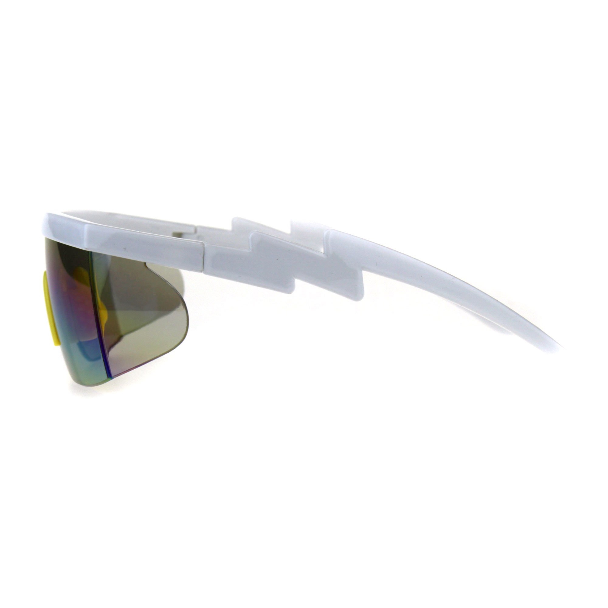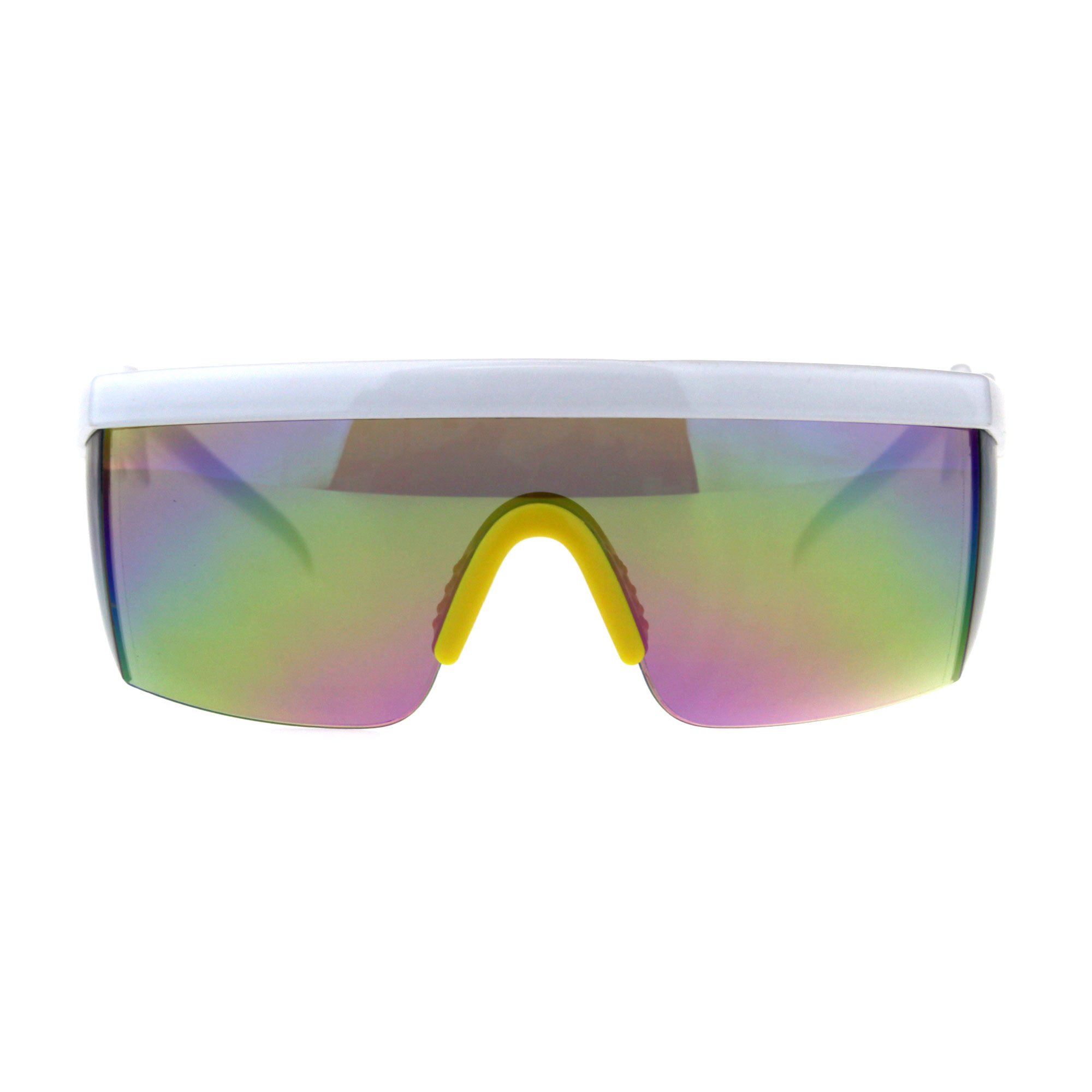Description Unisex funk plastic safety goggle style rectangular side visor exposed lens half rim large sunglasses. (ss7379rv)