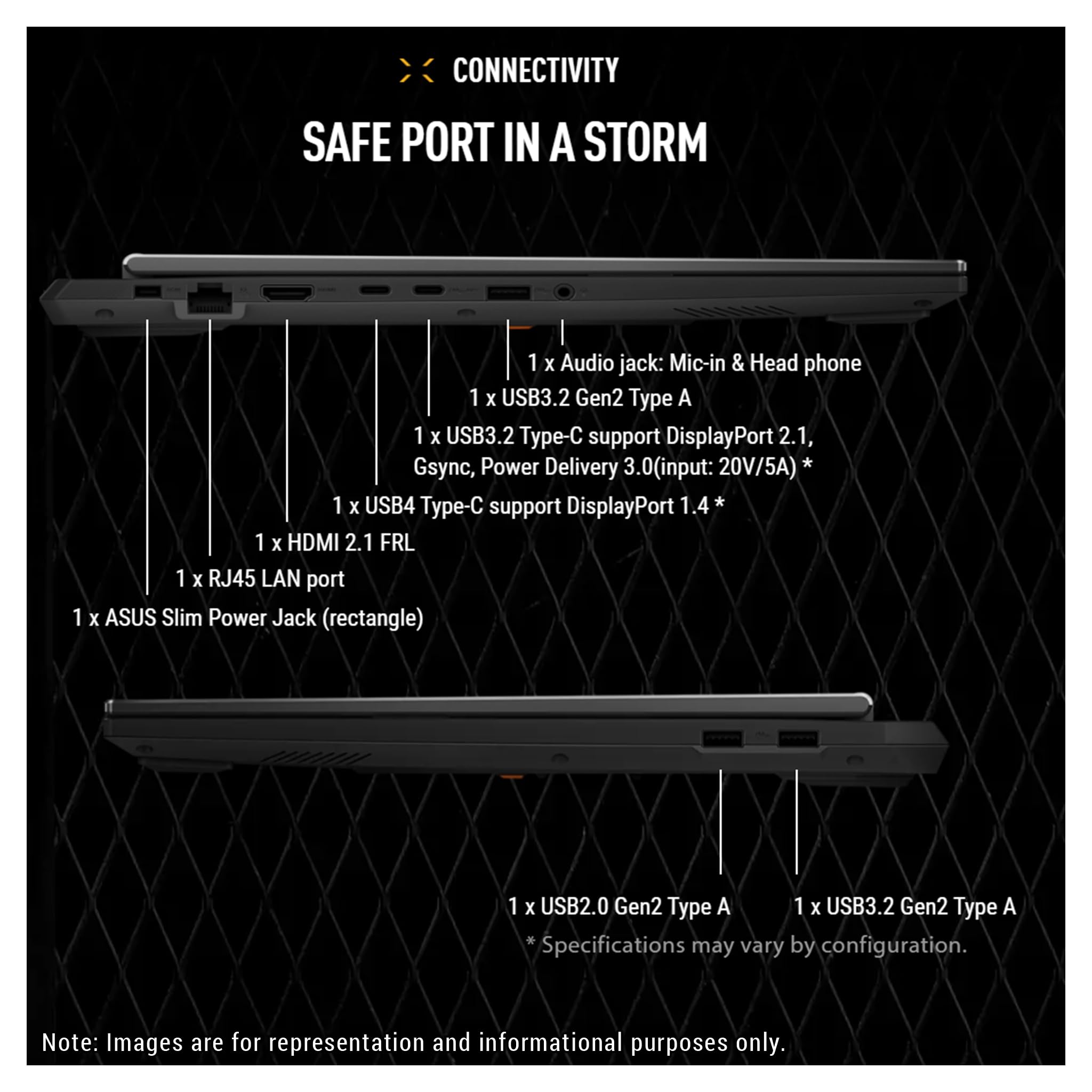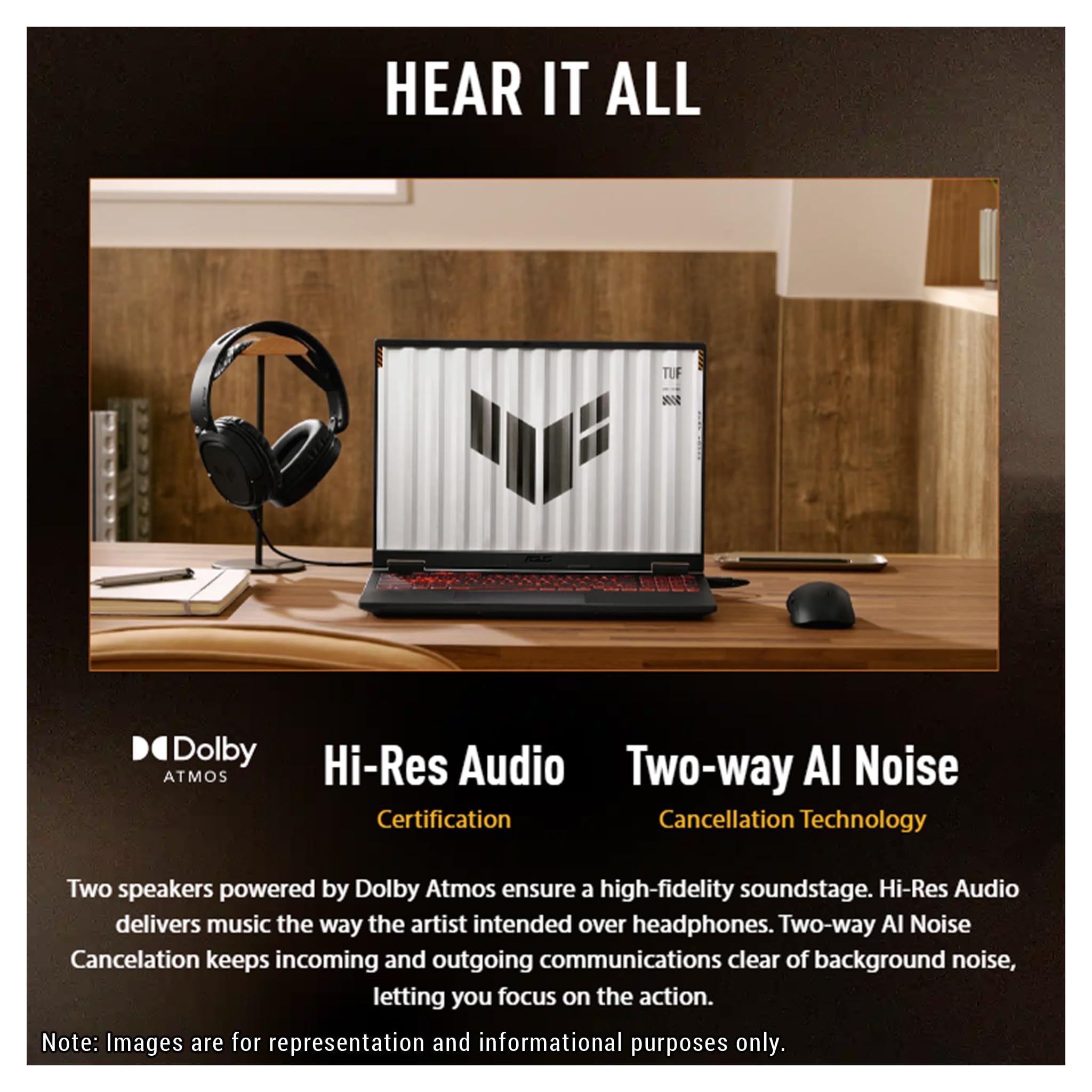 Designed for durability, the laptop meets military-grade standards while maintaining a sleek, understated aesthetic with the TUF logo. Its 16 inch, 165Hz display with a 16:10 aspect ratio delivers immersive gaming visuals, while 2nd Gen Arc Flow Fans, a full-width heatsink, and integrated dust filters keep performance cool and efficient. Dolby Atmos and Hi-Res audio provide rich, distortion-free sound, keeping distractions at bay so gamers can stay focused on the action.