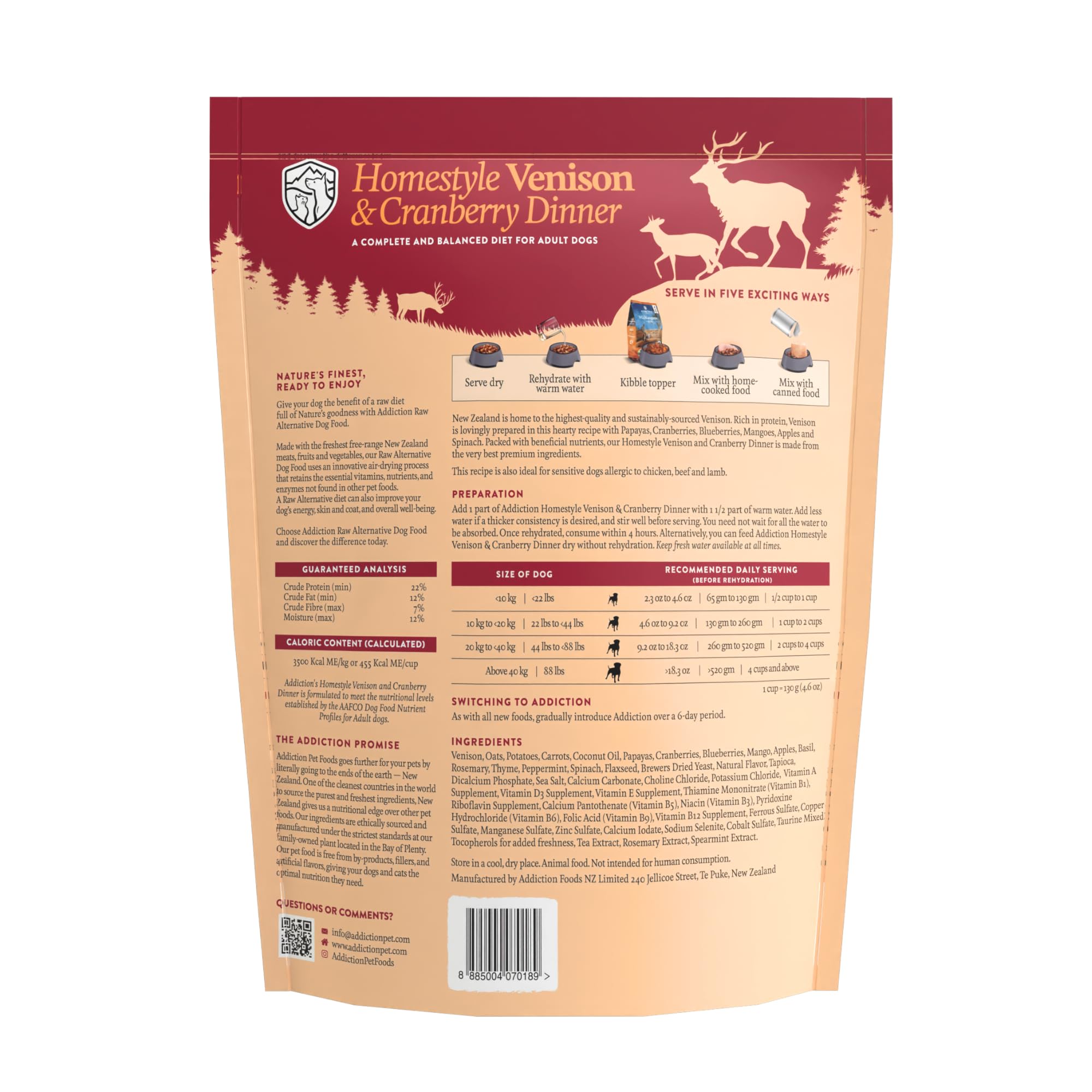 A Culinary Journey: From the robust Venison flavor to the tantalizing notes of Cranberries, Rosemary, and more, this dinner is a culinary journey that celebrates nature's finest. It's a hearty and wholesome delight that nourishes your dog's body and spirit.