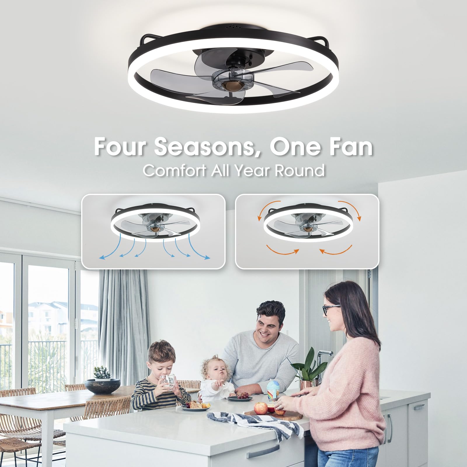 【Modern Ceiling Fans 2 in 1 Design】: 6 Wind Speeds + Timing Function + Reversible Wind + Memory Function + Dimmable LED Light. Modern low profile ceiling fan is designed with an LED light that adds to its sleek appearance, making it a great home decor item.