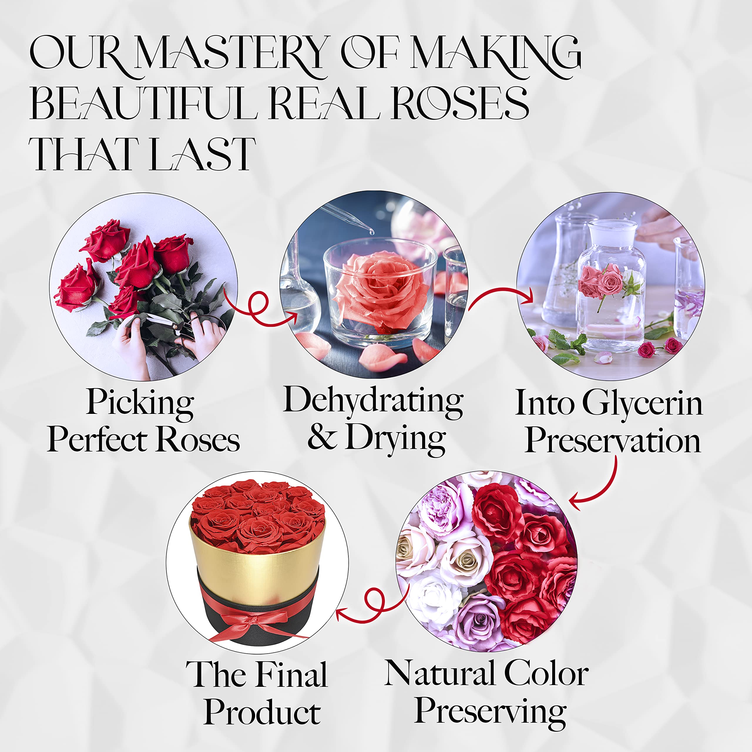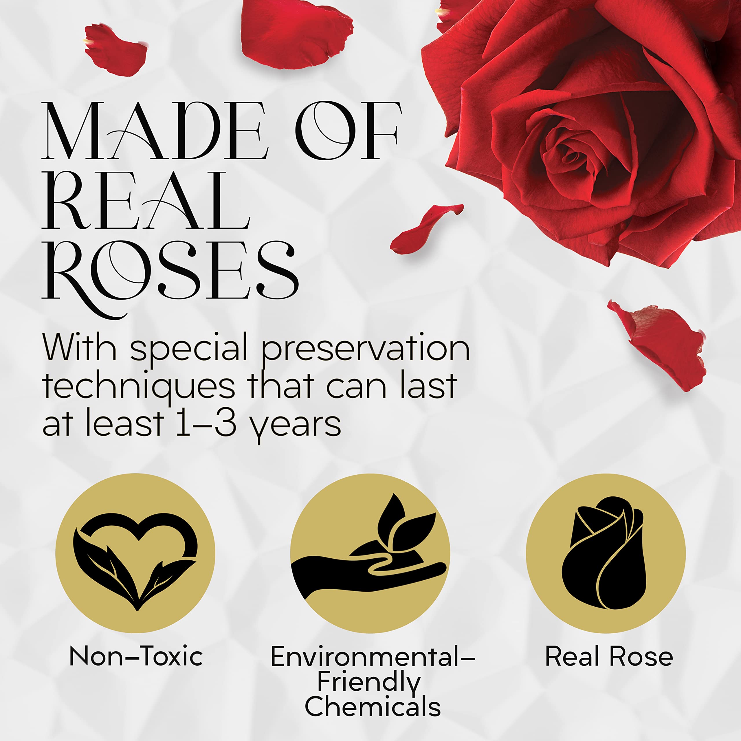 Crafted to Last for Years - Made from real roses using a premium preservation process, these preserved roses bouquet retain its natural charm for up to 3 years.