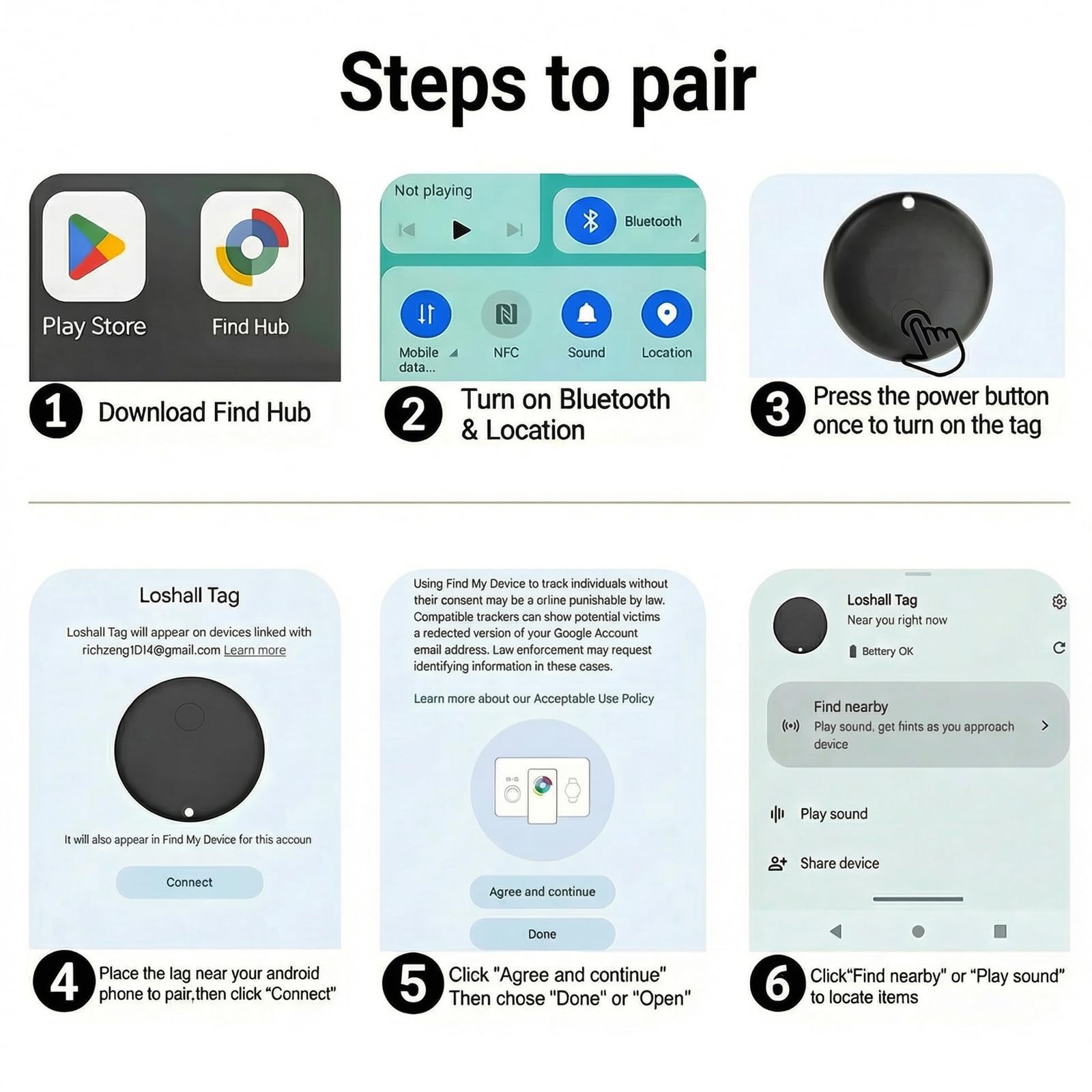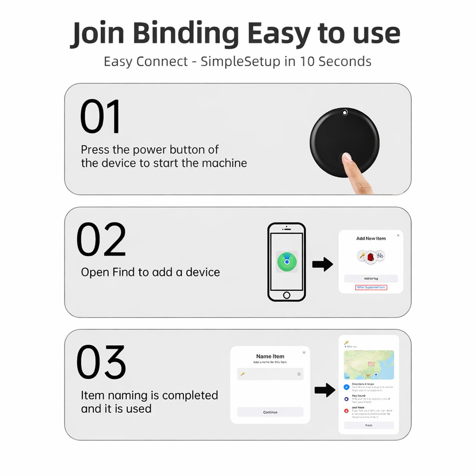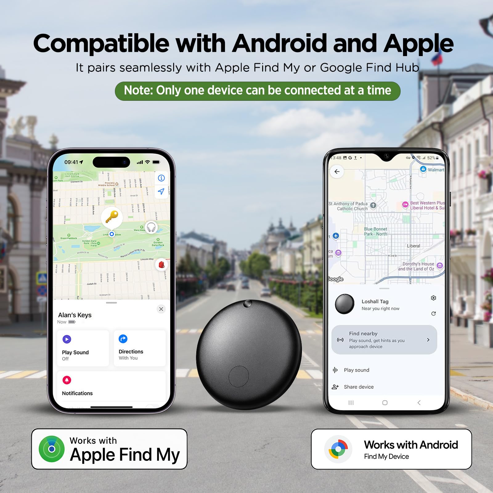 【Dual-System Compatibility for iOS & Android】This tracker device is compatible with both iOS and Android systems. Easily pairs with Apple Find My or Google Find Hub in seconds, making it a flexible GPS tracker for most smartphones. (Note: connects to one system at a time)