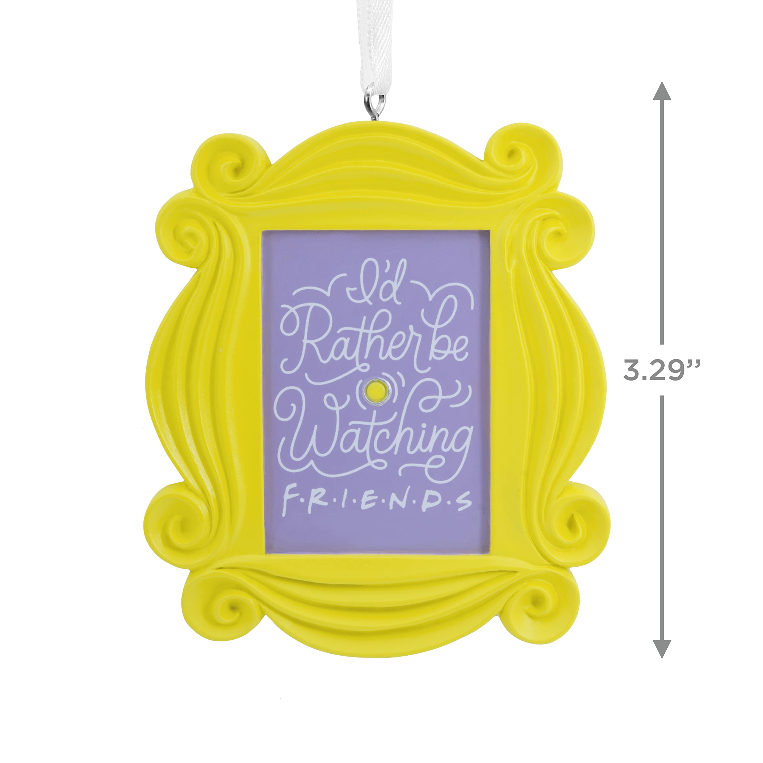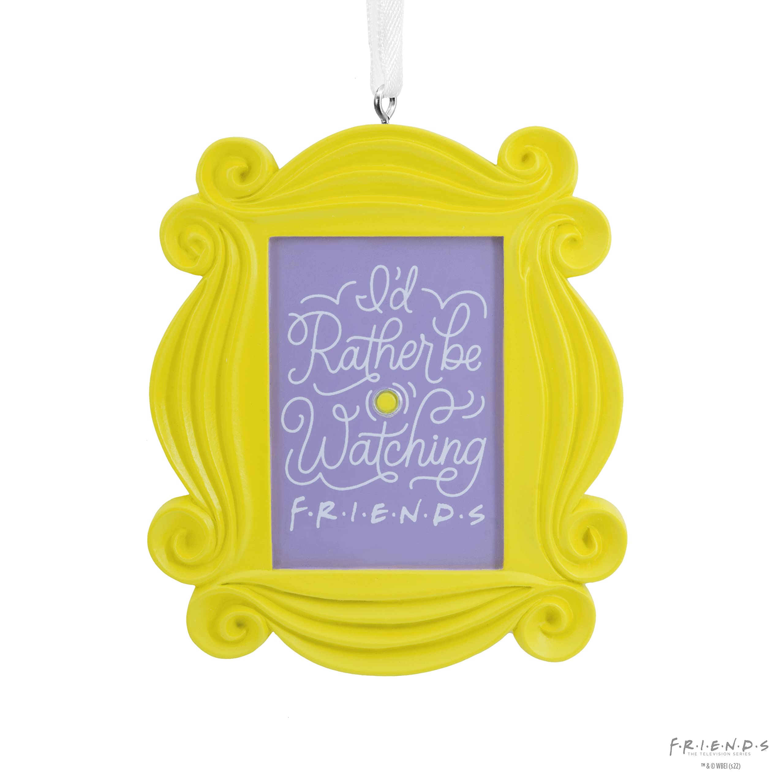 Fans of the popular TV show "Friends" will recognize the iconic frame that hung over the peep hole on the door in Monica and Rachel's apartment. Relive iconic moments with the pair of roommates and their pals Ross, Chandler, Phoebe and Joey every time you see this Christmas tree ornament that declares your affinity for the sitcom. Hallmark Ornaments celebrate characters and personalities from contemporary and classic movies, TV shows, toys, entertainment and sports. Each festive and collectible ornament is perfect for sharing with family and friends. FRIENDS and all related characters and elements © & ™ Warner Bros. Entertainment Inc. (s22)