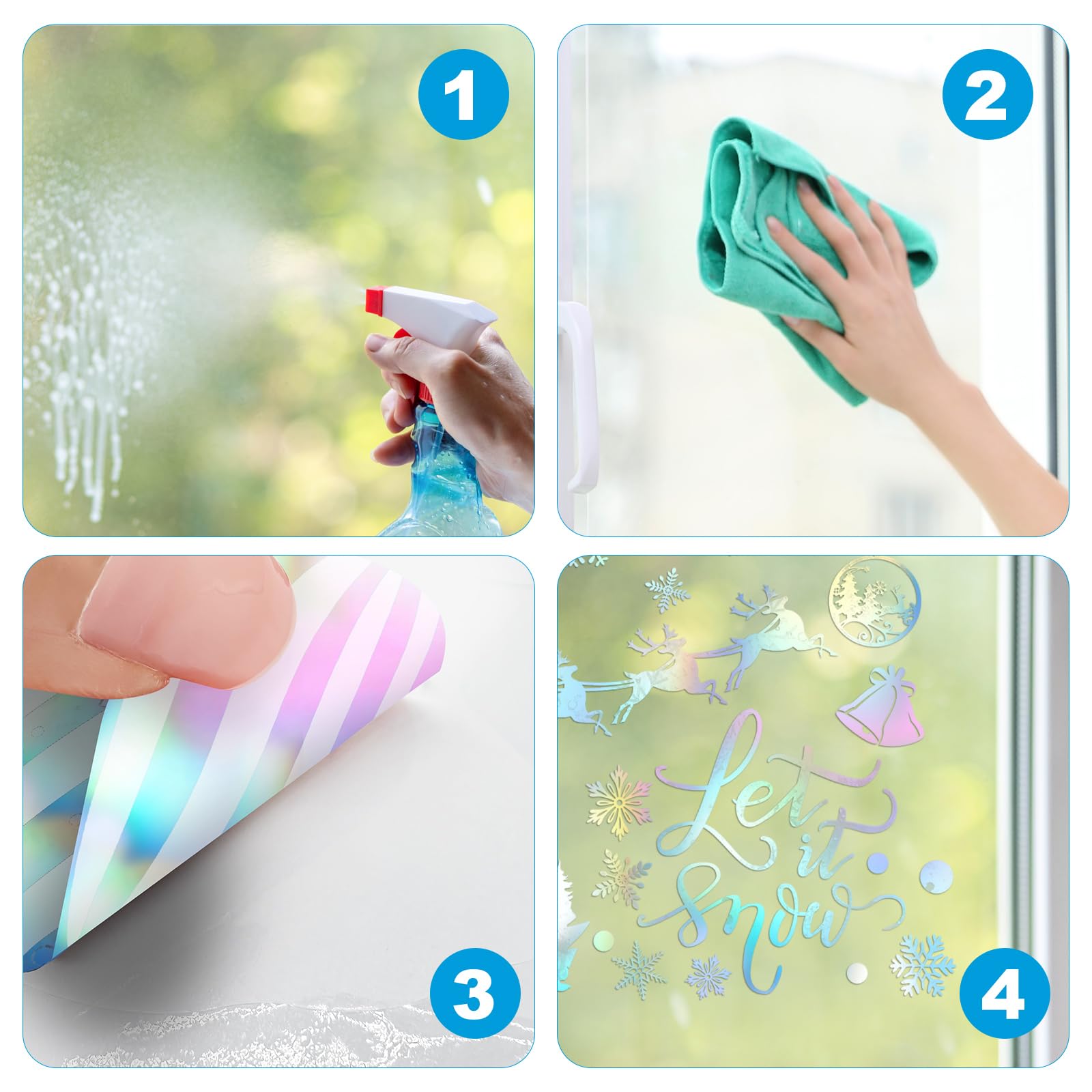 Easy to use: just peel off the fa'l'l thick gel clings from the plastic backing, then place it on any surface you want; if you want to rearrange it, just tear it off and move it. Before use, you can spray some water on the window, so that the window clings can be more firmly attached to the window