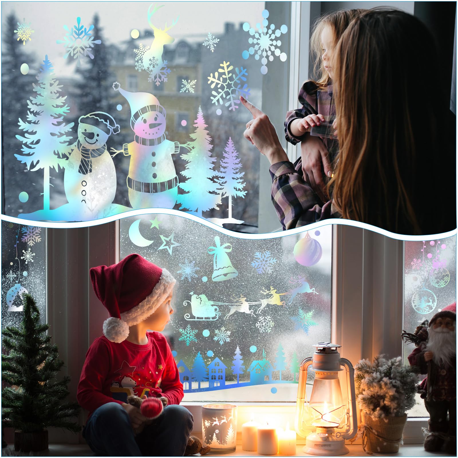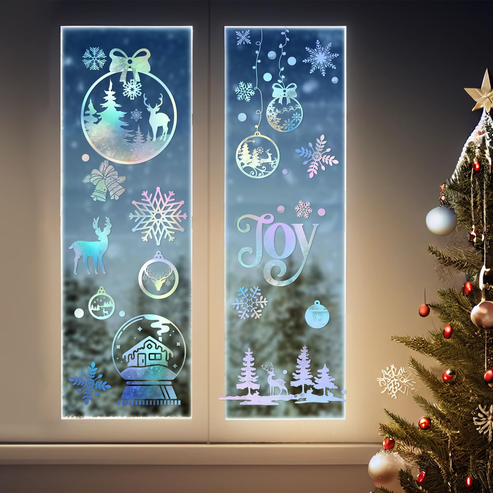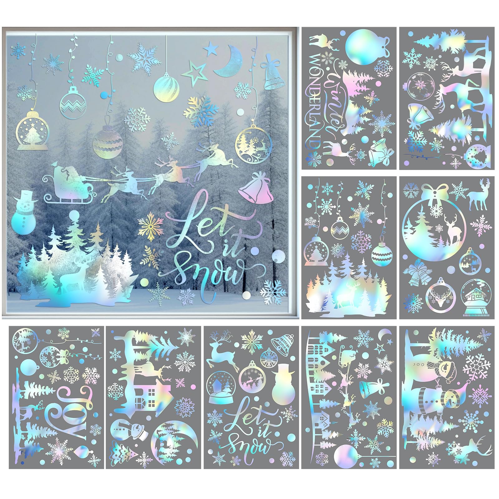 Unique designs: 9 sheets of Christmas winter decals for windows are designed with different patterns and colors, each sheet measures 20 x 30cm / 7.8 x 11.8inch, printed with let it snow,Xmas tree,reindeer snowman,snowball,snowflake and so on, well match the winter wonderland season atmosphere