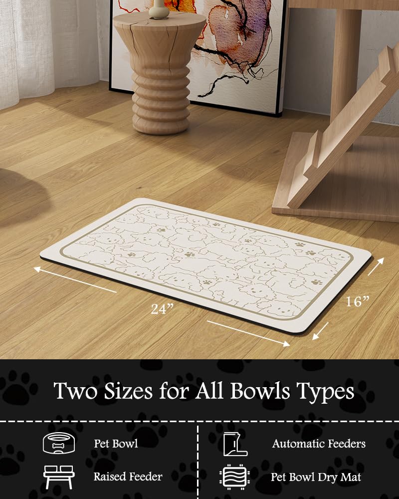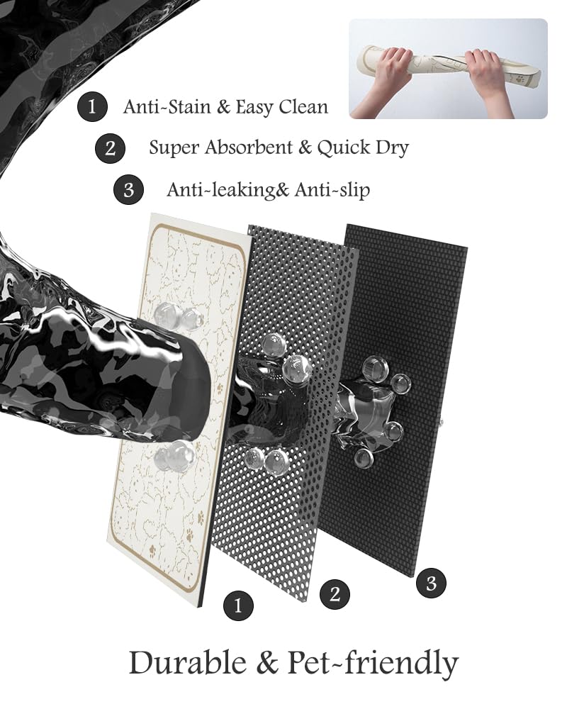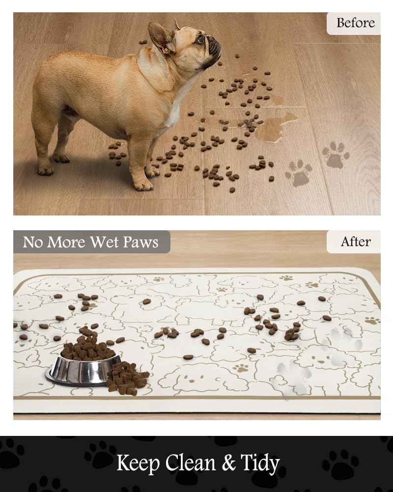 Super Absorbent & Durable: Perfect pet supplies.This pet food mat can prevent liquid from overflowing. Super absorbent and quick-drying ability to avoid wetting pet paws even for messy drinkers. Sturdy dog & cat food bowl mat cannot be torn easily and avoid eating by mistake. Keep the pet's eating environment tidy and clean.