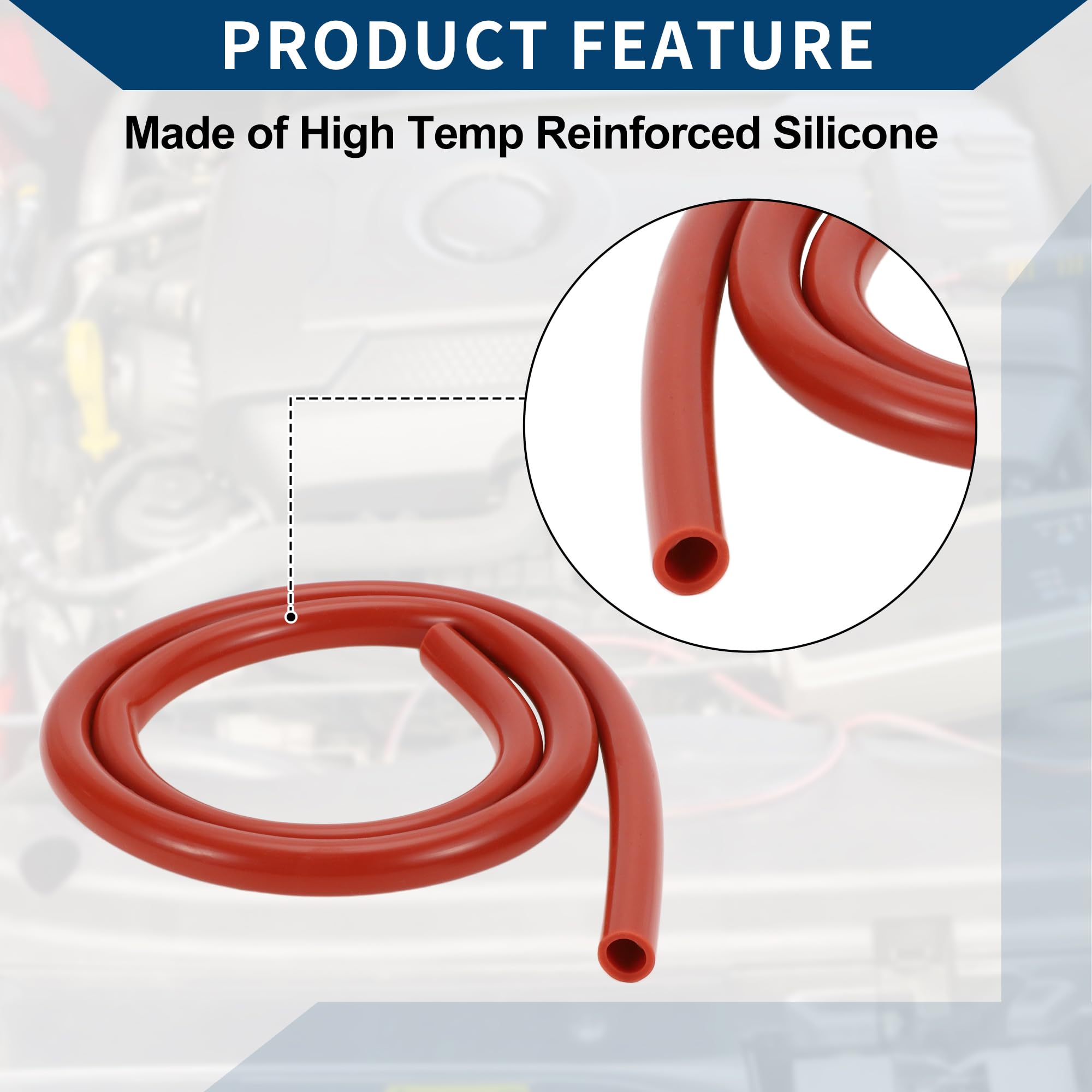Made of:The silicone vacuum hose, made of high temp reinforced silicone, is a solid silicone tubing, which has no irritating odor and has high heat resistance with no collapse. The silicone tube is not easy to twist and deform.