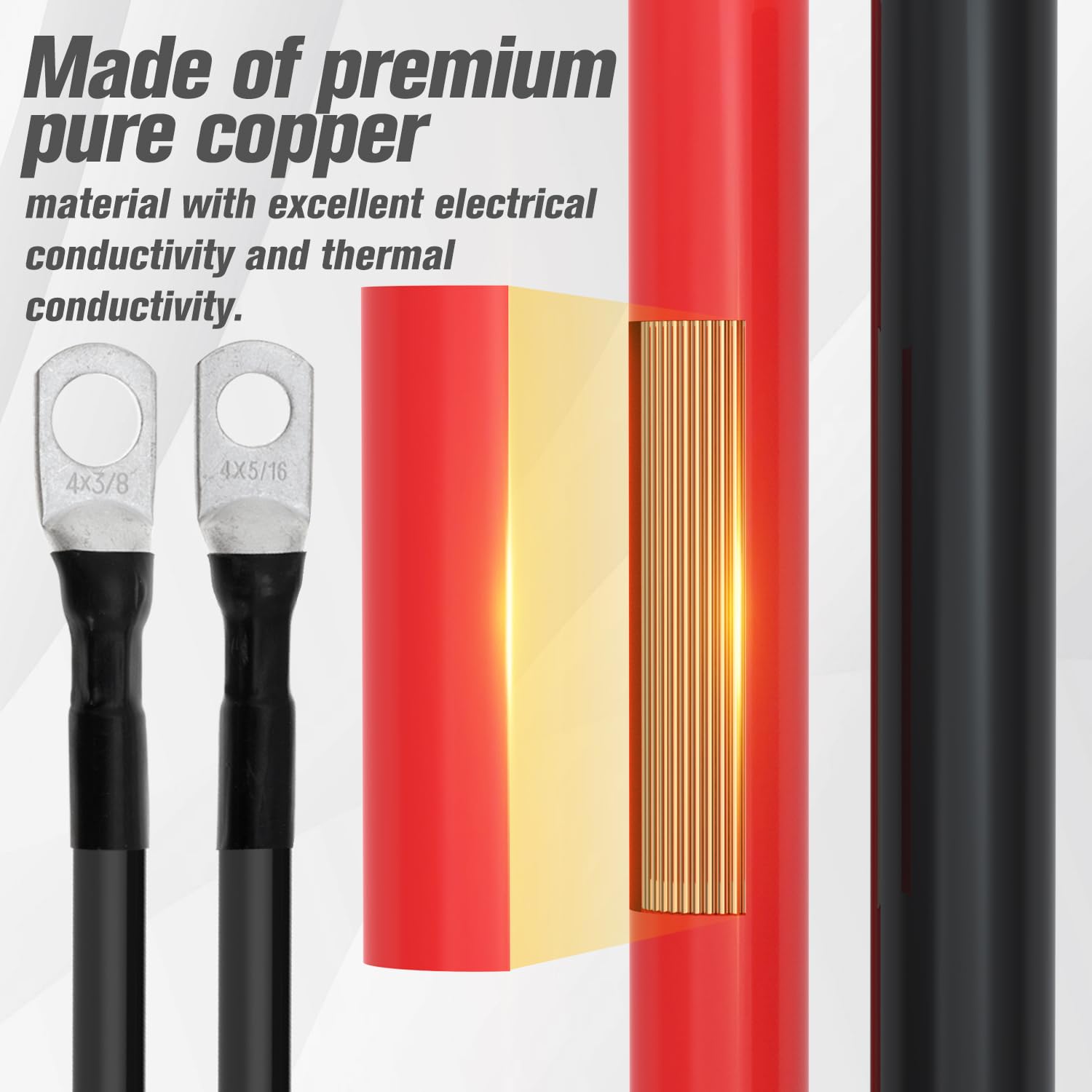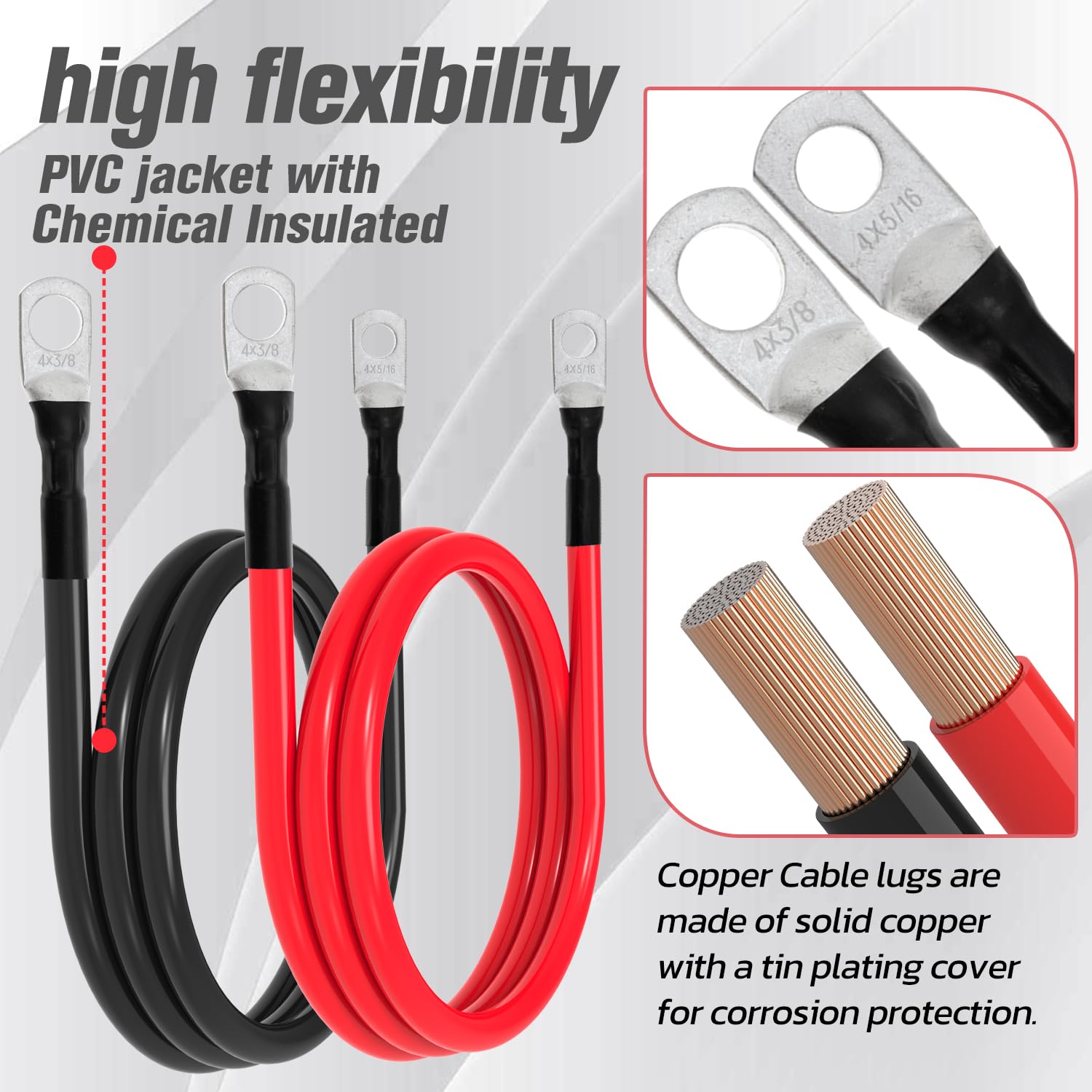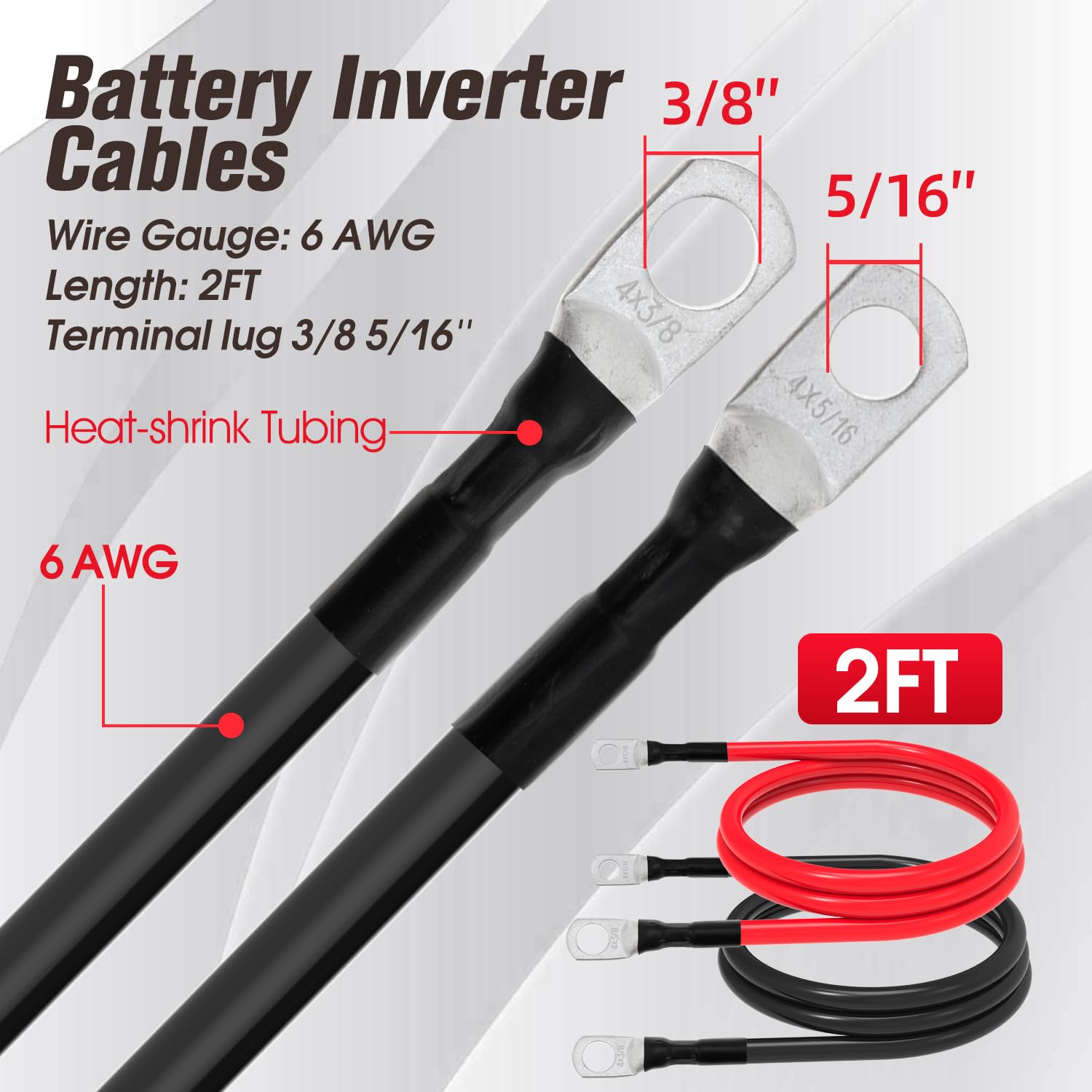 Wire Gauge: 6 AWG; Length: 2FT; Terminal lugs: 3/8"+5/16"