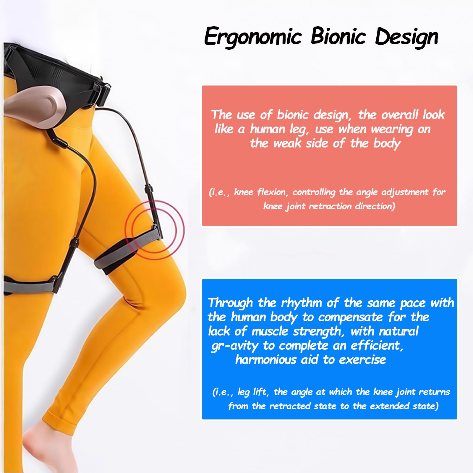 【Bionic design】The use of bionic design,the overall look like a human leg. Wear on the body when in use, make up for the lack of muscle strength through a rhythm that is in line with the human body, and complete efficient and harmonious auxiliary exercises with the help of natural gravity