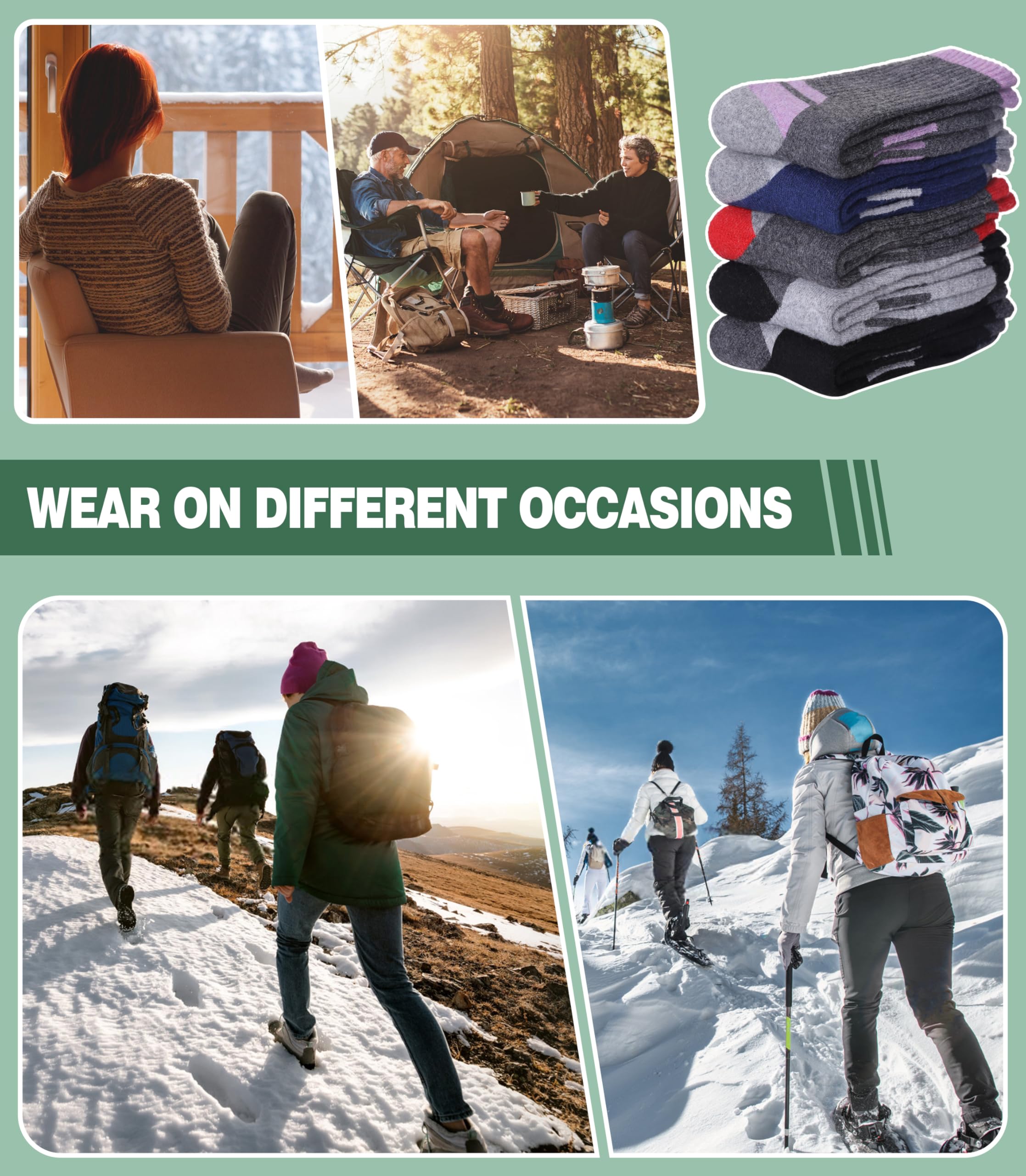 MULTI-FUNCTION - The wool socks for women are suitable for different situation, you can wear them as house socks, office socks, school socks, hiking socks, christmas socks in spring, fall, winter season or in any cold weather areas.