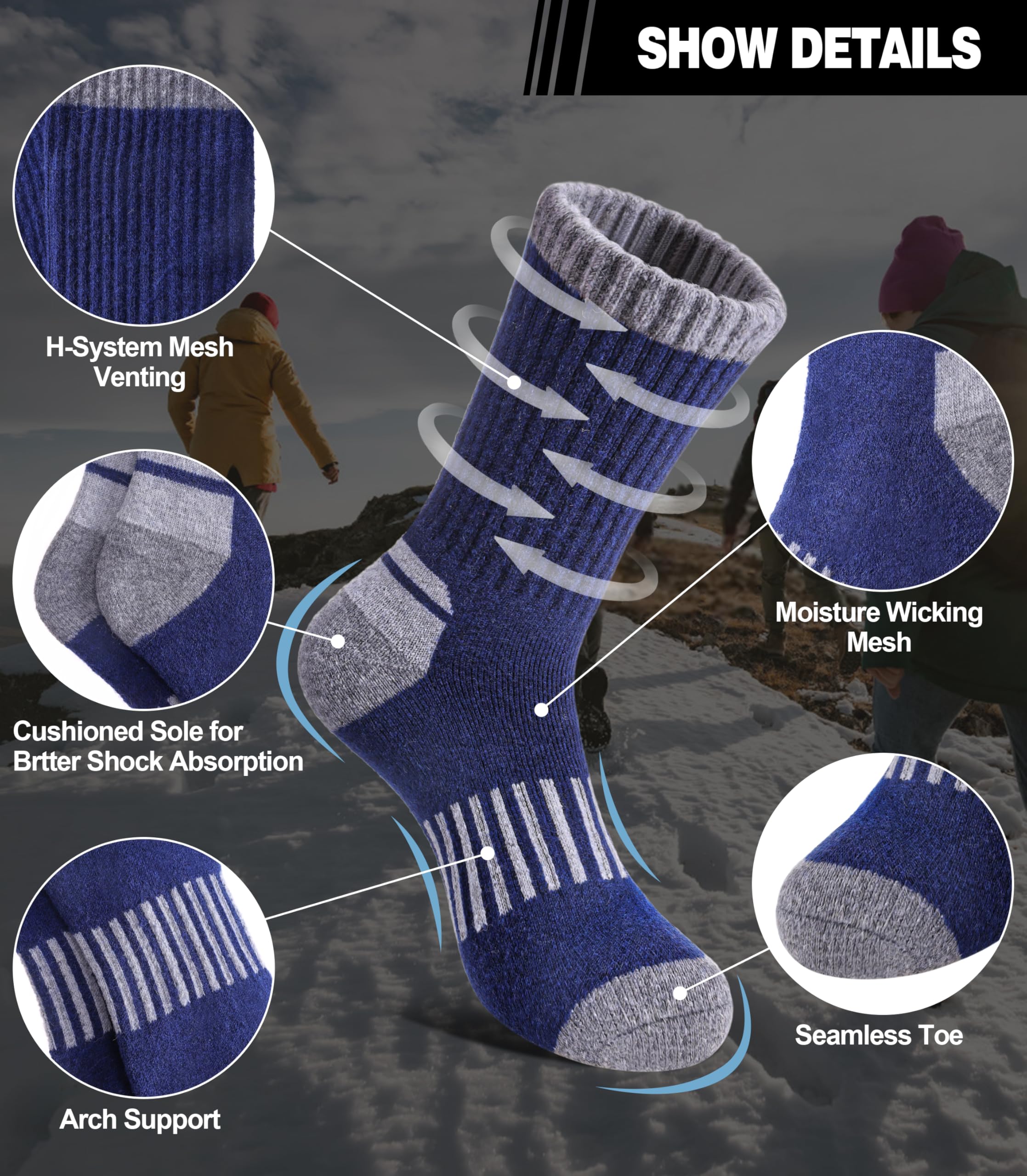 MERINO WOOL SOCKS - These crew socks for women made of 70% merino wool, 22% polyester, 8% spandex. Keeping your feet wam and healthy during cold weather is important to your overall health, which is why we need soft, warm winter socks.