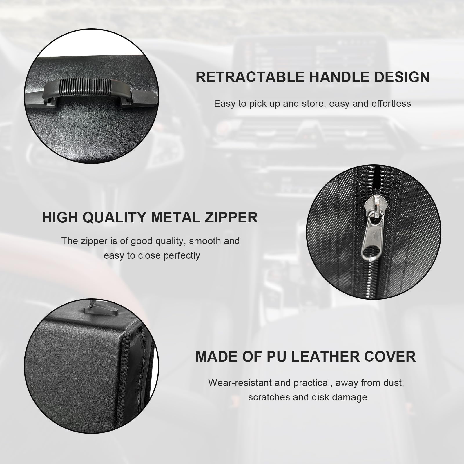Specification: Material: PU Leather Quantity: 1 PCS Style: 520 Capacity/ 400 Capacity Color: Black Weight: 2.52 lb Size: 12.4×4.5×11/ 12.4×7.1×11.4 inches Feature: Protective, Portable, Convenient Fit Type: Universal Fit Here are some reasons to choose our CD case: -The internal storage pouch is made of soft, scratch-resistant material that effectively minimizes friction and keeps discs from scratches or dust buildup. -The zipper structure is solid and durable, and has been tested with multiple openings and closures to ensure that it will not snag or break with long-term use. -The surface features a smooth and refined texture, delivering a sophisticated look.