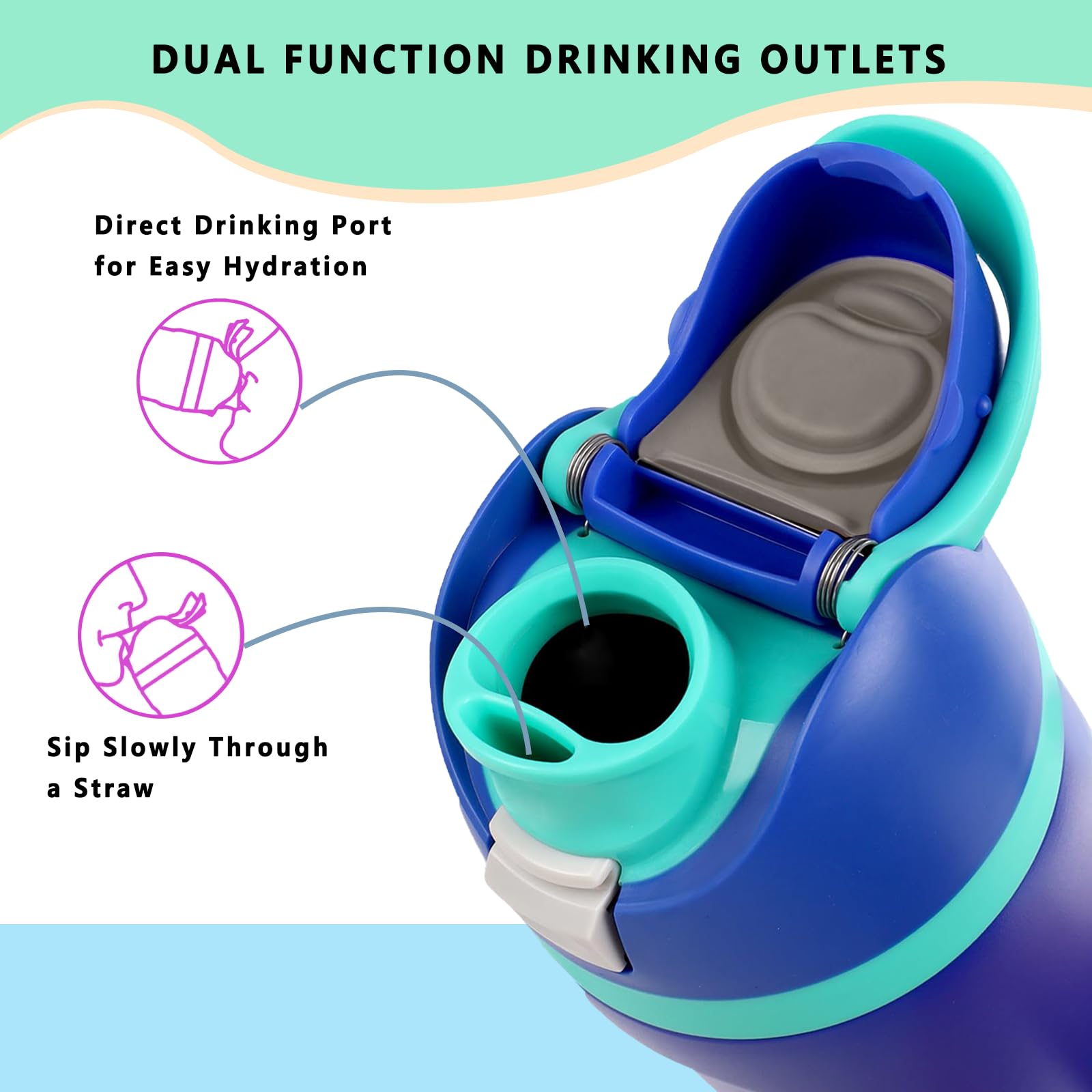 【2-in-1 Drinking Options】Enjoy two convenient drinking options with the compatible with Owala replacement lid. Featuring two drinking ports, it allows you to sip through a small opening or take a big gulp through a larger one. Plus, it’s compatible with your original straw, making it a versatile solution for easy hydration on the go.