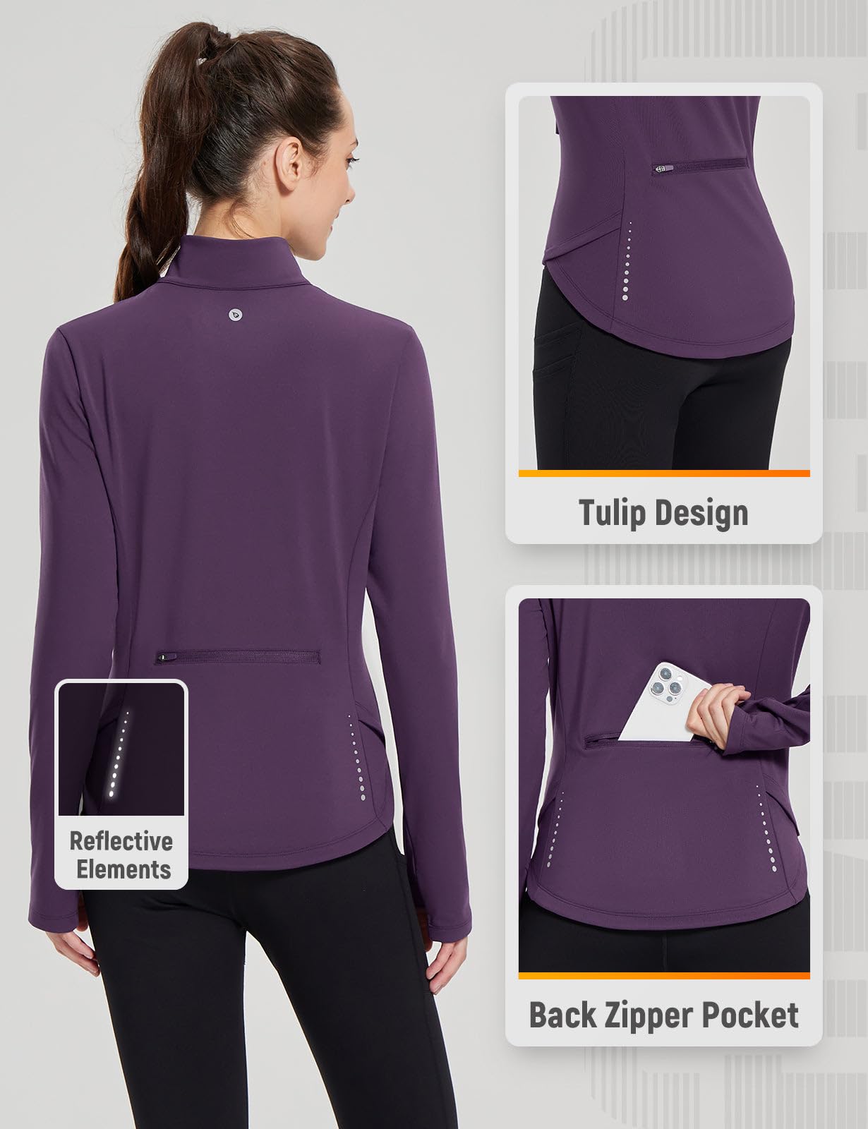 Utility Pockets: Our winter running jacket with 2 side pockets, a rear zipper pocket, and 2 hidden inner pockets to store your items. Reflective elements for low-light visibility