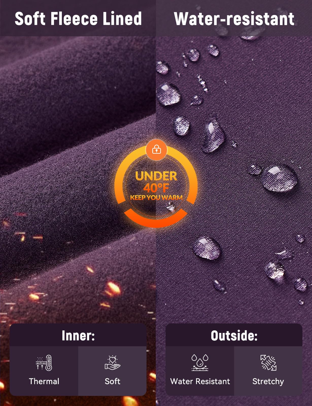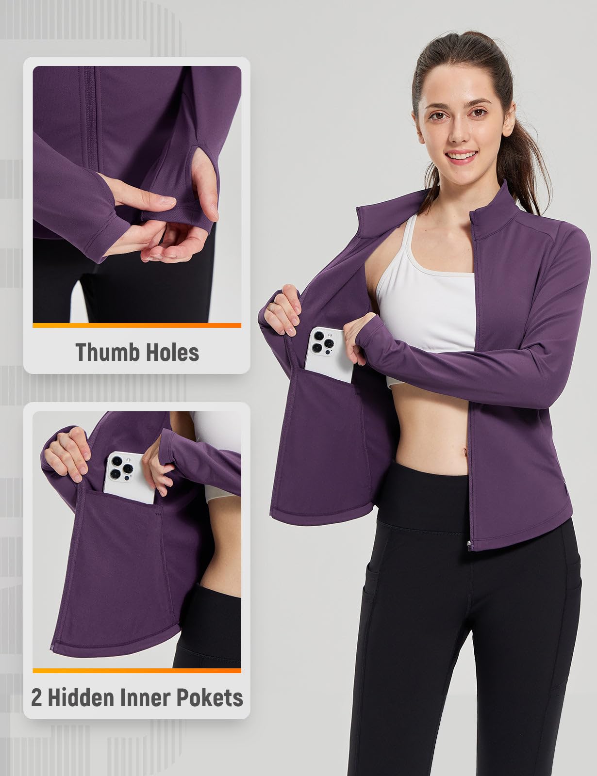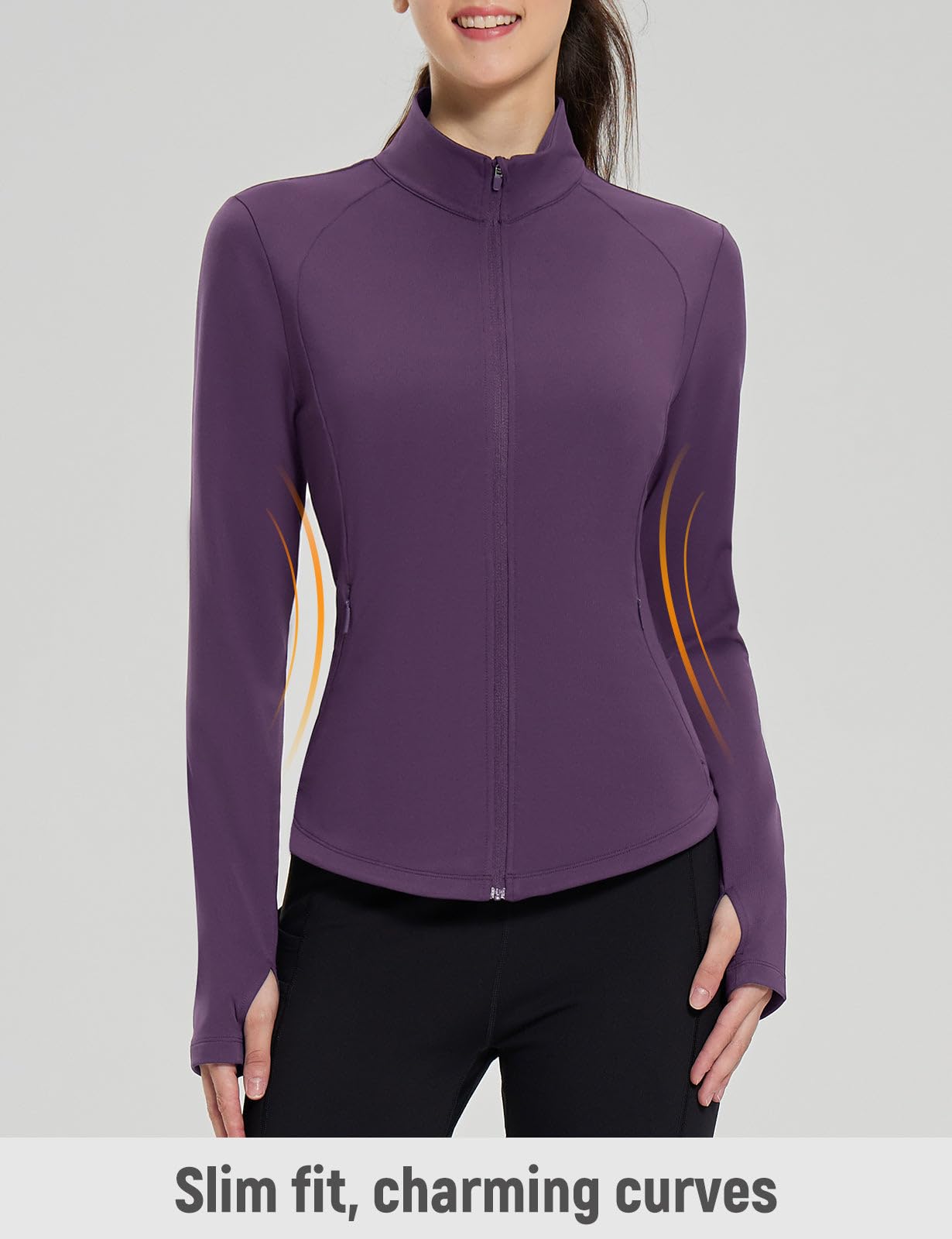 Description Warm & Water Resistant: The soft fleece inside provides long lasting warmth and comfort. Water resistant fabric can handle light rain for a short time.This slim fit full zip running jacket was made for all body shapes, offering comfort and accentuating your silhouette Thumb holes & Mesh Vents: This long sleeve track jacket also offers thumb holes to increase hand coverage and warmth during the cool weather. Hidden underarm mesh vents provide ventilation and prevent overheating 5 Pockets & Reflective Elements: Our fleece lined running jacket with two side pockets, a rear zipper pocket and 2 hidden inner pockets to store your items. Reflective elements for low-light visibility Full Zipper & Stand-up collar: This thermal running jacket has a self-locking function to keep the left zipper fixed during exercise and not easy to slip. Stand-up collar style could help you to keep warm Muliti-Use: Women's fleece zip up jacket is super warm, It can be worn on their own or over your shirt. Perfect activewear for yoga, exercise, gym, cycling, running, any type of workout, or everyday use