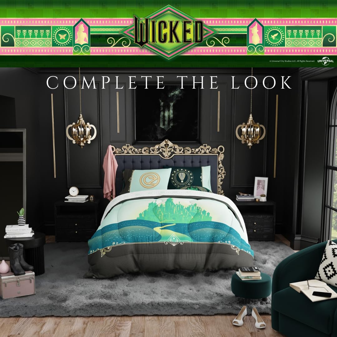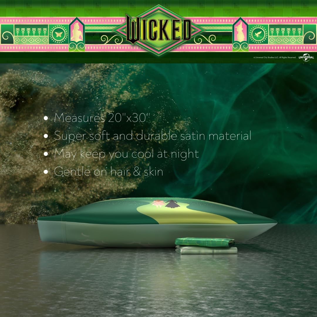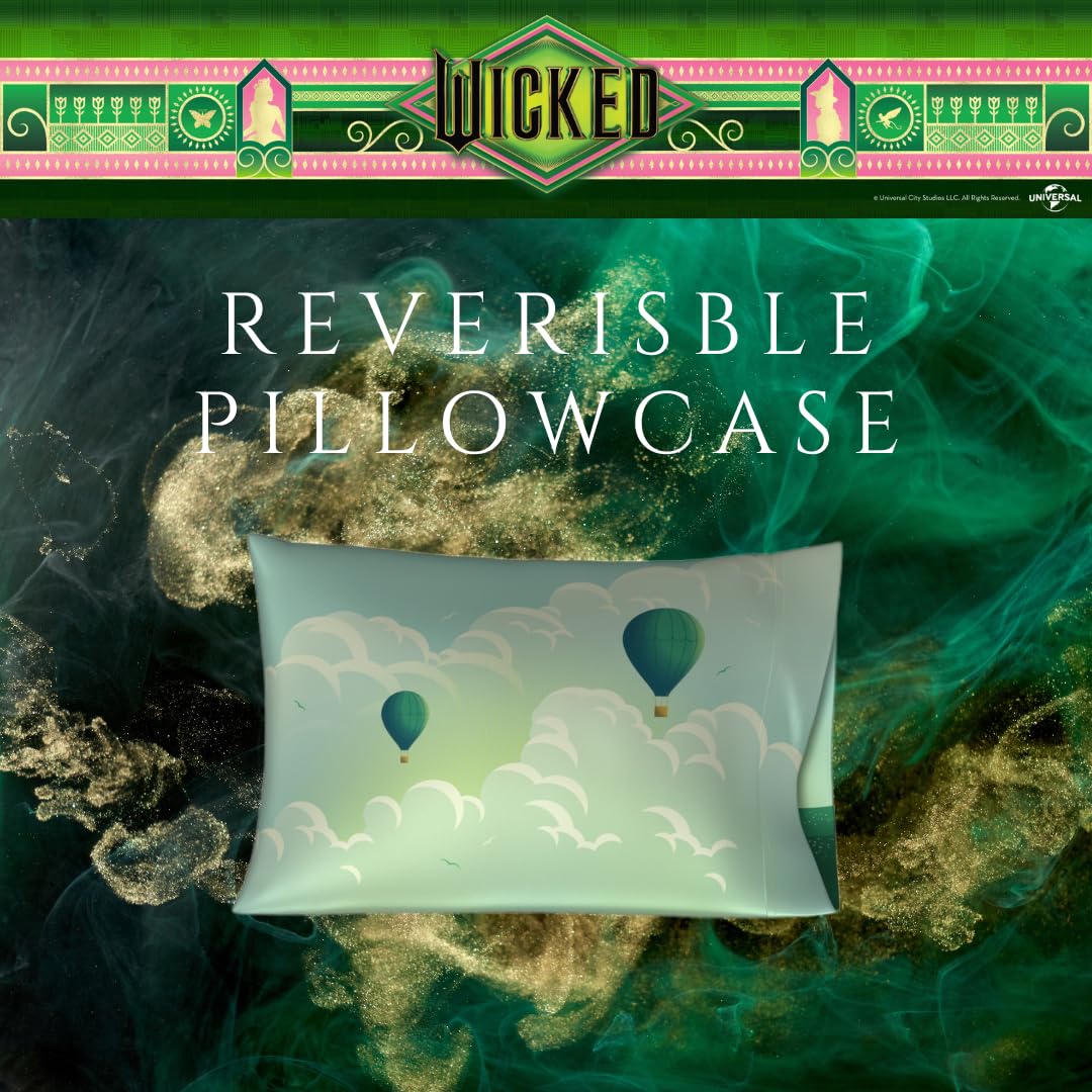 WICKED DESIGN: Transform your bedroom with the "Down the Road" Wicked satin pillowcase. Featuring iconic imagery of the Emerald City and hot air balloons, this super soft, machine washable pillowcase adds a magical touch to your space. An officially licensed, must-have accessory for any fan.