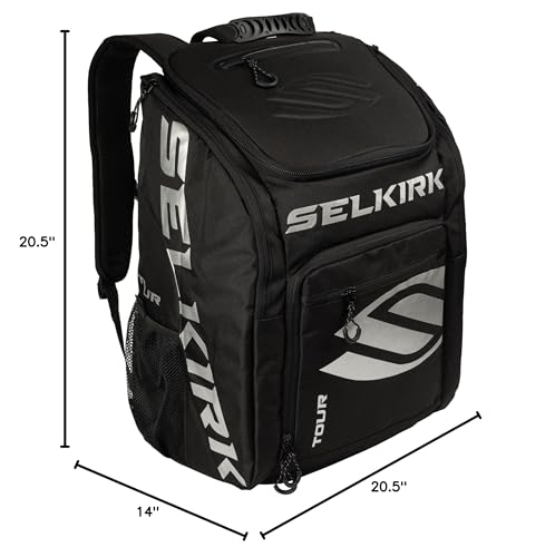 【ELEGANT DESIGN】 It has a minimalist design with the Selkirk logo which gives our Tour bag a pop of contrast to the Black background and lets everyone know you use the same paddles the pros use. The Tour backpack also features new access through the top and front for easy-access compartments and also includes Selkirk's Premium Zippers to withstand frequent use, a padded front pocket for smaller items and a side mesh compartment to hold your water bottle.