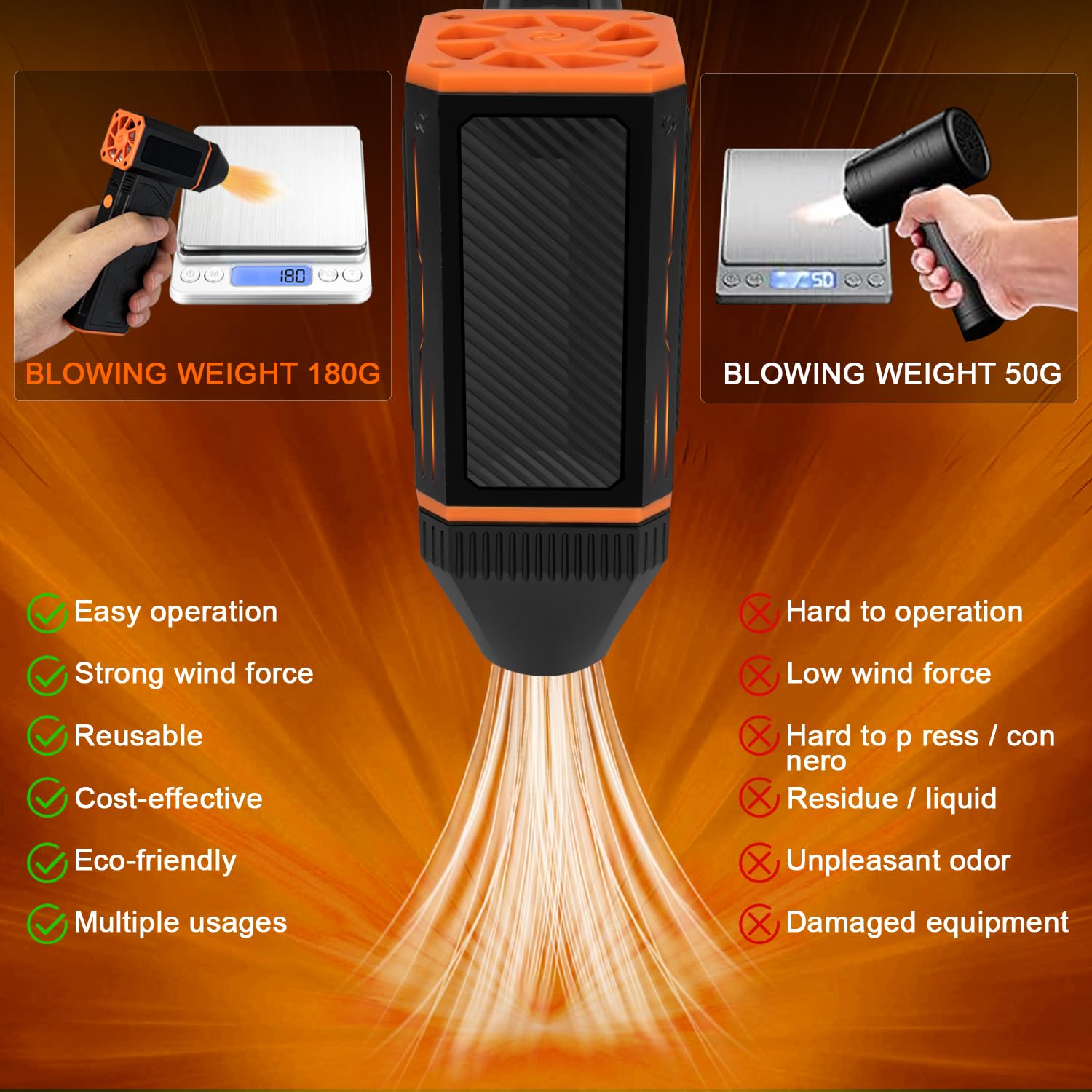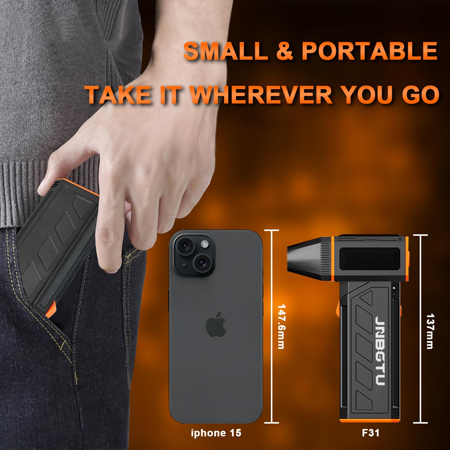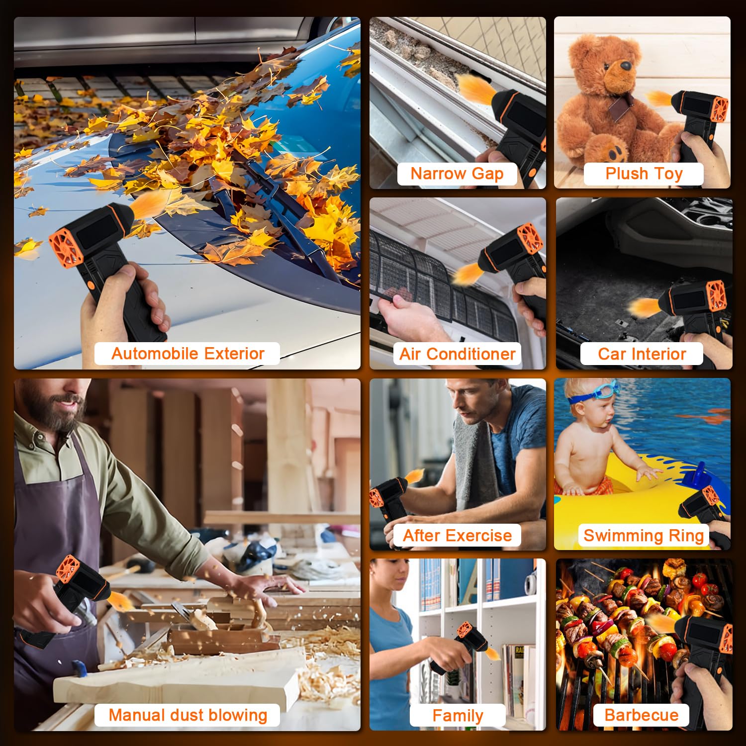 Compact and Multifunctional: With dimensions of just 1.35 * 5.9 inches and a weight of 0.48 pounds, this blower fits easily in your pocket, making it highly portable for both indoor and outdoor use. It’s perfect for tasks like cleaning desks and keyboards, drying pet fur, and inflating air mattresses and lifeboats. Additionally, it’s handy for outdoor activities like picnicking and fire-starting
