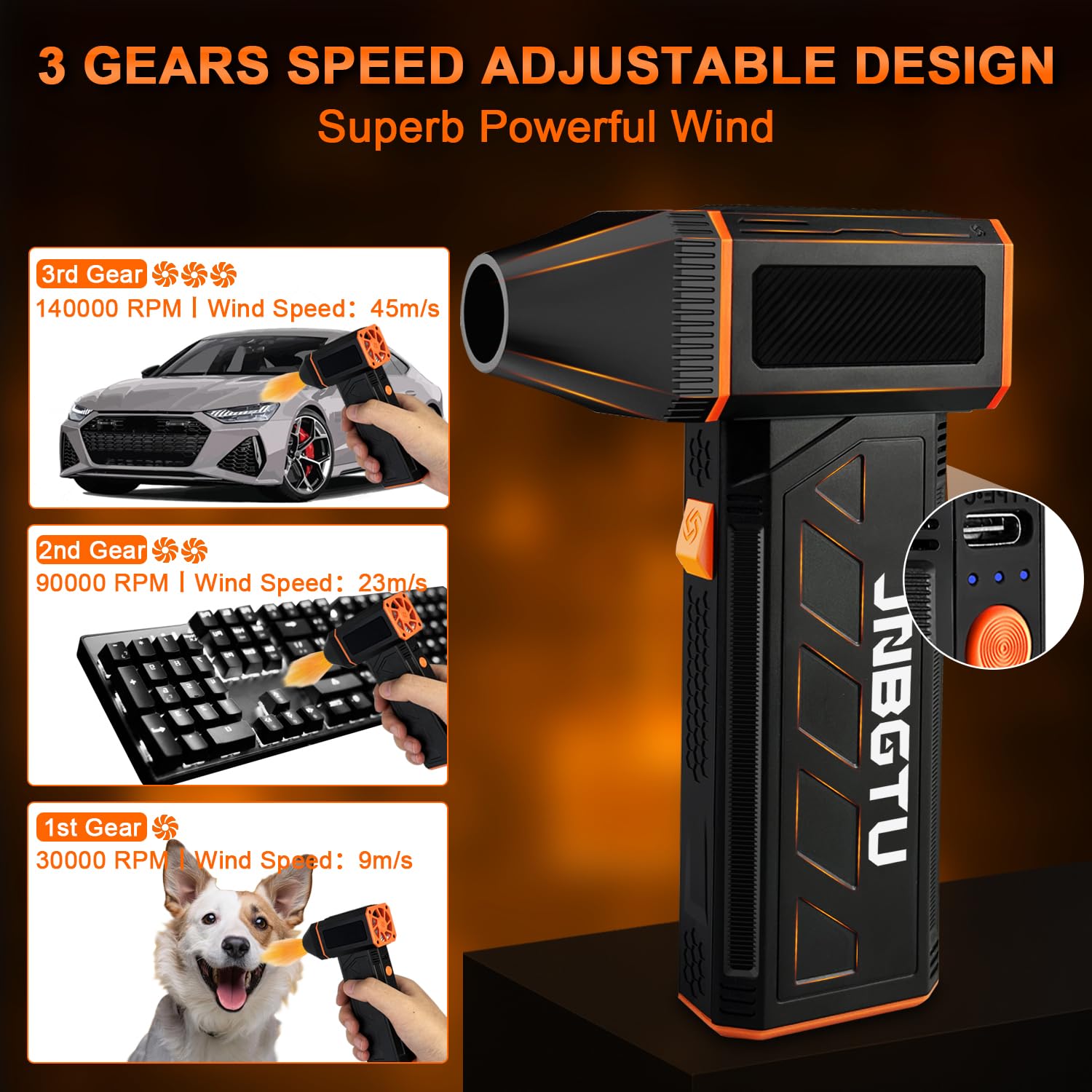 Strong Airflow: With a maximum speed of 140,000 RPM, this air dust collector produces high pressure airflow of 45 meters per second and offers three adjustable speed Settings for excellent performance. The strong compressed air creates a strong airflow that ensures easy and thorough cleaning of every corner