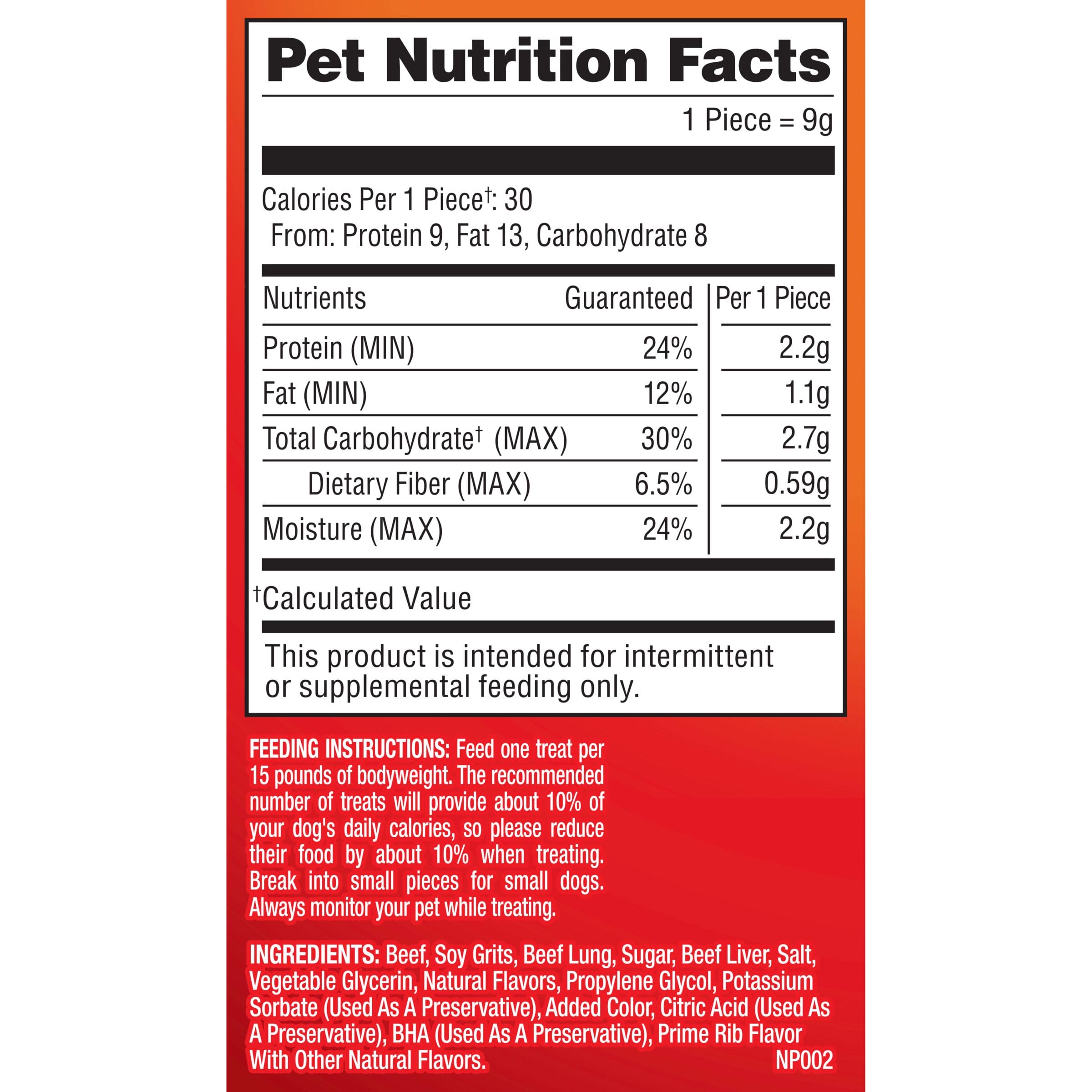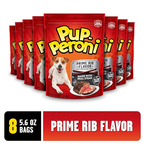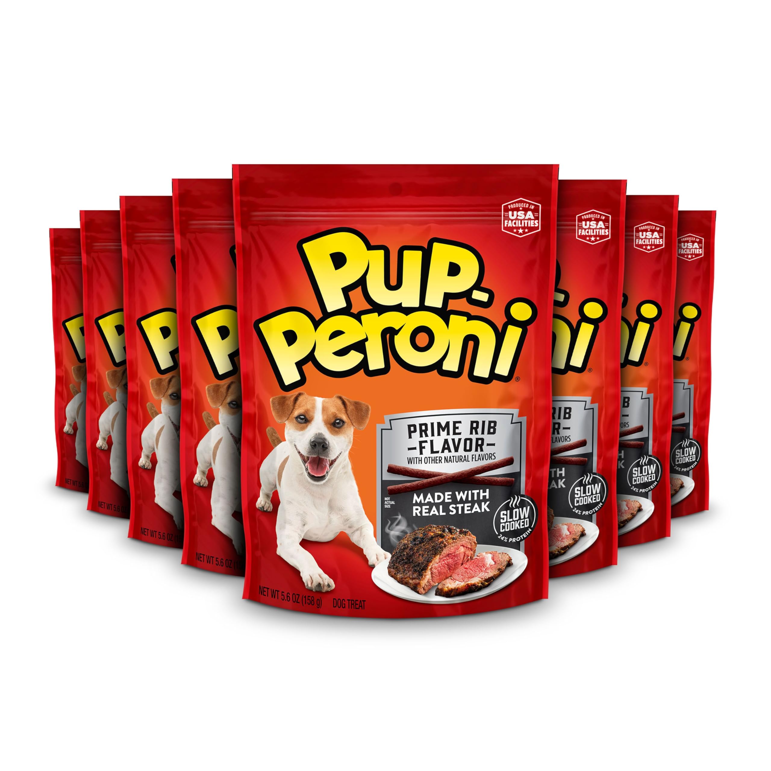 Contains eight (8) 5.6 oz. bags of Pup-Peroni Prime Rib Flavor soft dog treats made with real steak