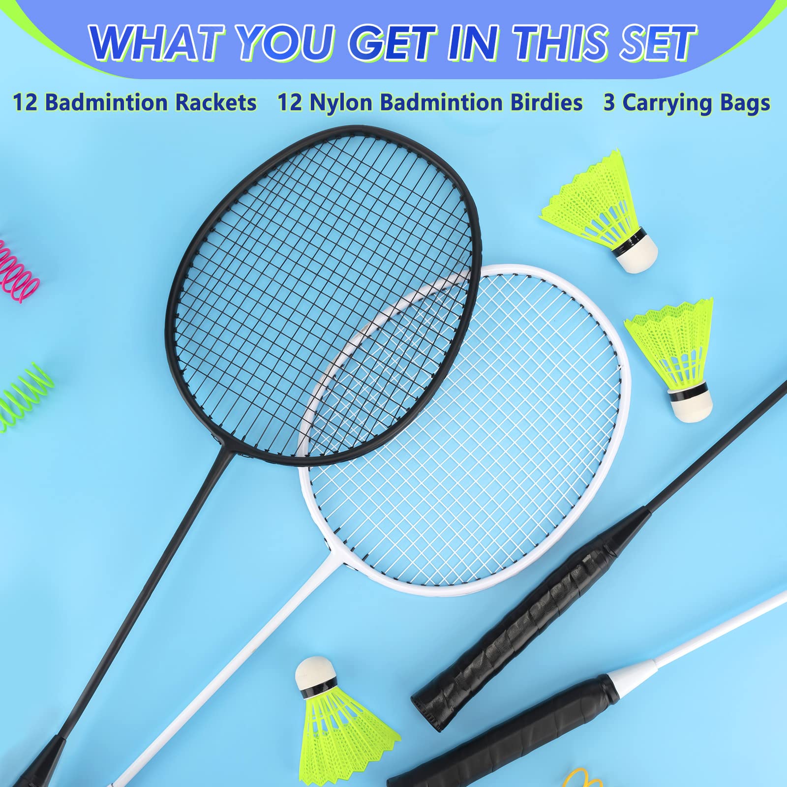 Rich and Complete Set: you will receive 12 pieces of badminton rackets, 12 pieces of shuttlecocks and 3 pieces of racket bags, which is convenient for you to carry and bring back when you go out, the nice combination for your convenient use