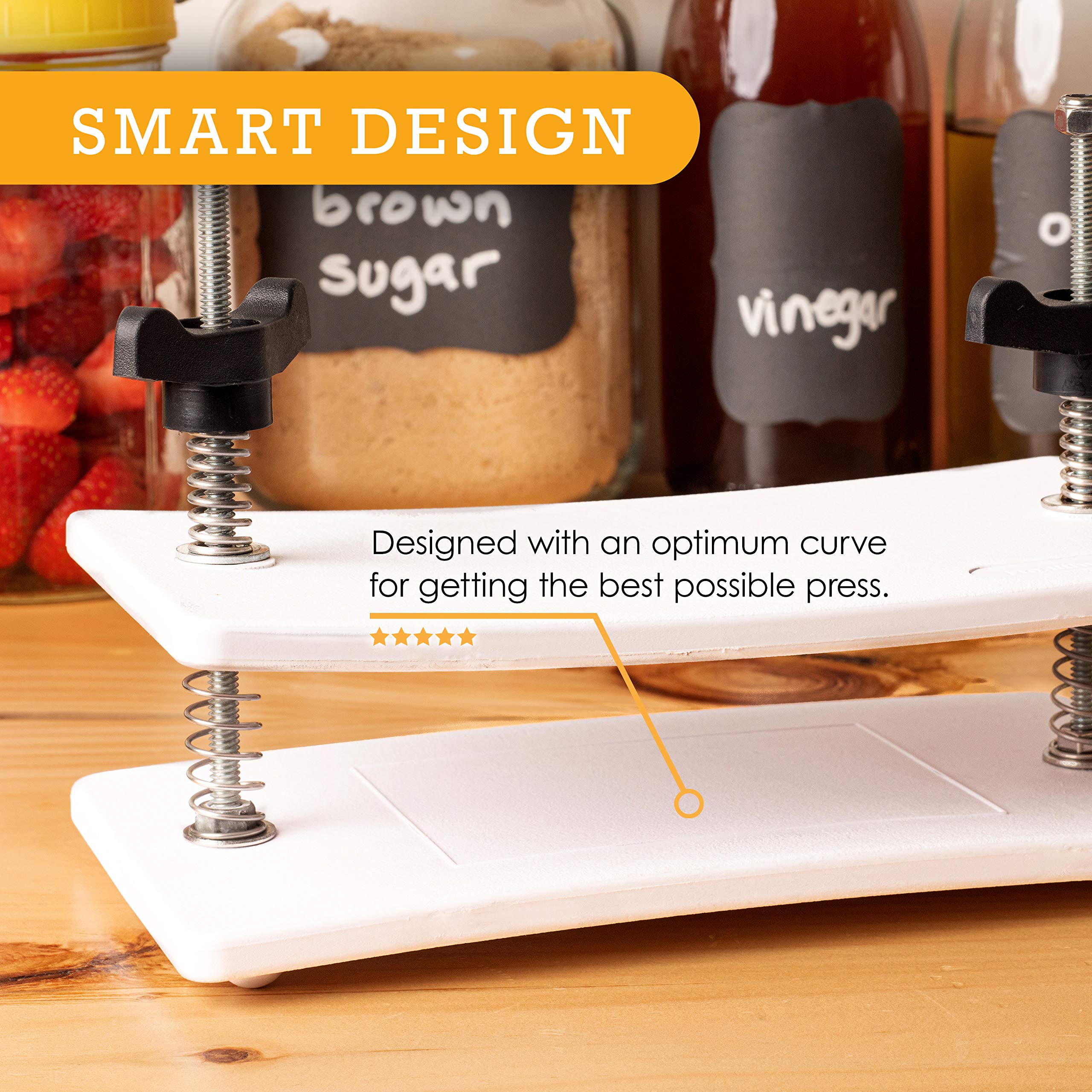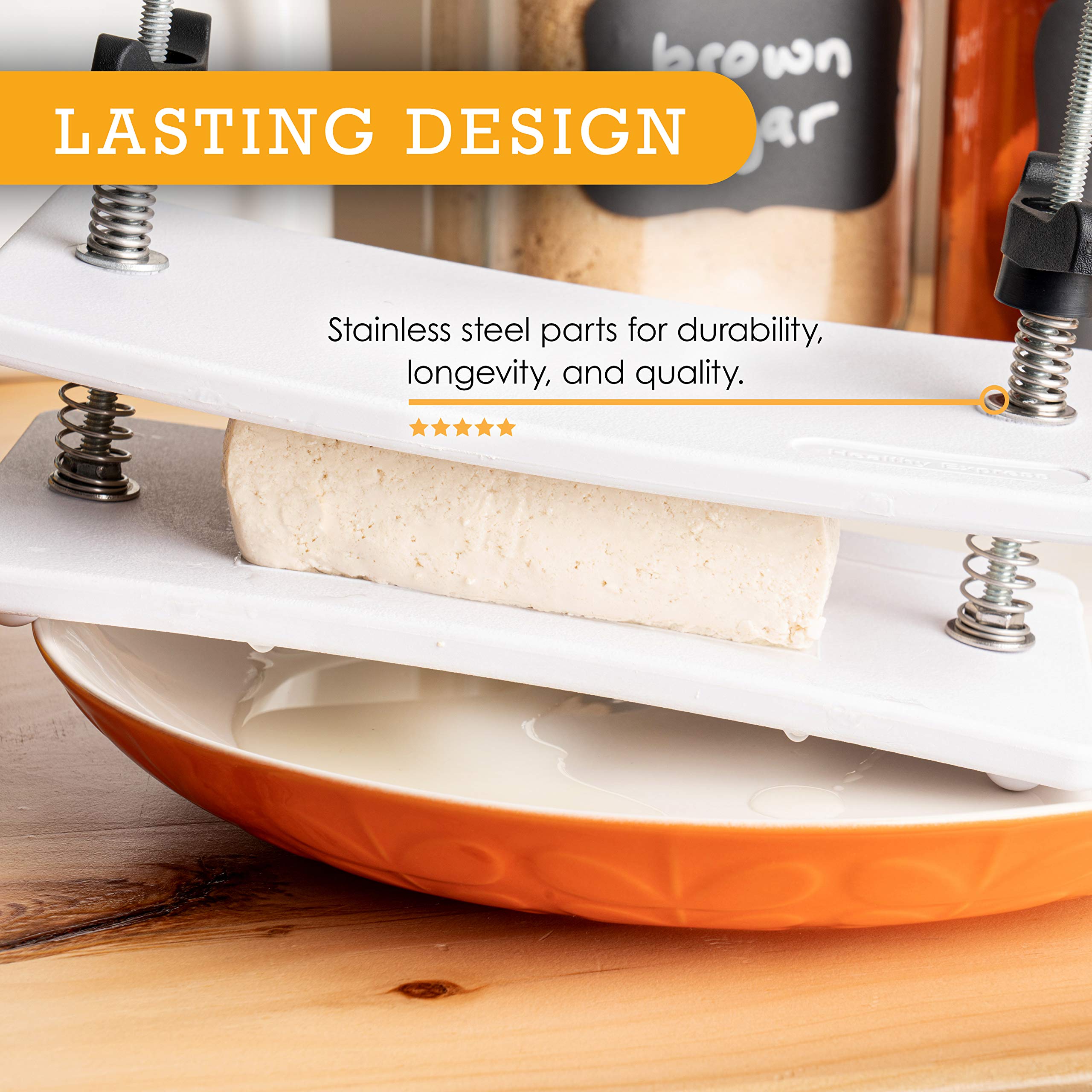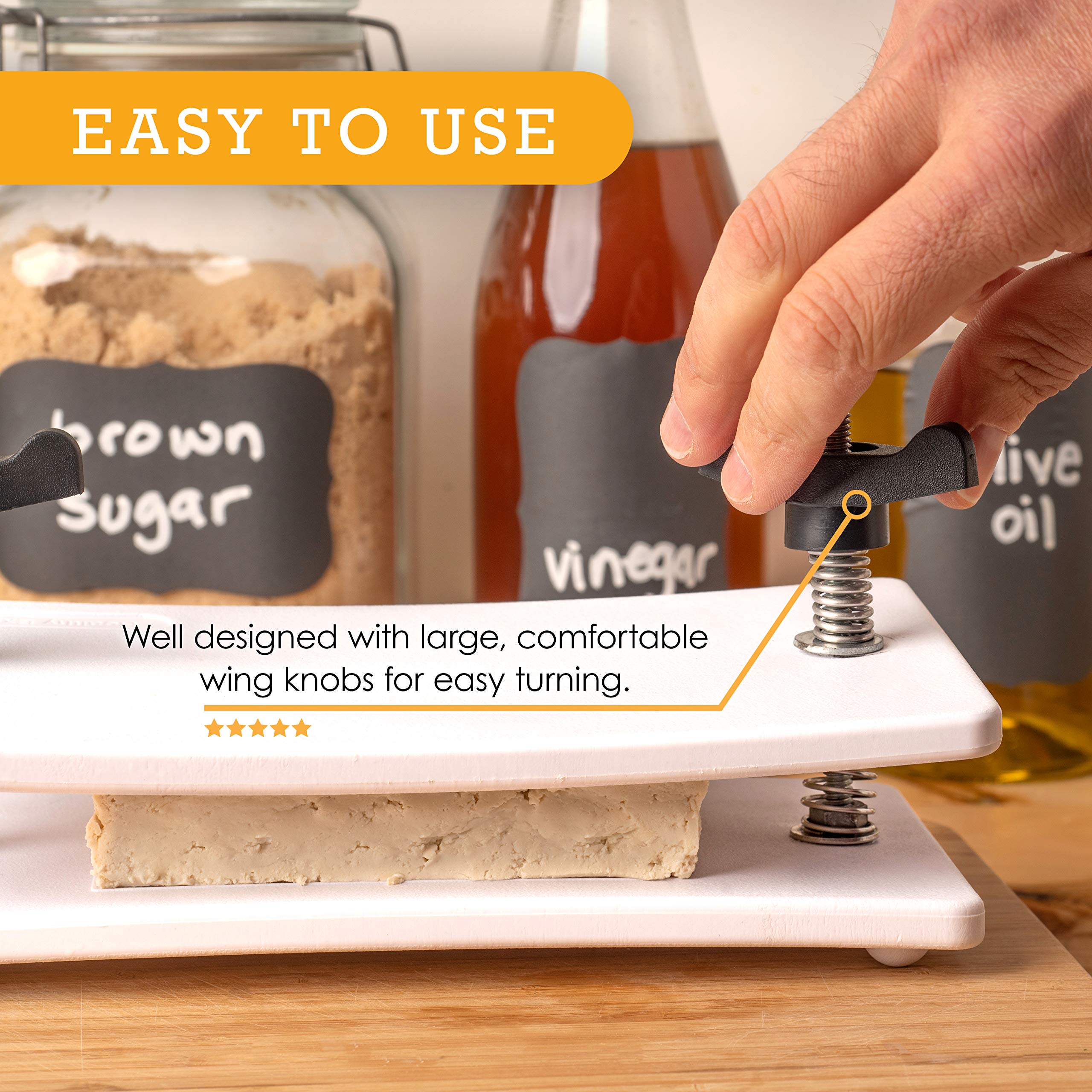Four Springs for Better Tofu - For great looking tofu with better texture, we've added 2 extra springs on top! Each time you tighten the knobs, those extra springs go to work to take that high initial pressure and spread it out over time to reduce cracking and eliminate more water, giving you that firm beautiful tofu you want!