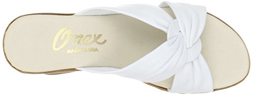 Description Amazon.com Understated, relaxed and oh so cool, Onex's Puffy sandal brings effortless style to a wardrobe near you. With a crisscrossed leather upper with a button for interest, this luxe look boasts a wood-tone 2.75-inch heel and 1-inch platform for a hint of height that doesn't interfere with your strut. A waffled sole promises good grip from brunch to boutiques and back again in Onex. From the Manufacturer In 1972, Onnik E. Kouyoumdjian an immigrant from a family of European shoemakers, founded Onex Shoes. His vision of the American dream coupled with his passion for fine lady's shoe design inspired him to start a business in designing, manufacturing, and distributing the Onex shoe line nationwide. The styles are carefully handcrafted in the United States featuring the finest components, materials, and ornaments from around the world.