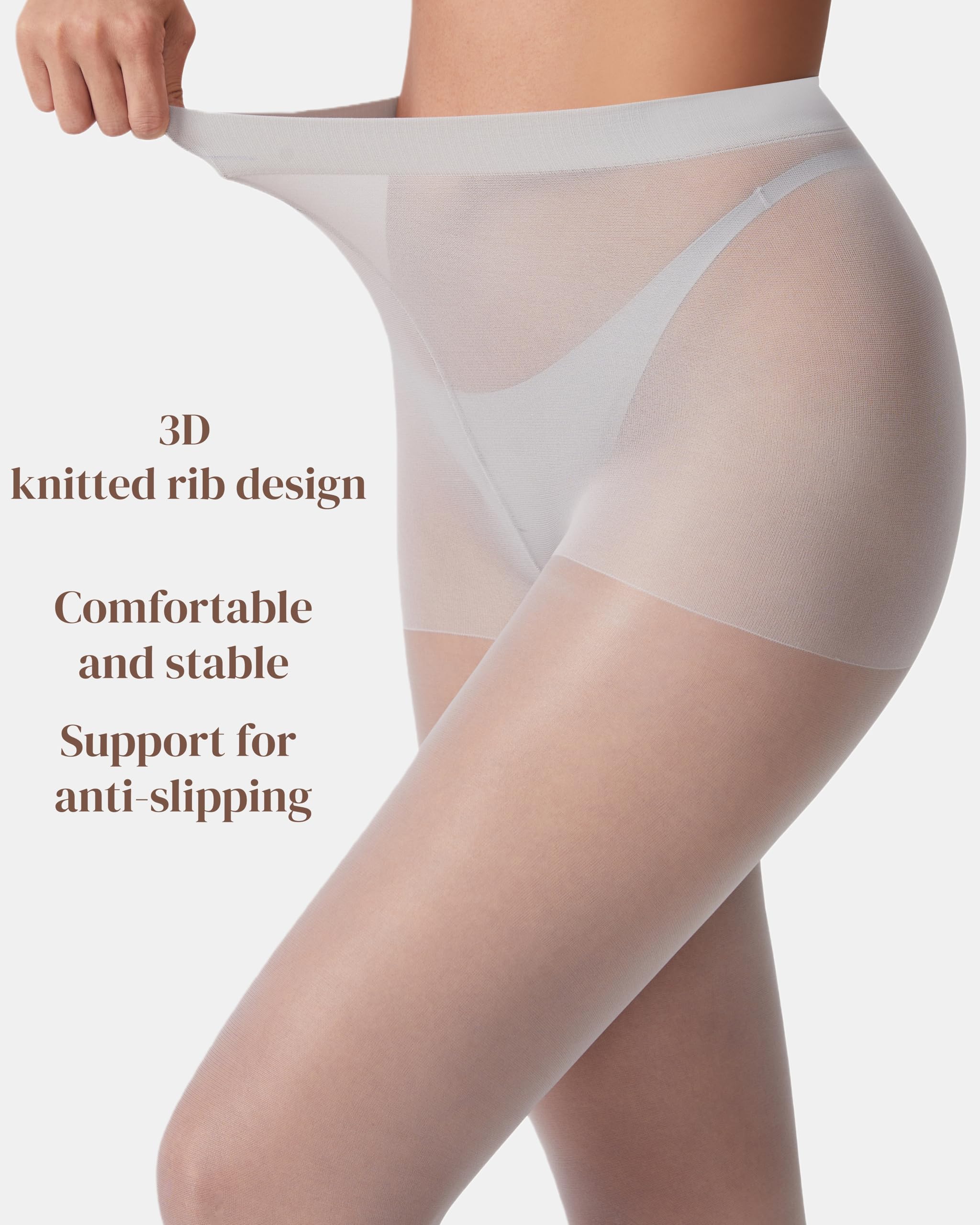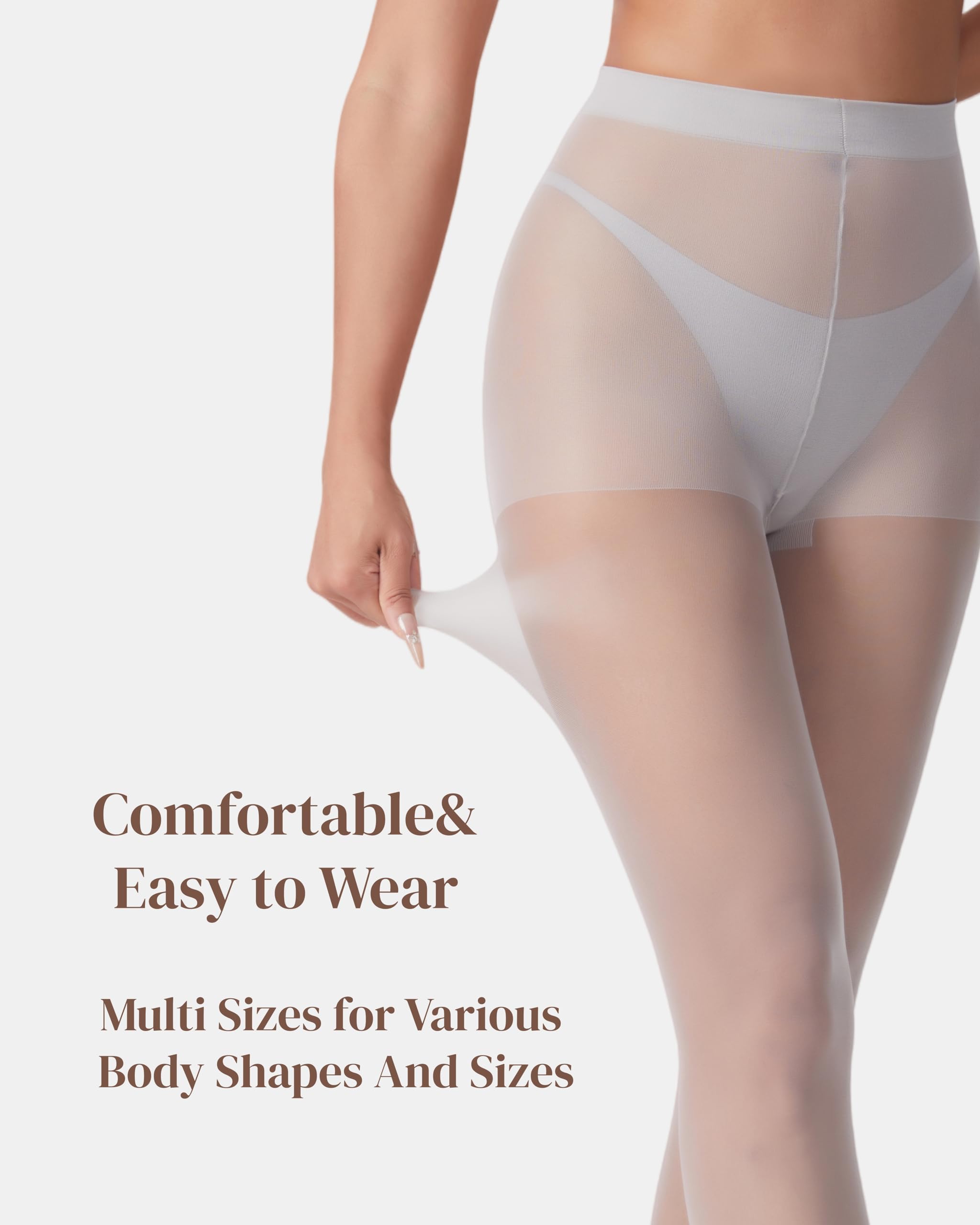 CONTROL TOP: 20D high-density knitting applies just the right amount of pressure, gently tucking in excess belly fat, lifting the lines of the buttocks, and creating a natural and beautiful S-shaped curve. Maintain an elegant posture in daily wear or when paired with skirts.