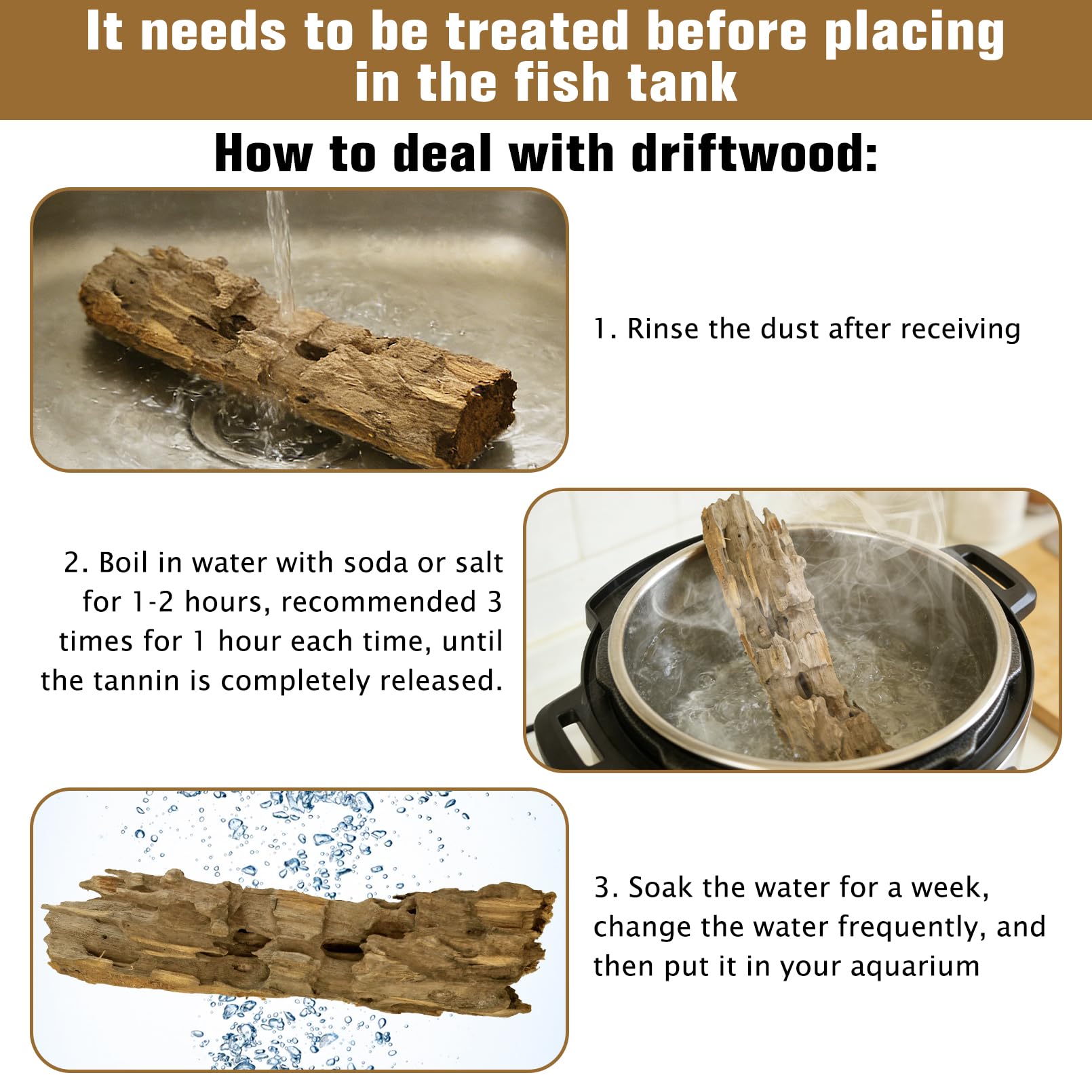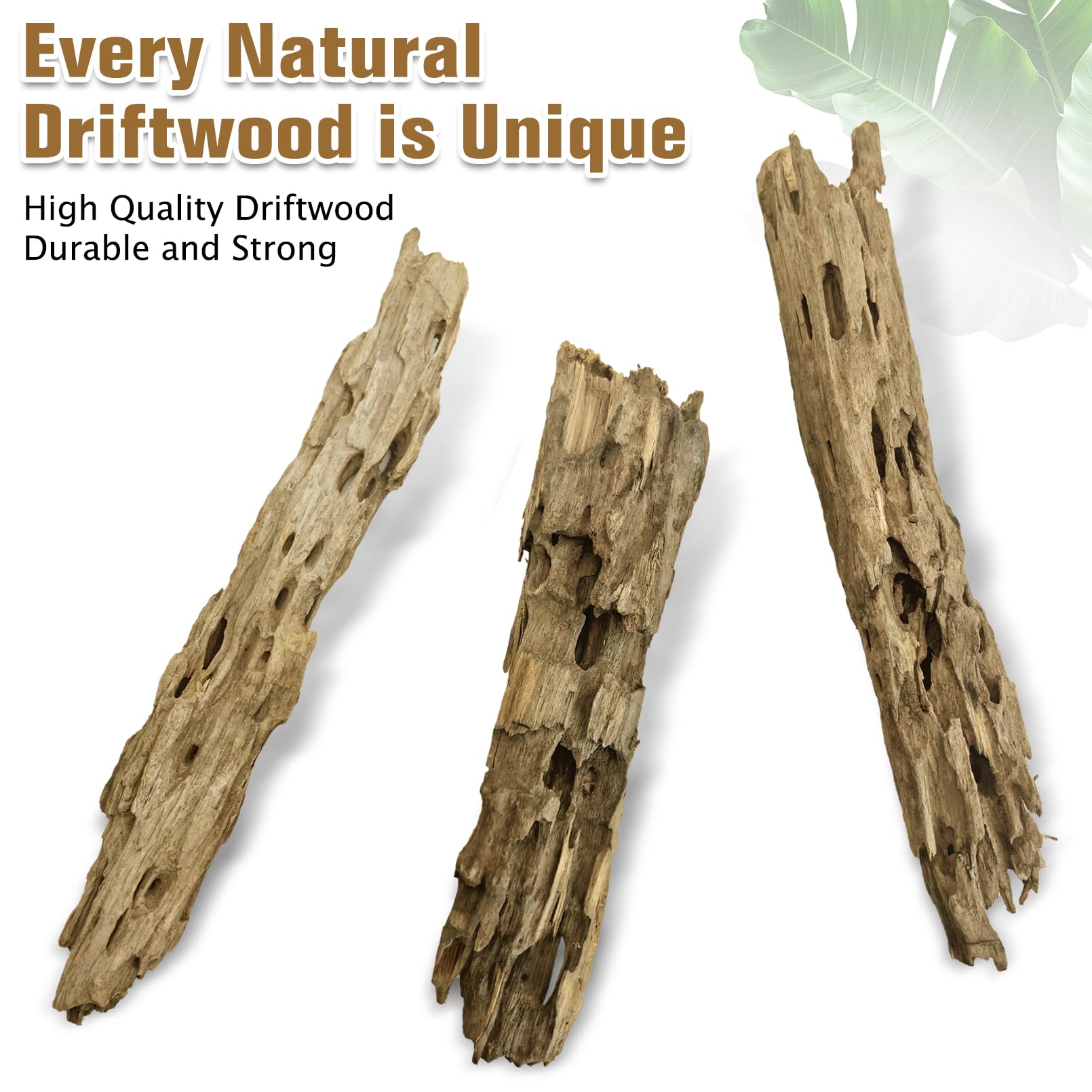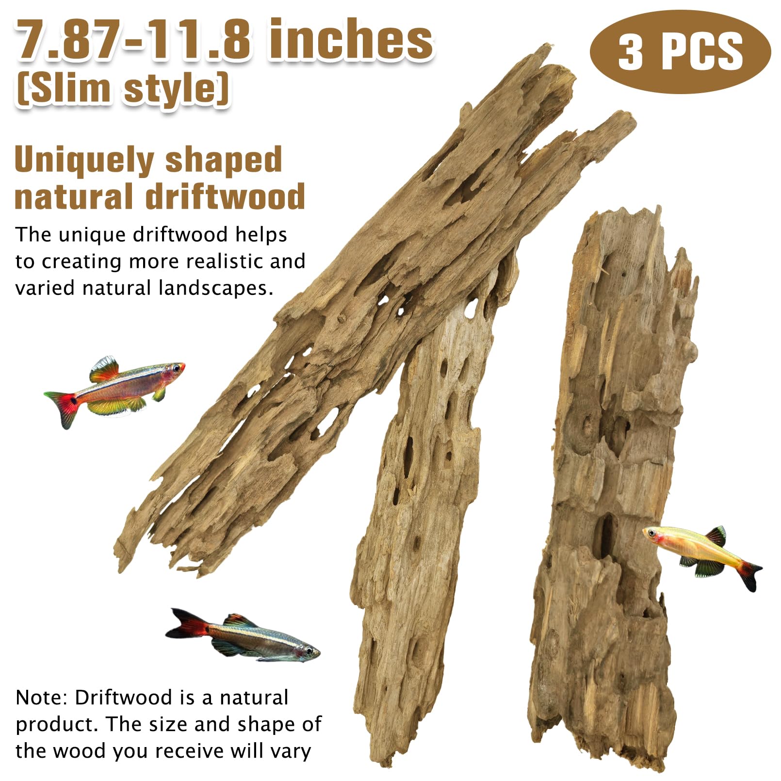 Size of driftwood: Package included 3pcs each driftwood piece is unique and hand-selected large sizes vary from 7.87 to 11.81 inches in length. Each pieces are carefully selected, and the pictures shown are only some of the