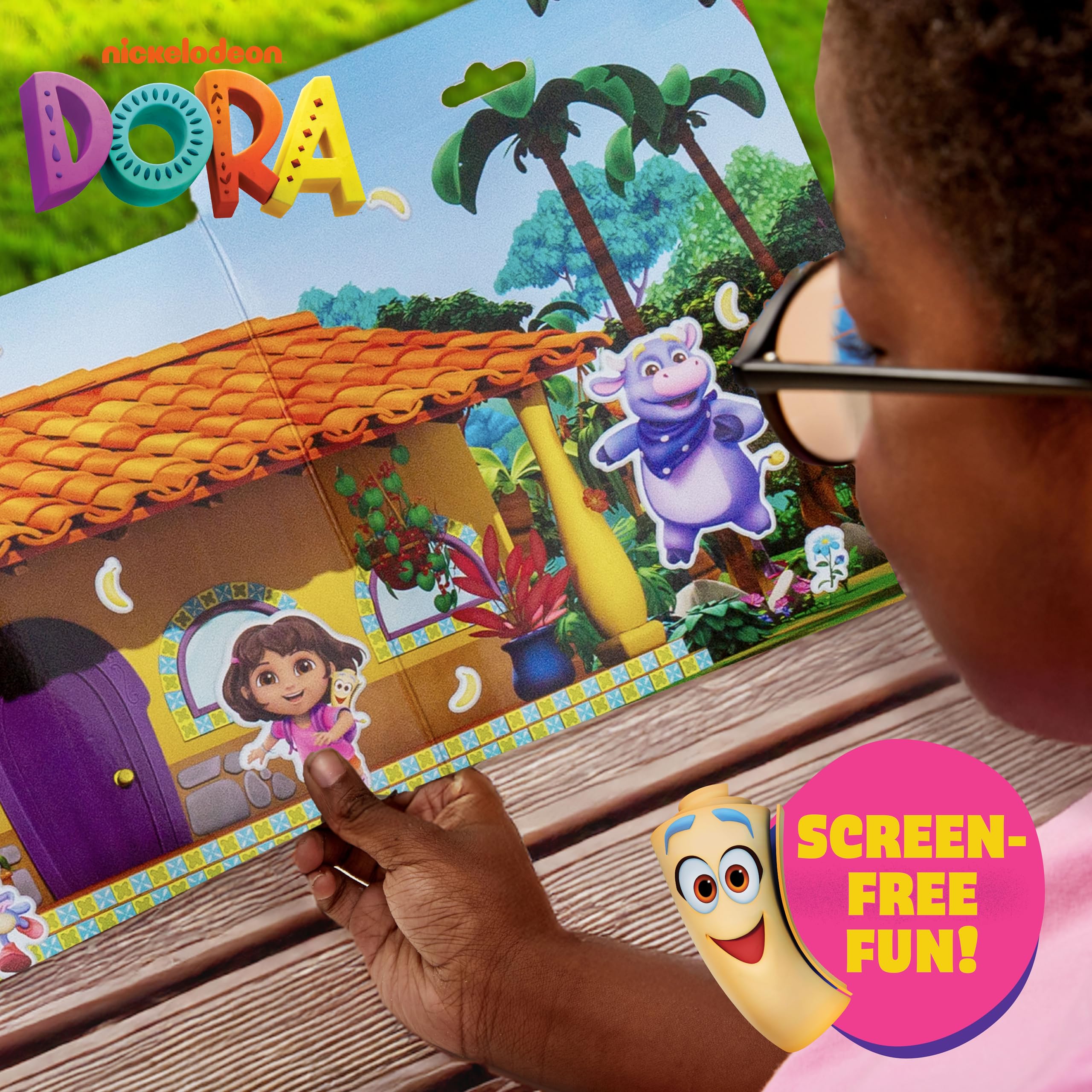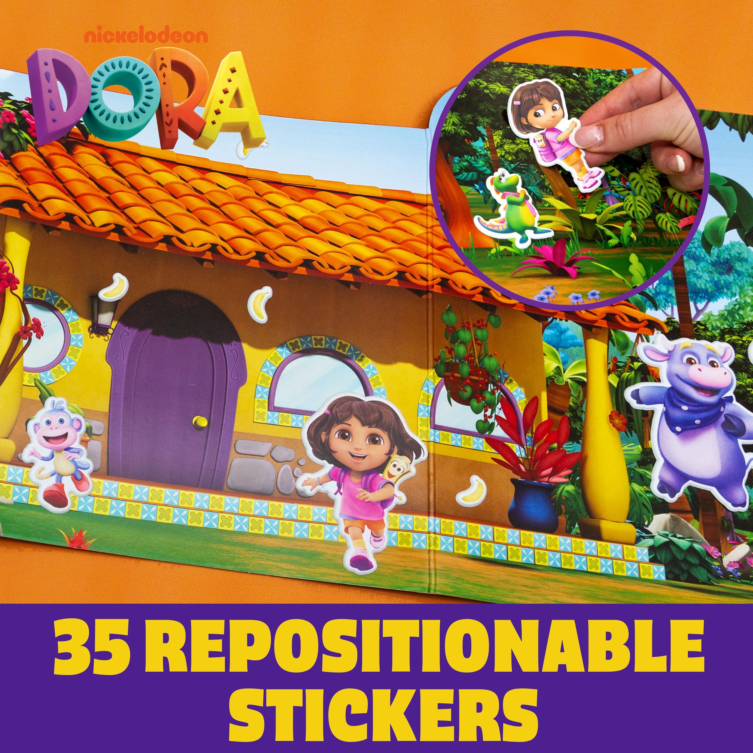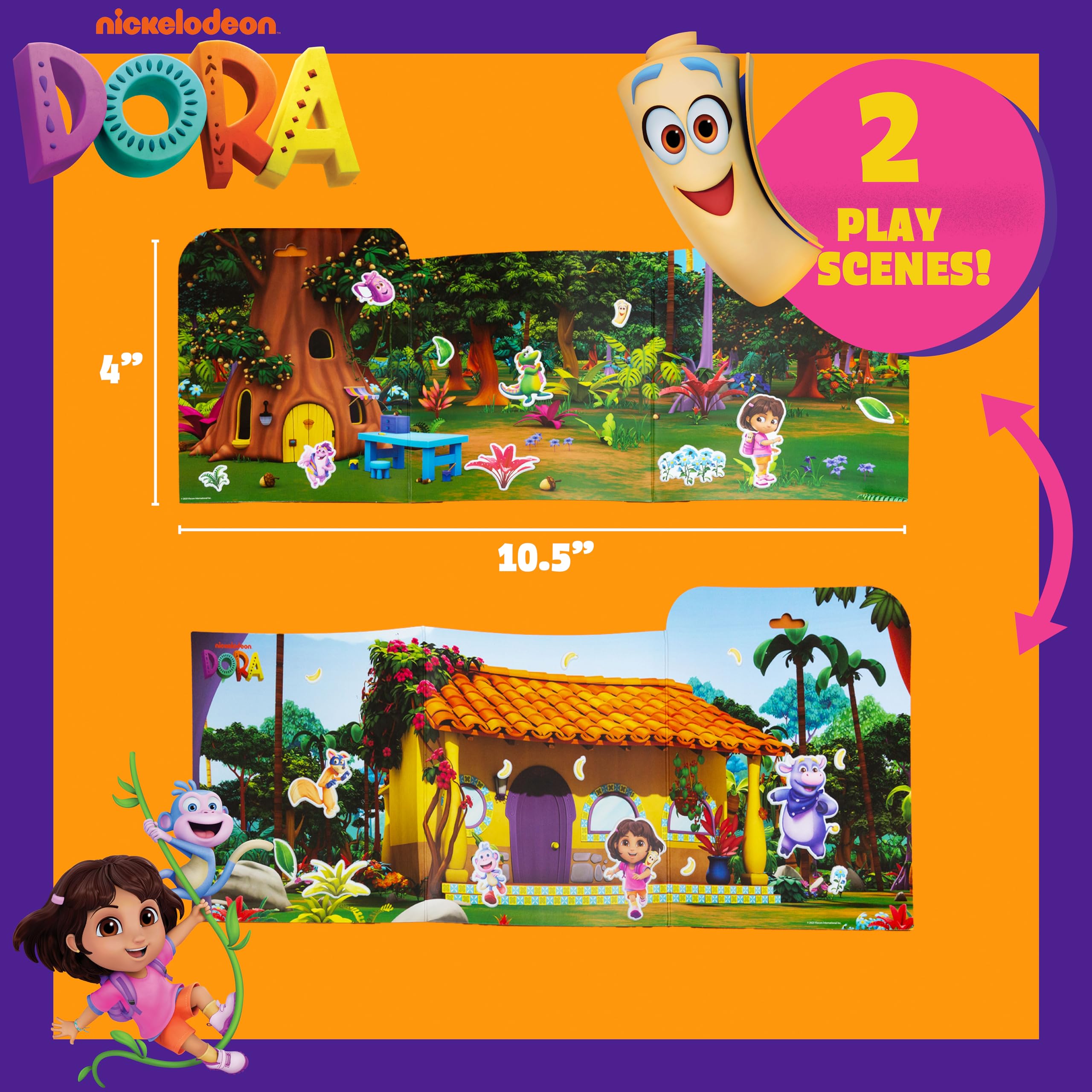 OVER 35 REUSABLE DORA STICKERS: Mix, match, and reuse 35+ squishy, cute stickers on 2 different play scenes!