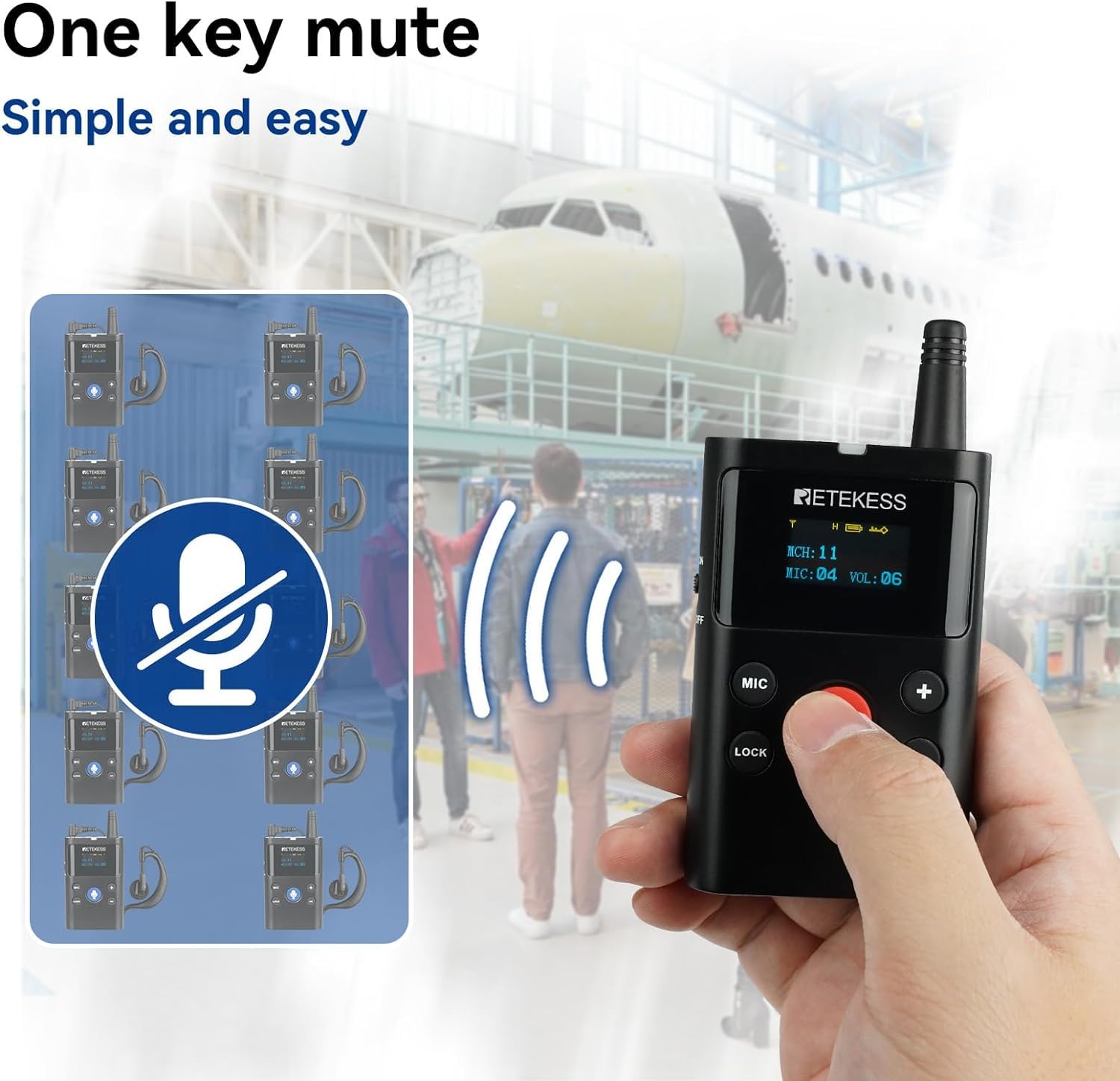 Adjustable sensitivity; the Retekess TT126 two-way tour guide system allows users to adjust the microphone sensitivity according to the background noise level of the school or factory; ensuring that the system clearly and effectively transmits them to all students