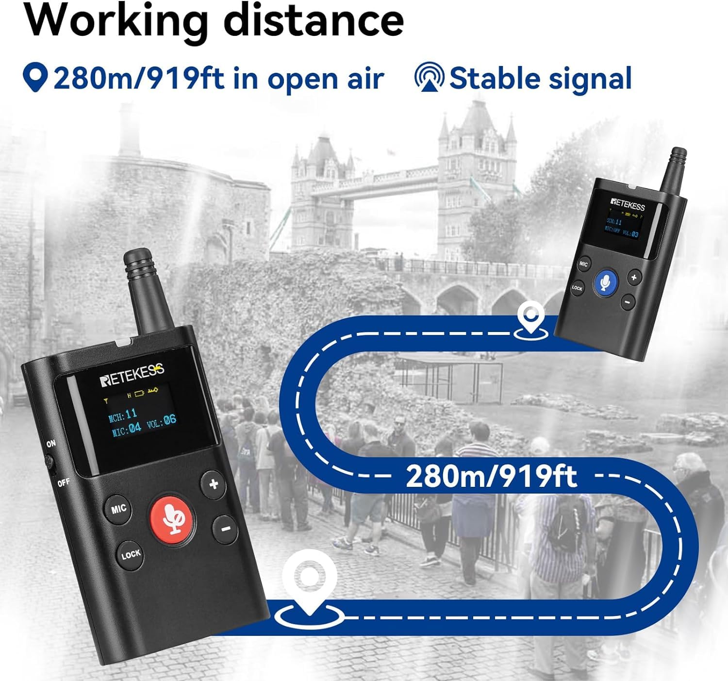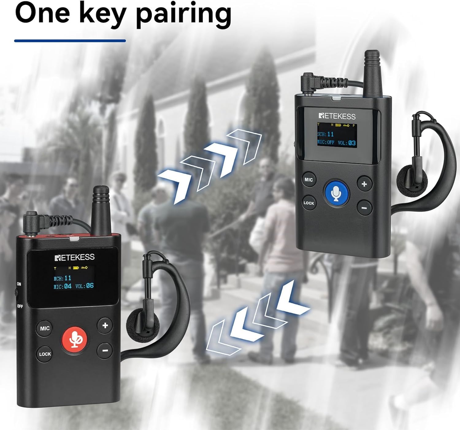 Automatic pairing; Retekess TT126 intercom tour guide system with two way audio support automatic pairing of transmitters and receivers; this feature simplifies the user's setup process and saves time by eliminating the need for students to pair manually