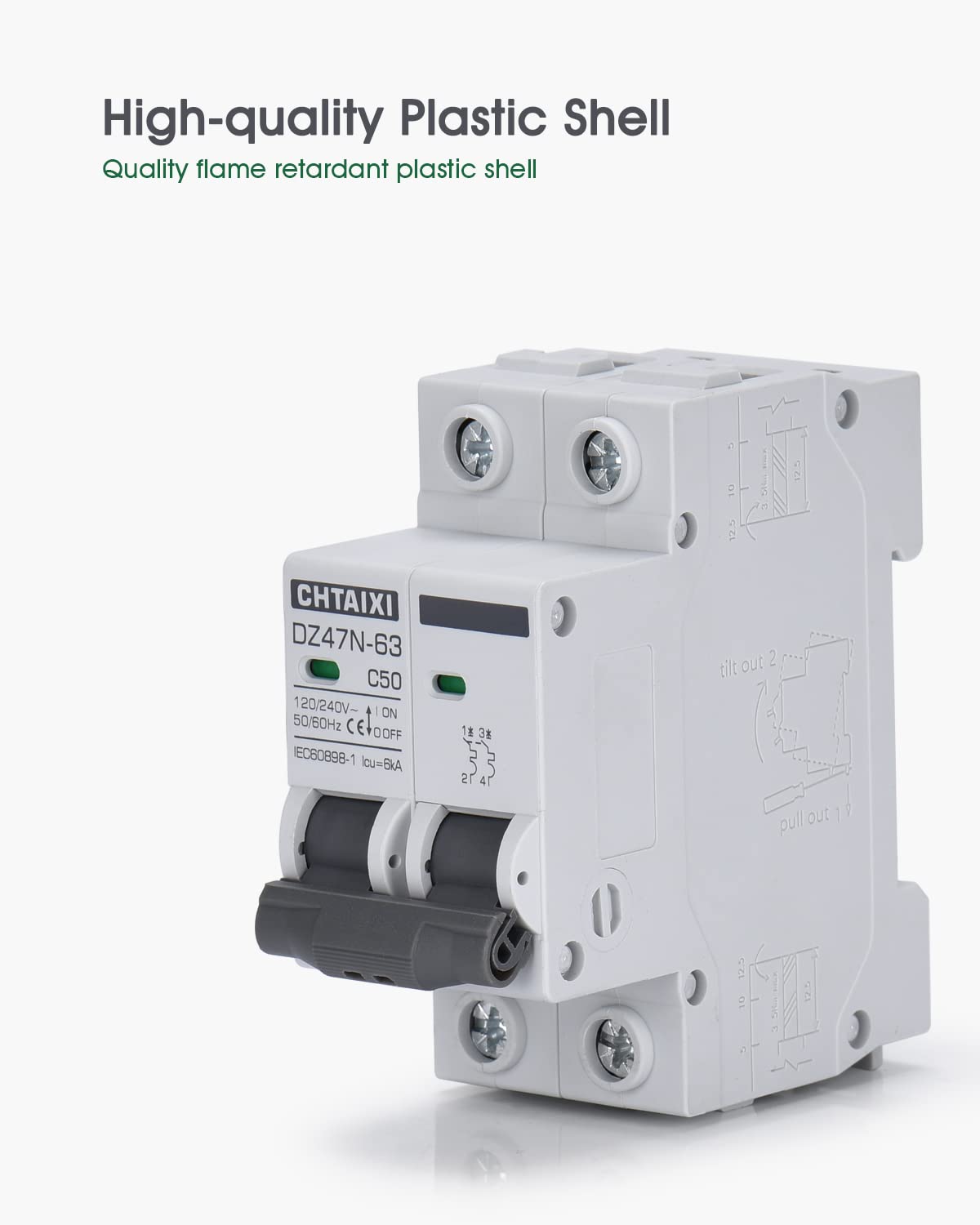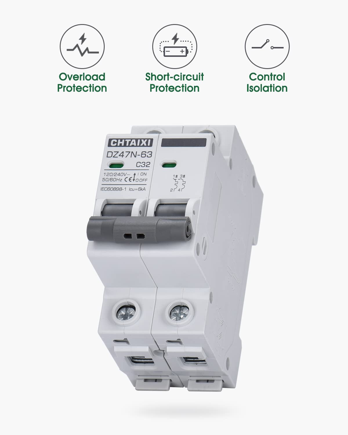 Chtaixi AC Miniature Circuit Breaker, 32 Amp 120V/240V 2 Pole DIN Rail Mount Circuit Breaker, Thermal Magnetic Trip, Solar AC Disconnect Switch MCB C32