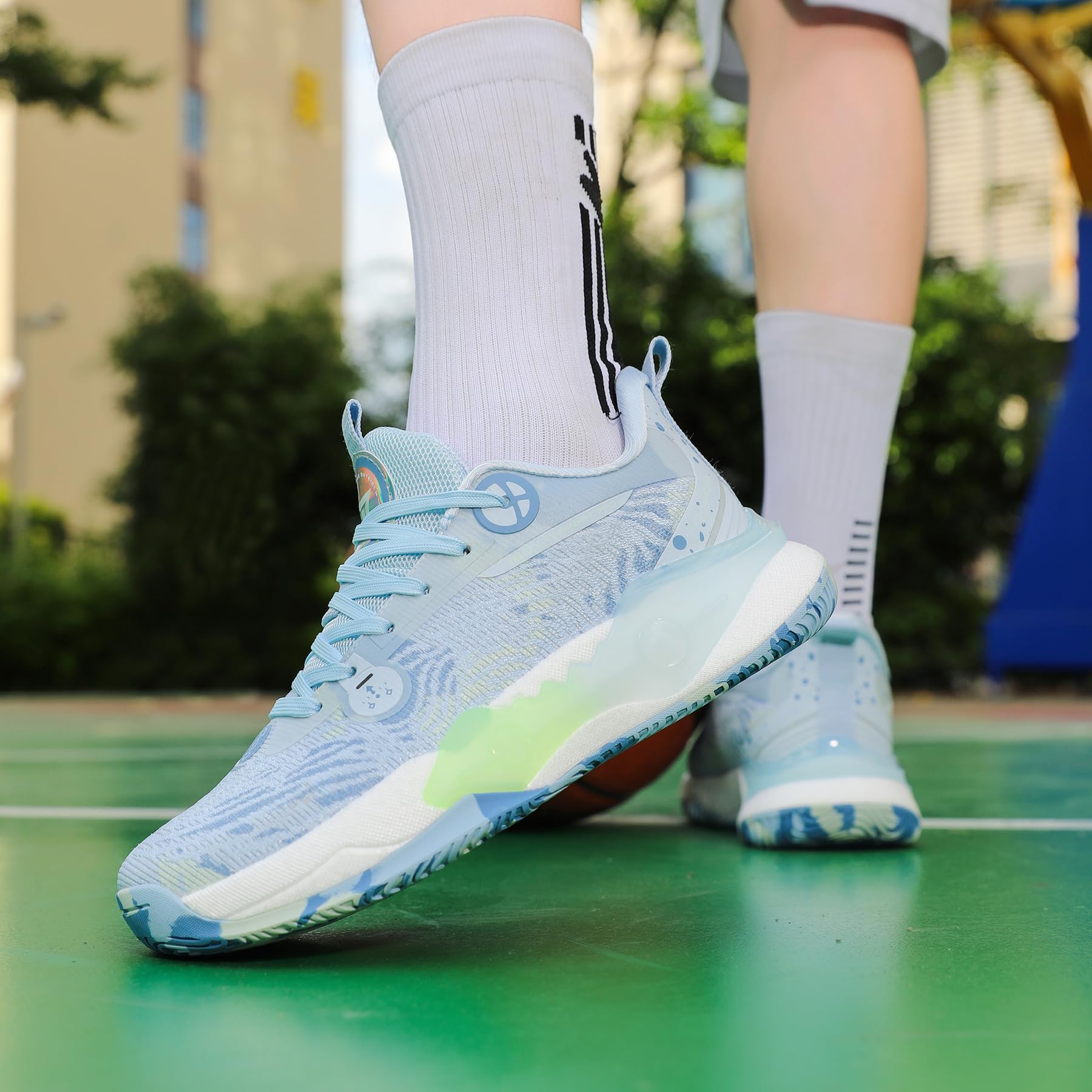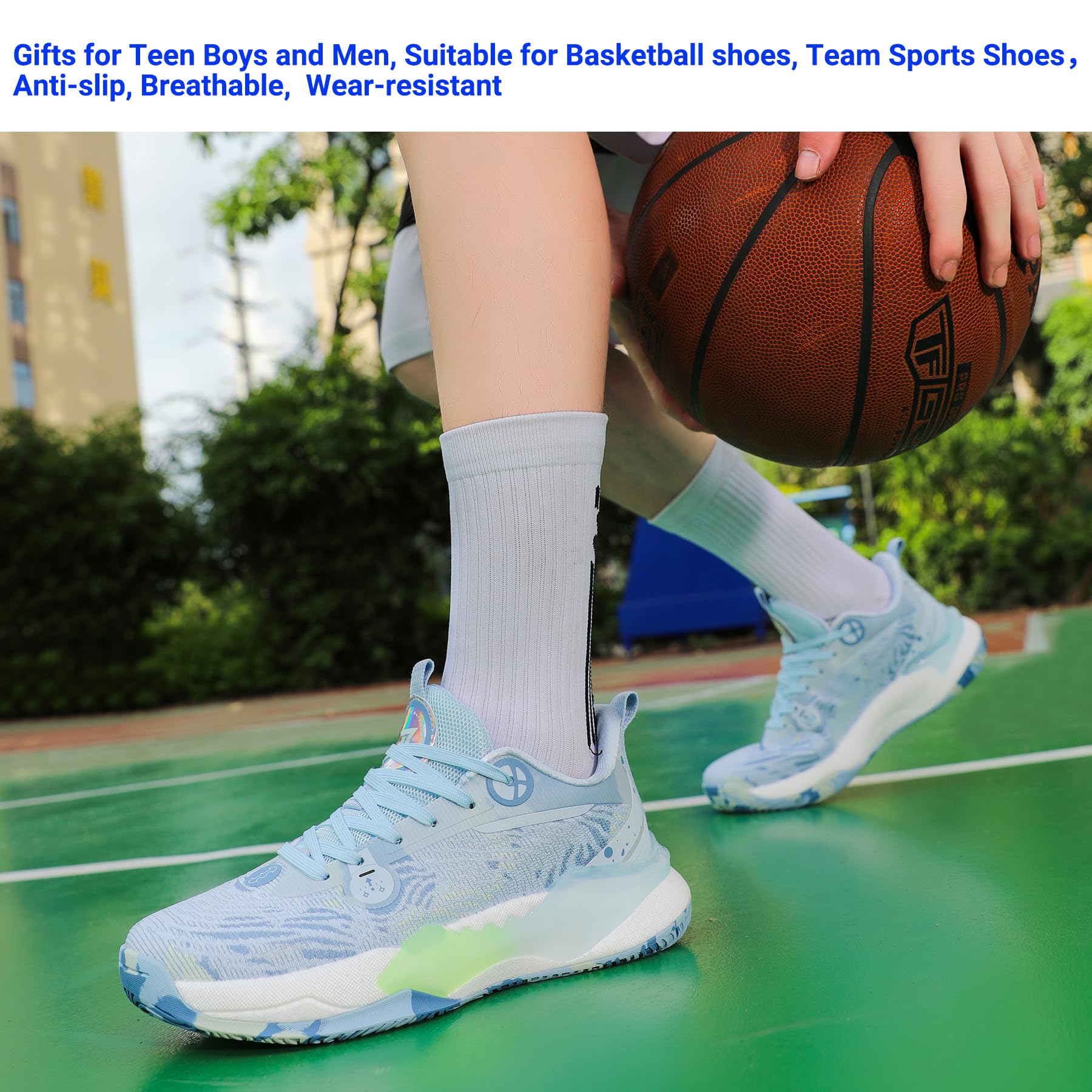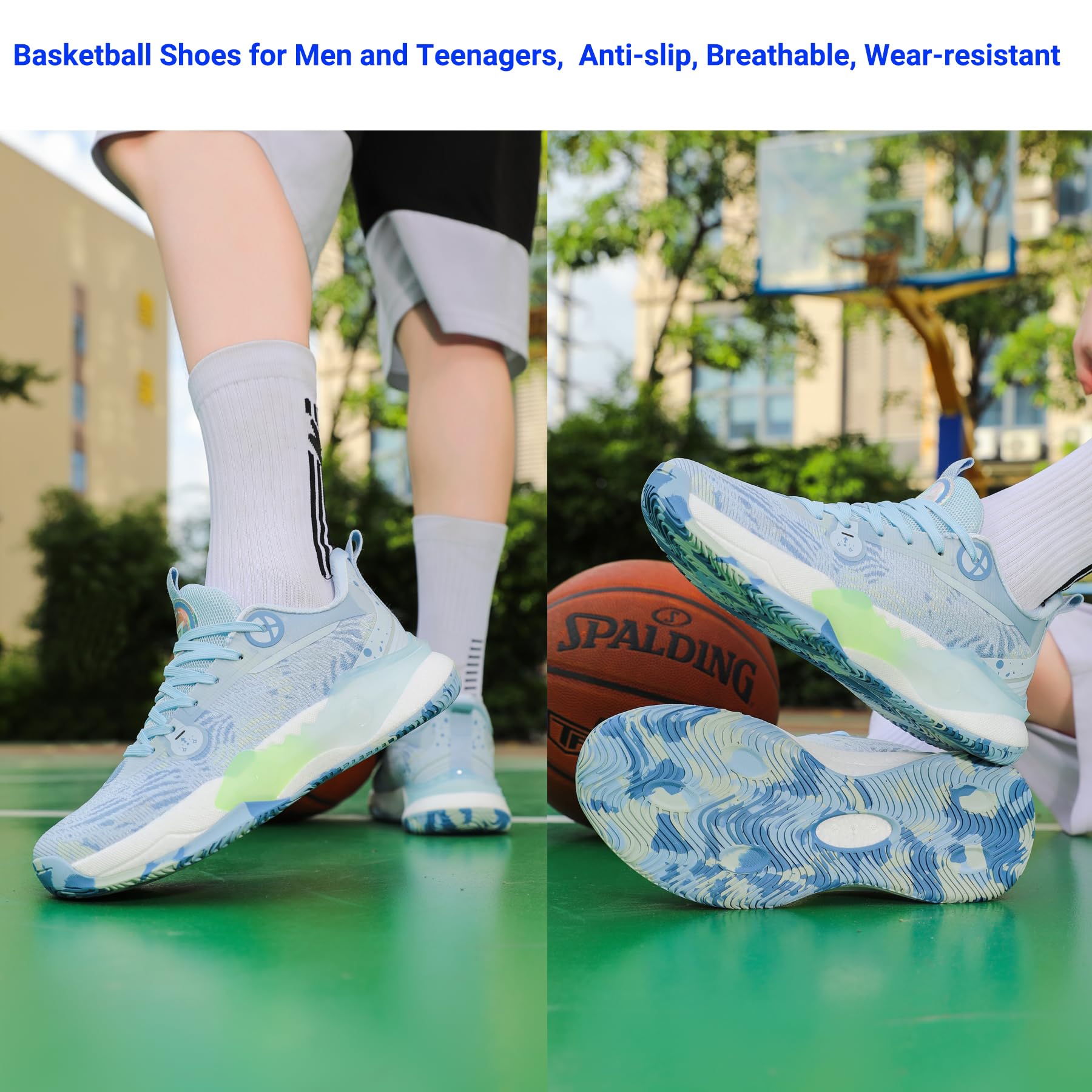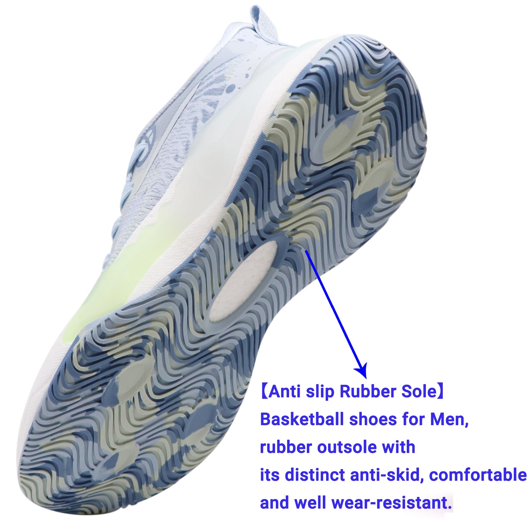 【Anti slip Rubber Sole】 Mens basketball shoes, rubber outsole with its distinct anti-skid, comfortable and well wear-resistant.