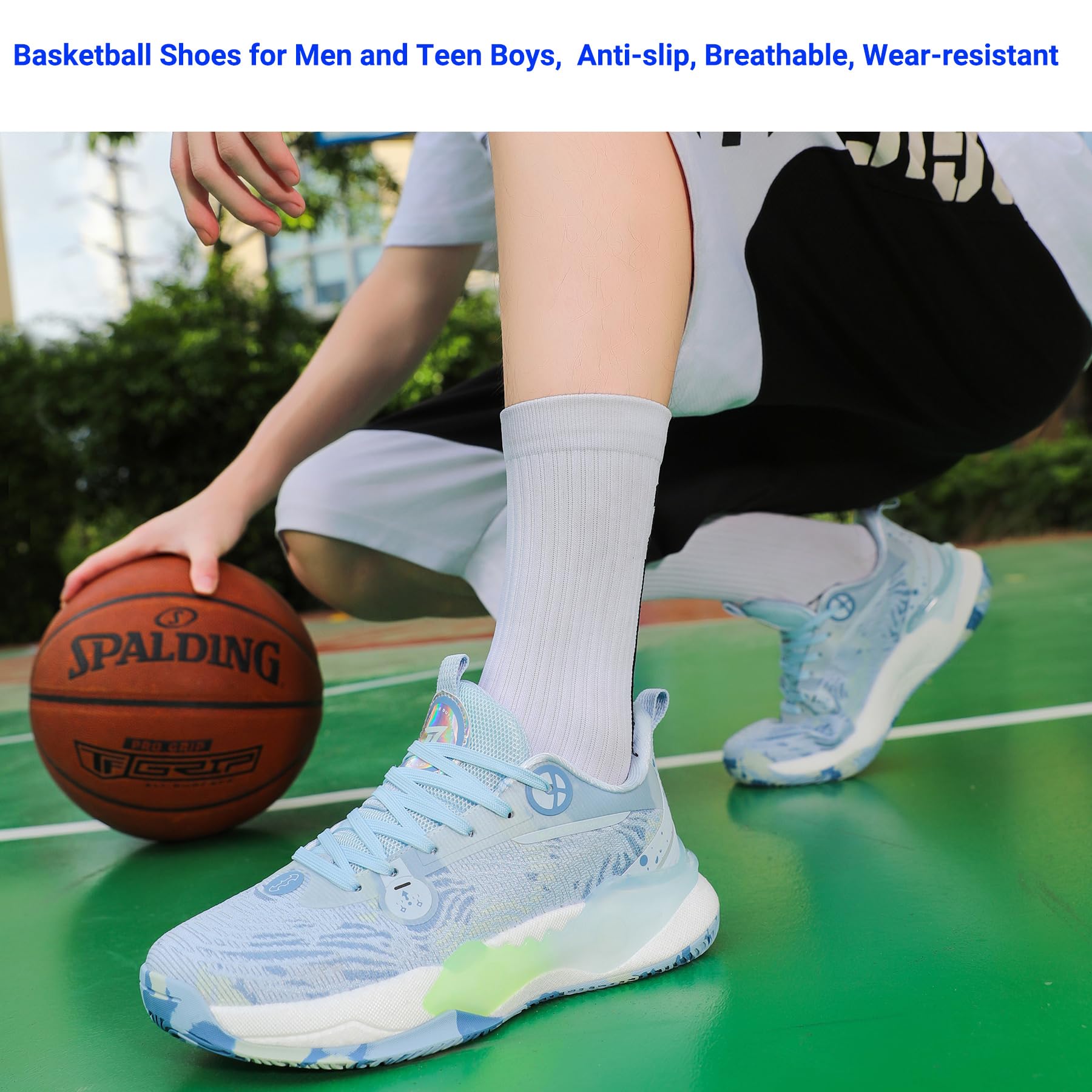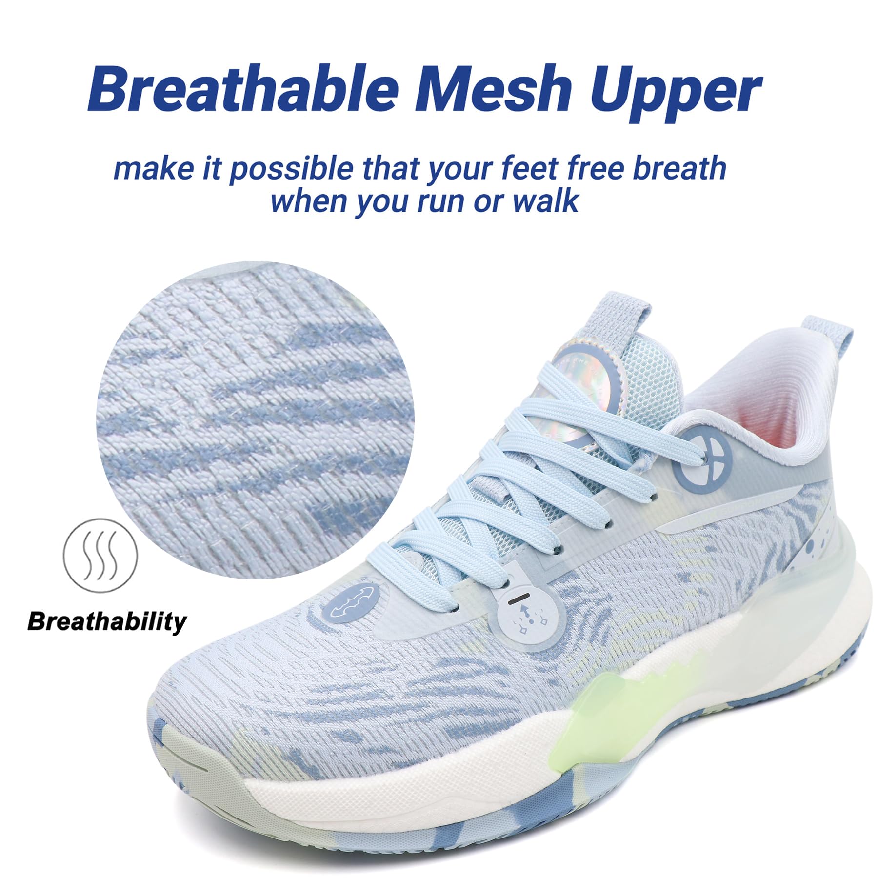 【Breathable Mesh Upper】 Basketball shoes for men, Lightweight textile upper offers flexibility, make it possible that your feet free breath when you run or walk.