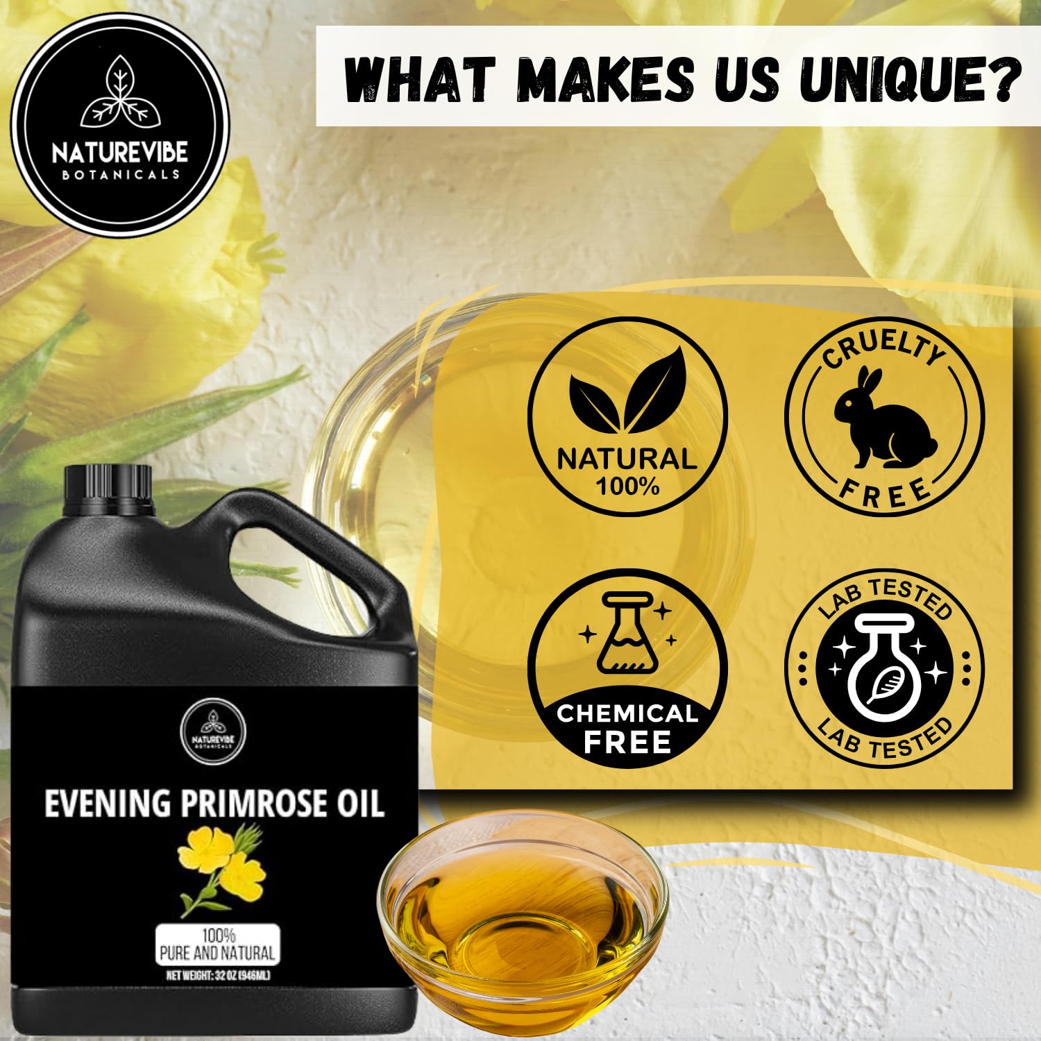 ✅Naturevibe Botanicals Evening Primrose Oil 32 Ounces 100% Pure & Natural Cold Pressed and Unrefined | Loaded with Vitamins & Minerals | Great for Skin Care & Hair Care | (946 ml)