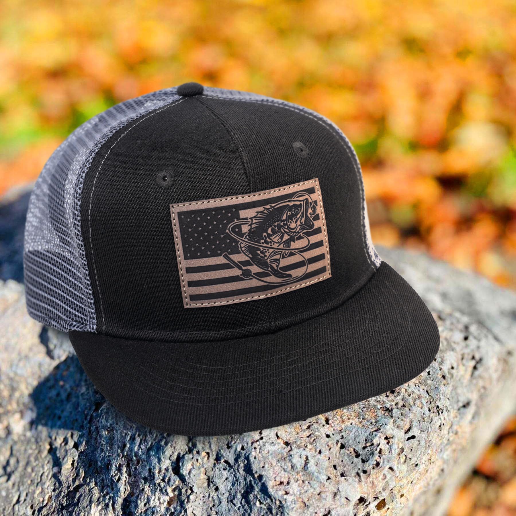 Unique Leather Fish Flag Printed with Pride: This fishing snapback hat features a 3D-printed bass fish and an American flag pattern. The unique designs are stylish and sure to impress. And the American fish flag hat may bring you good luck catching bigger fish. Perfect for anglers and outdoorsmen who enjoy camping, fishing, beach, lake trips, and holiday vacations.