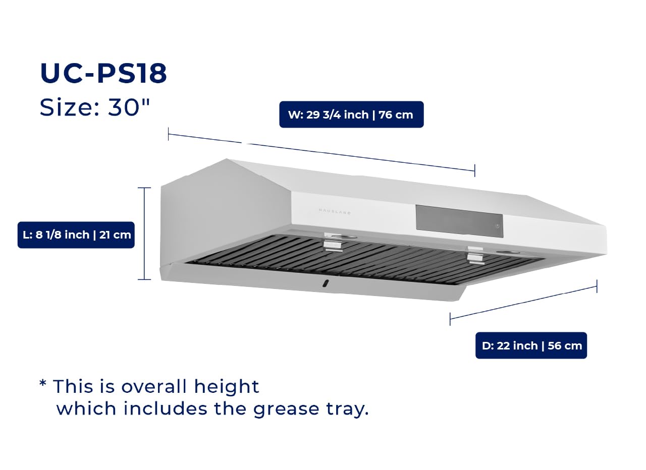 4 COLORS 2 SIZES: The UC-PS18 under cabinet range hood comes in stainless steel, matte white, matte black, and black stainless steel. It is available in two sizes: 30" and 36”